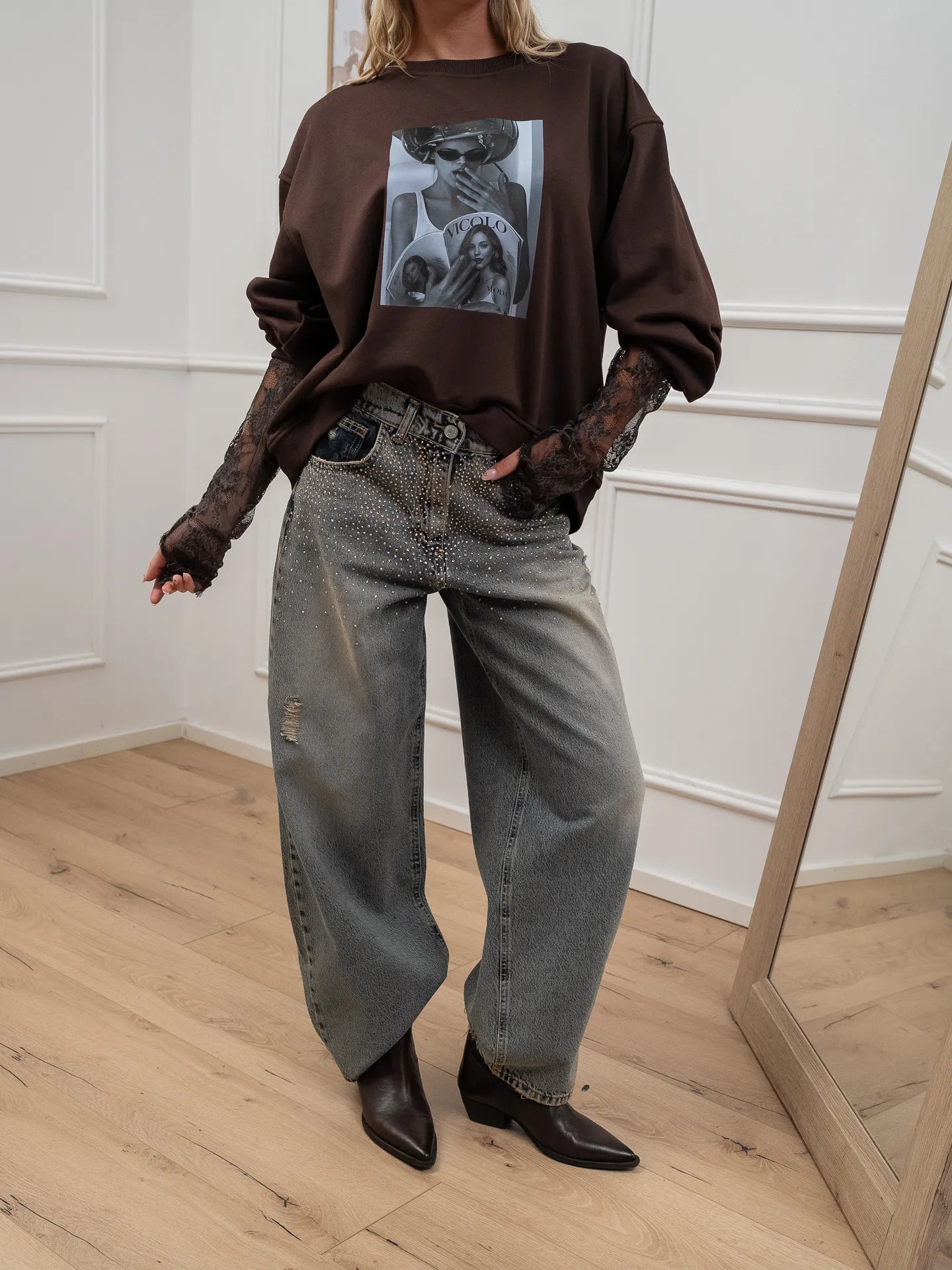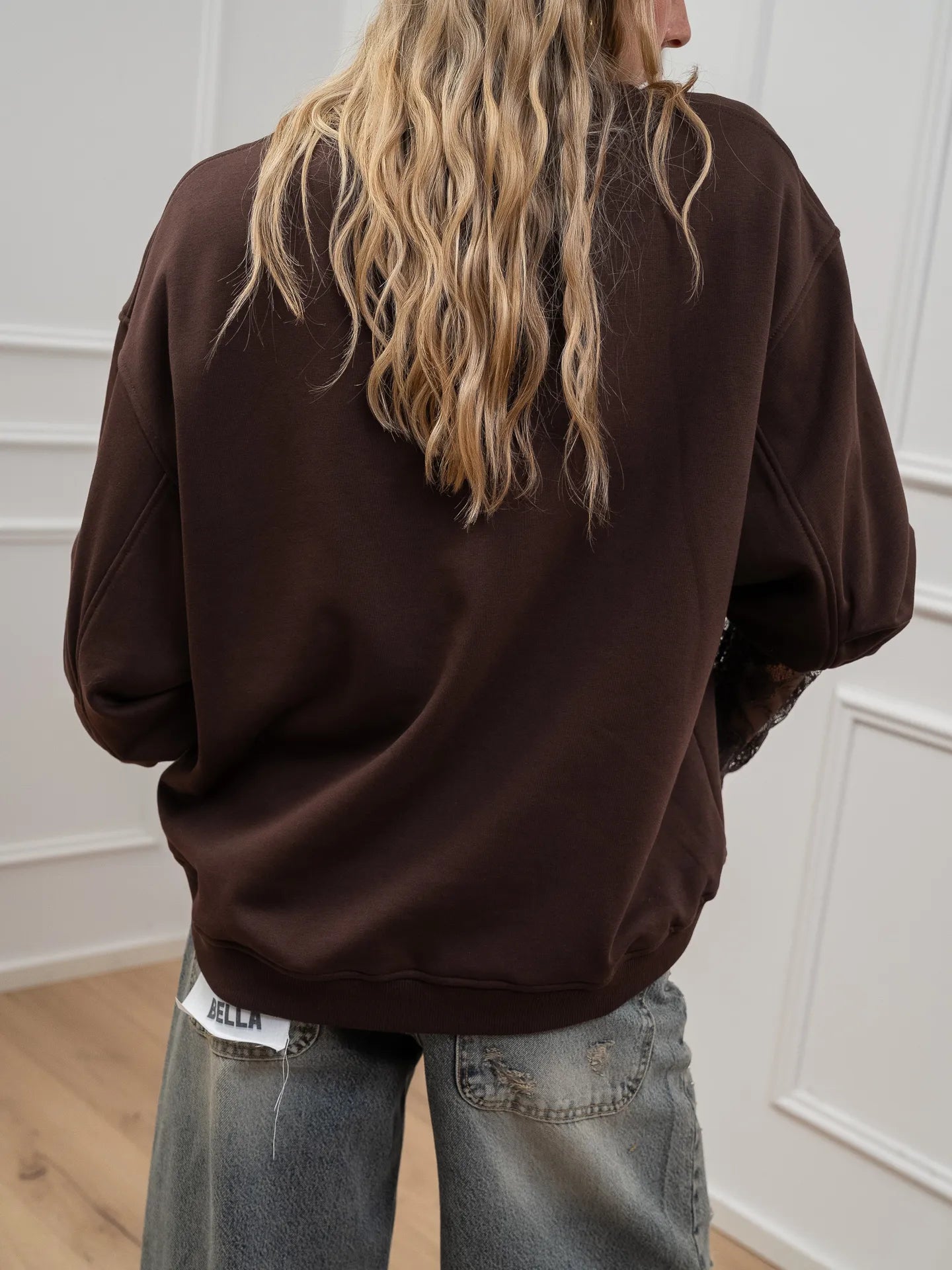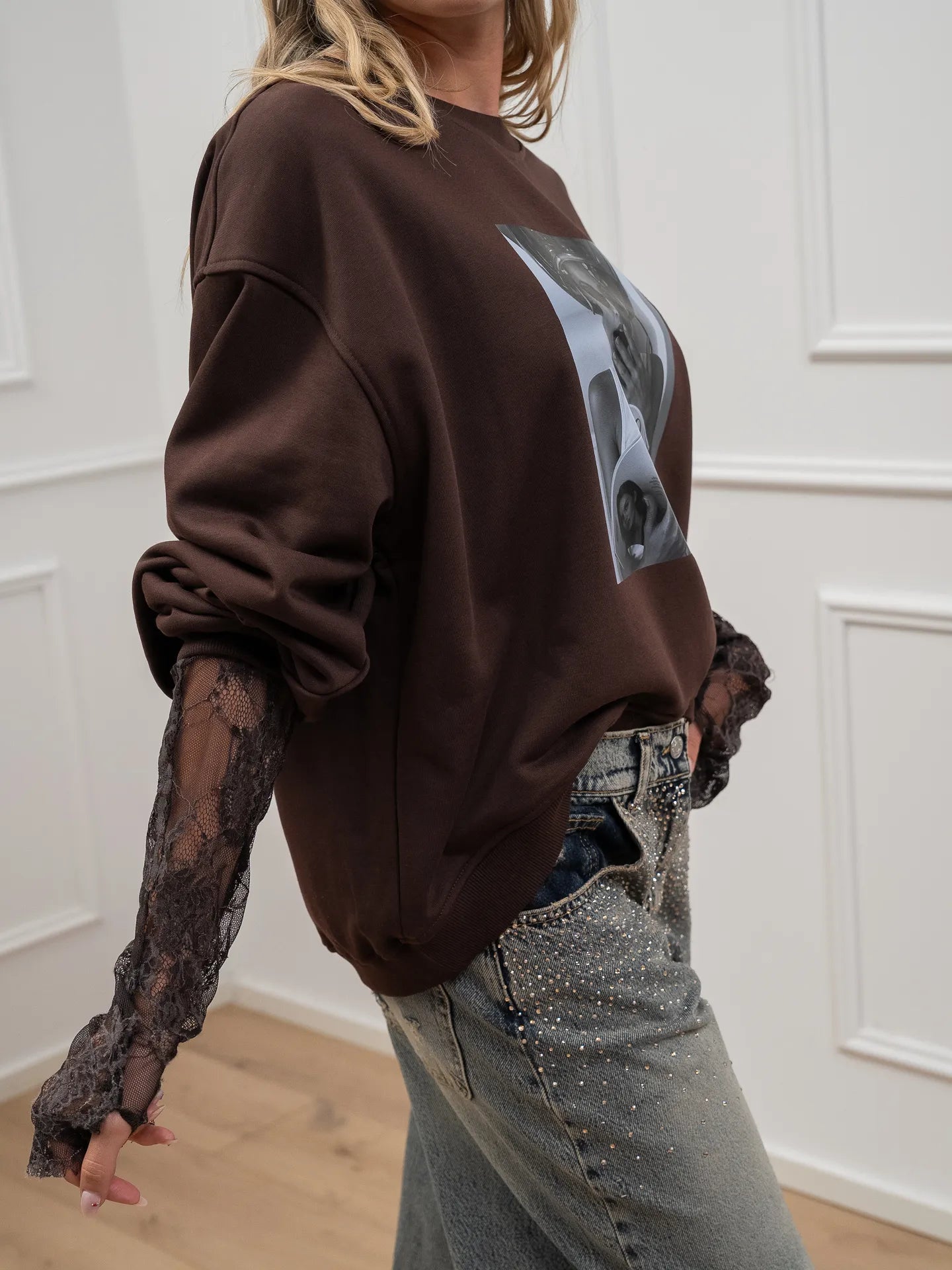 Felpa color moro in cotone Vicolo. Modello a manica lunga girocollo con dettaglio di stampa Vanity frontale.