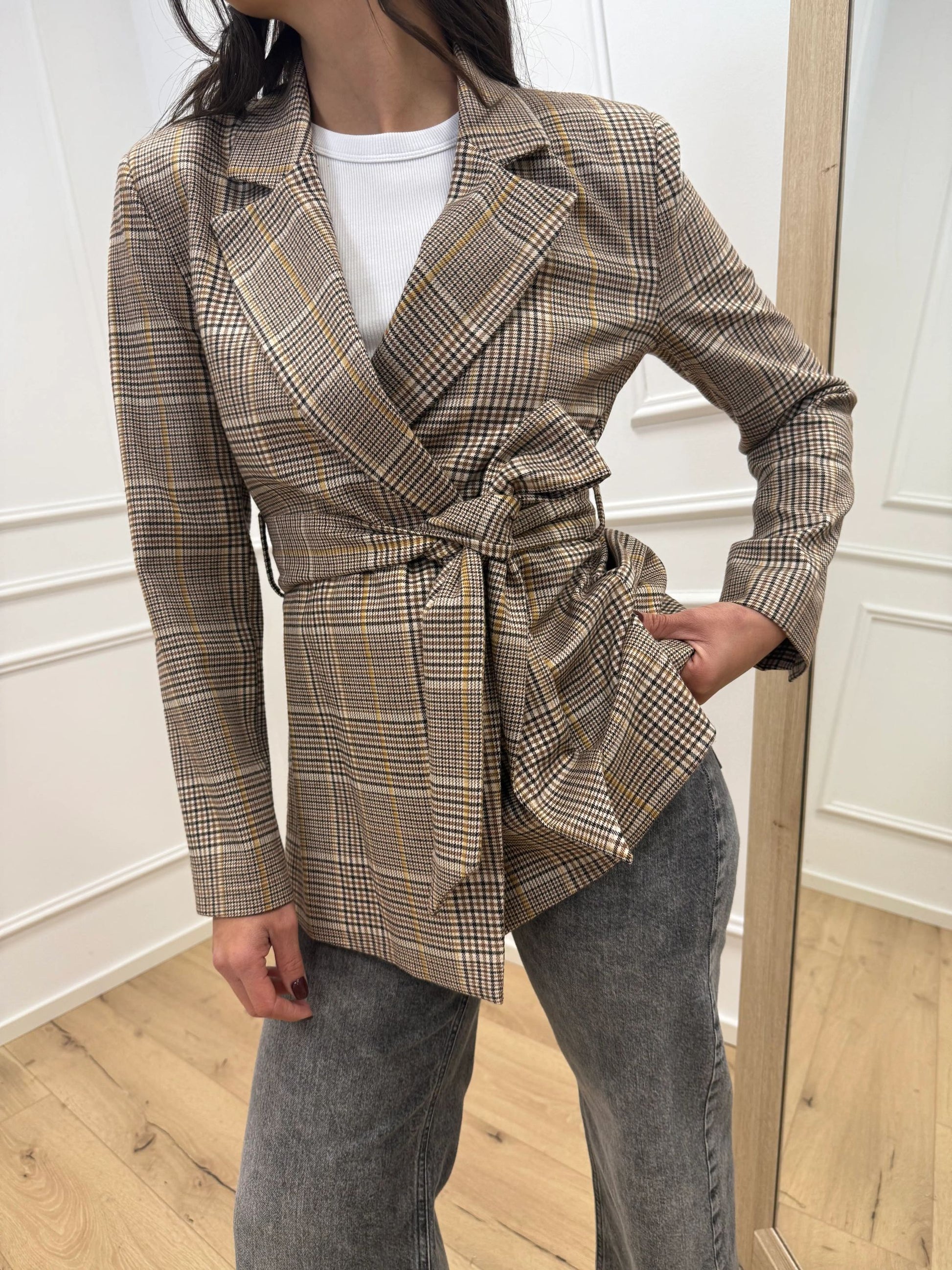 Giacca camel, panna, miele con fusciacca - Dixie