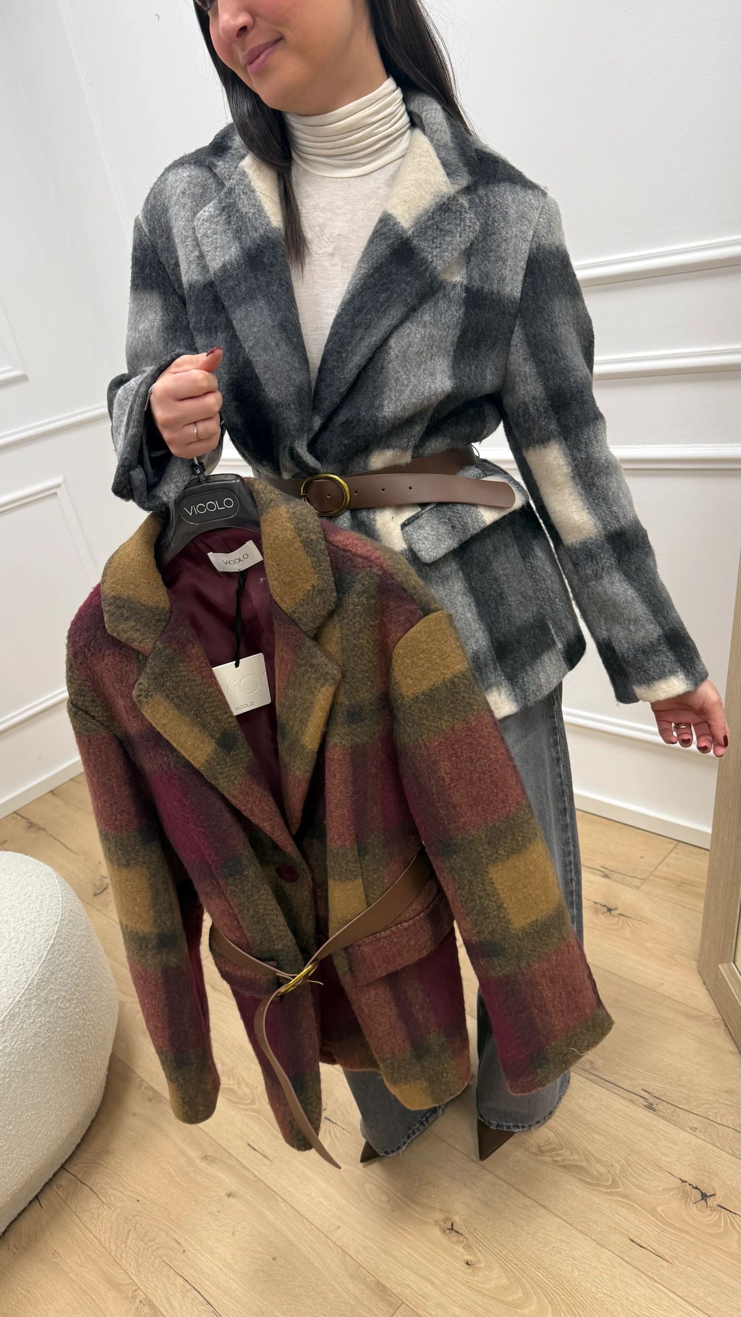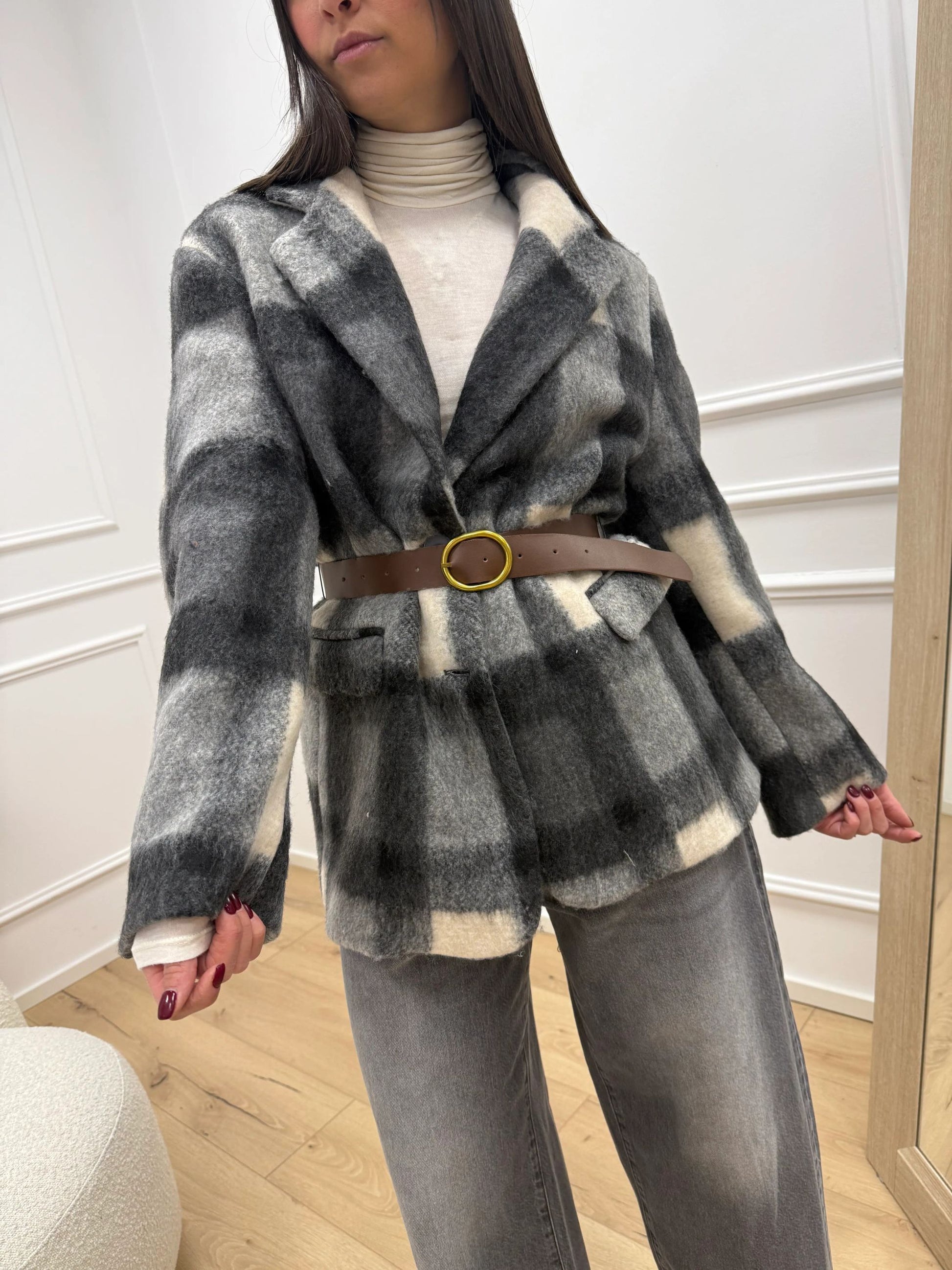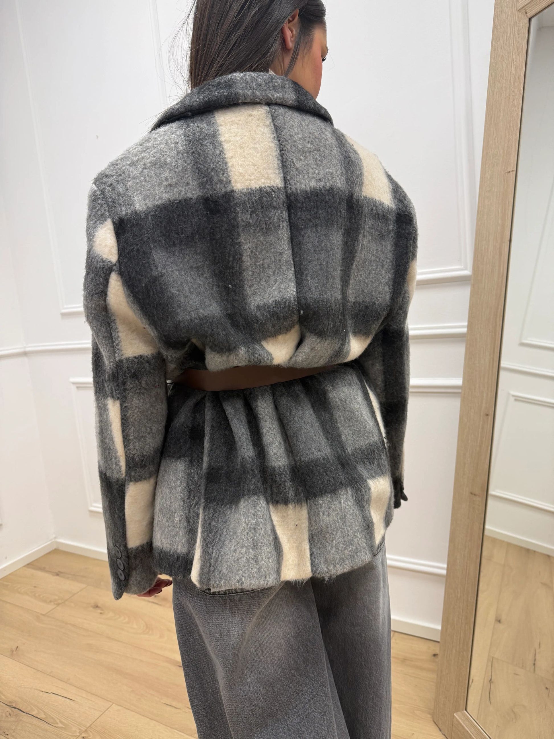 Giacca cappotto check burro e grigia - Vicolo