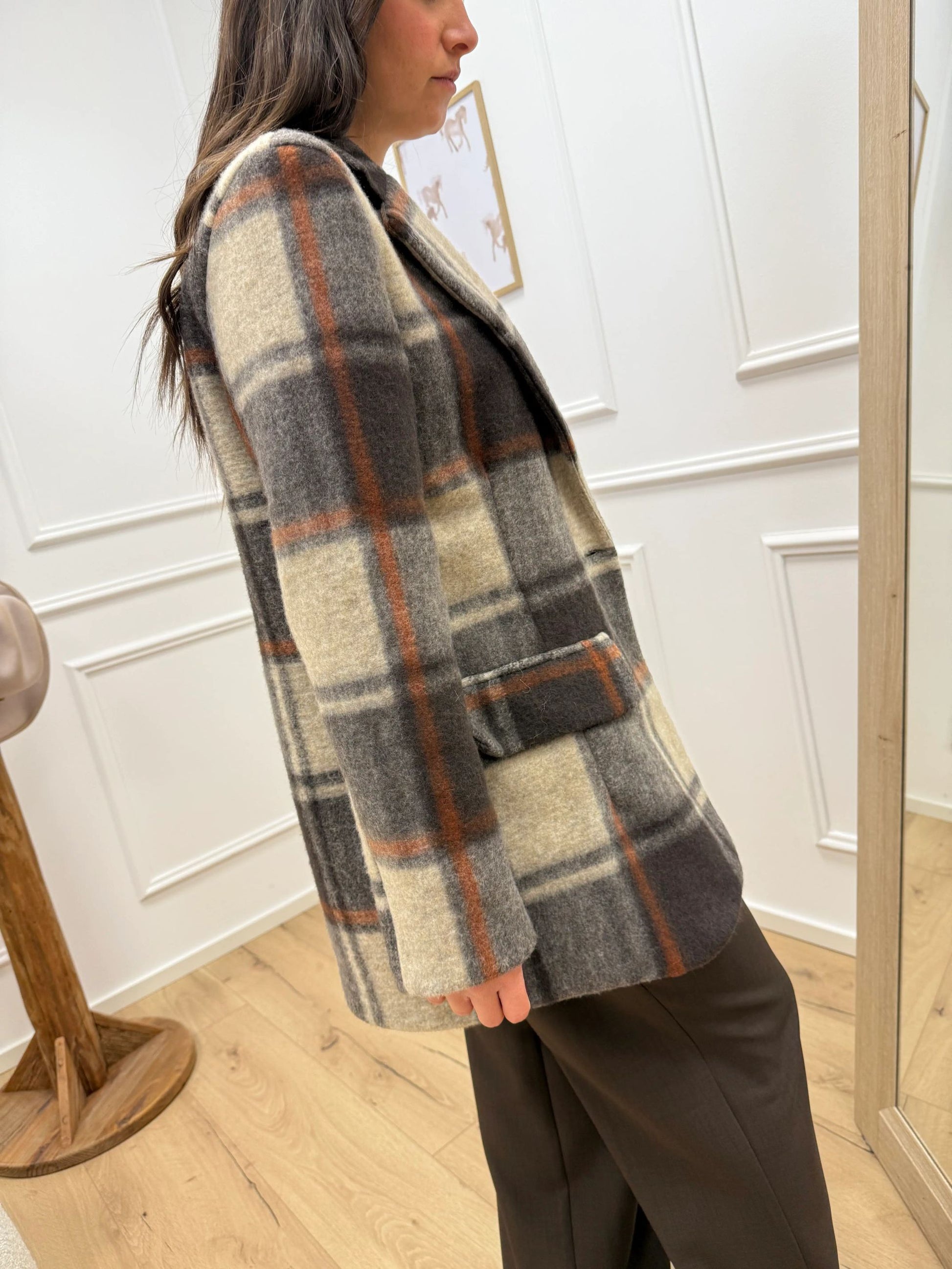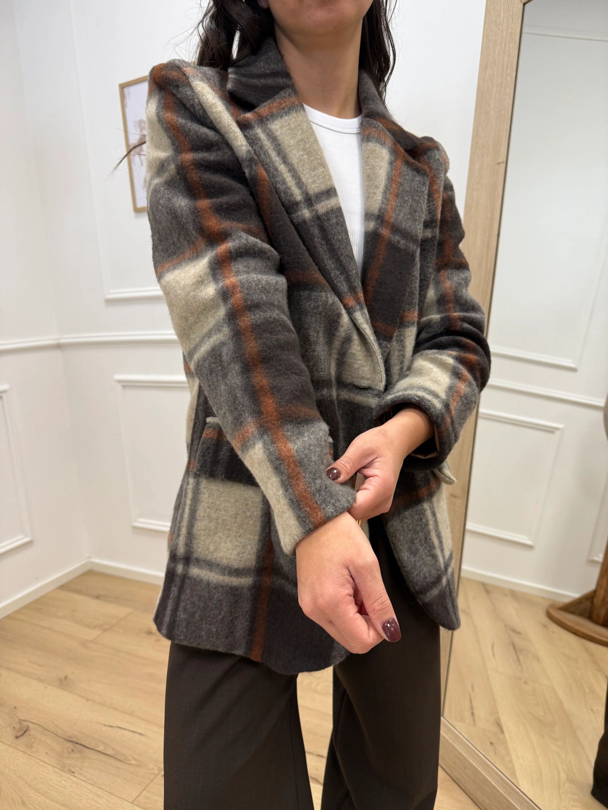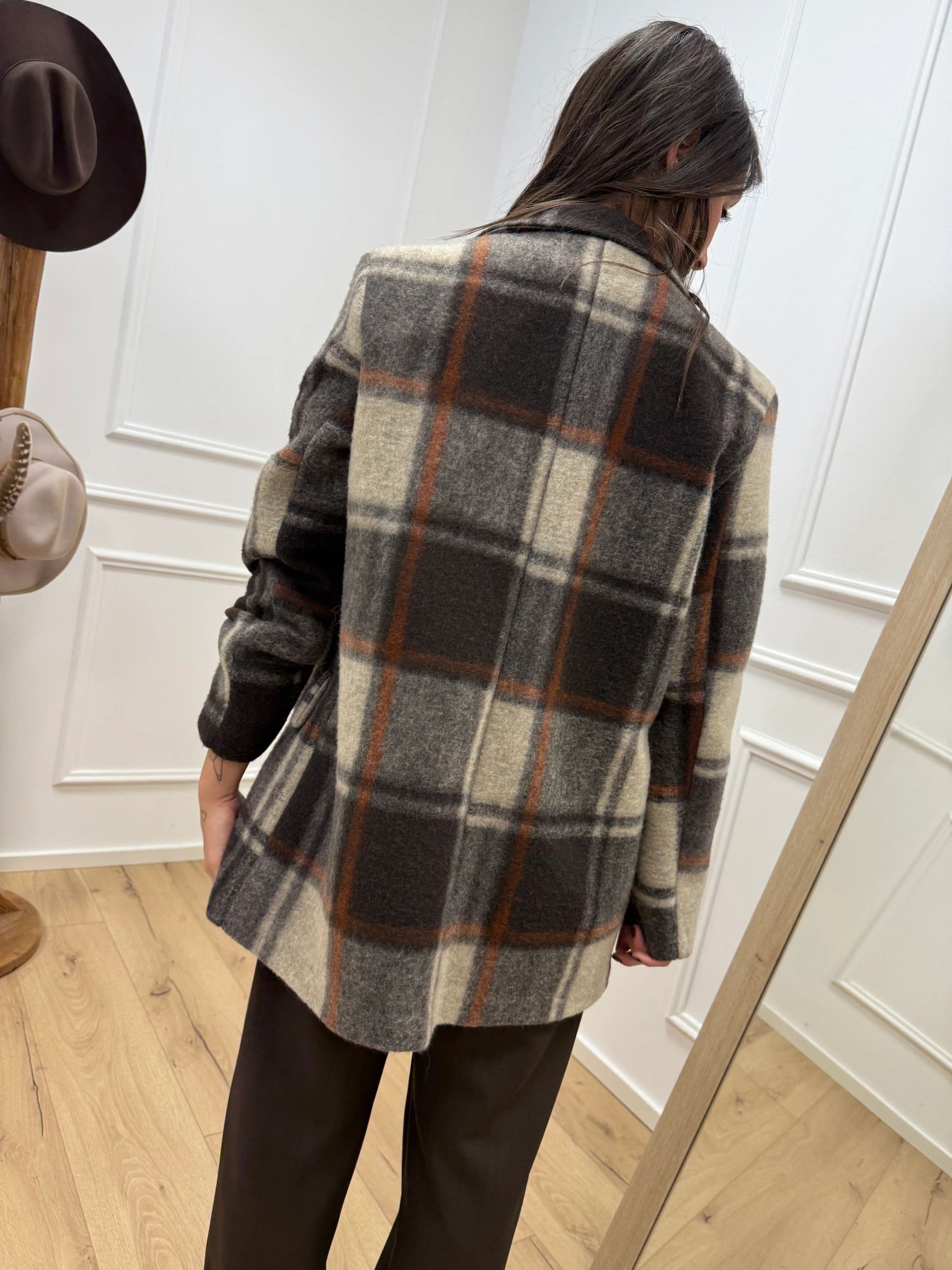 Giacca cappotto check grigio, ruggine, moro - HaveOne