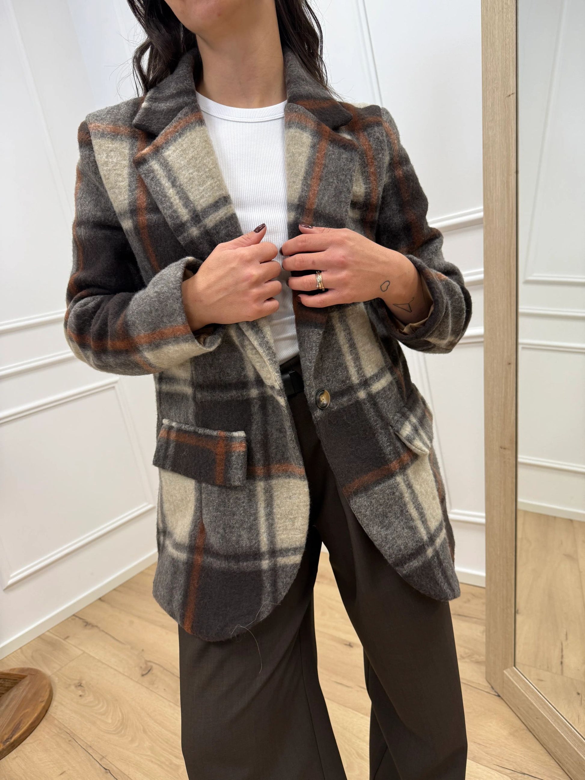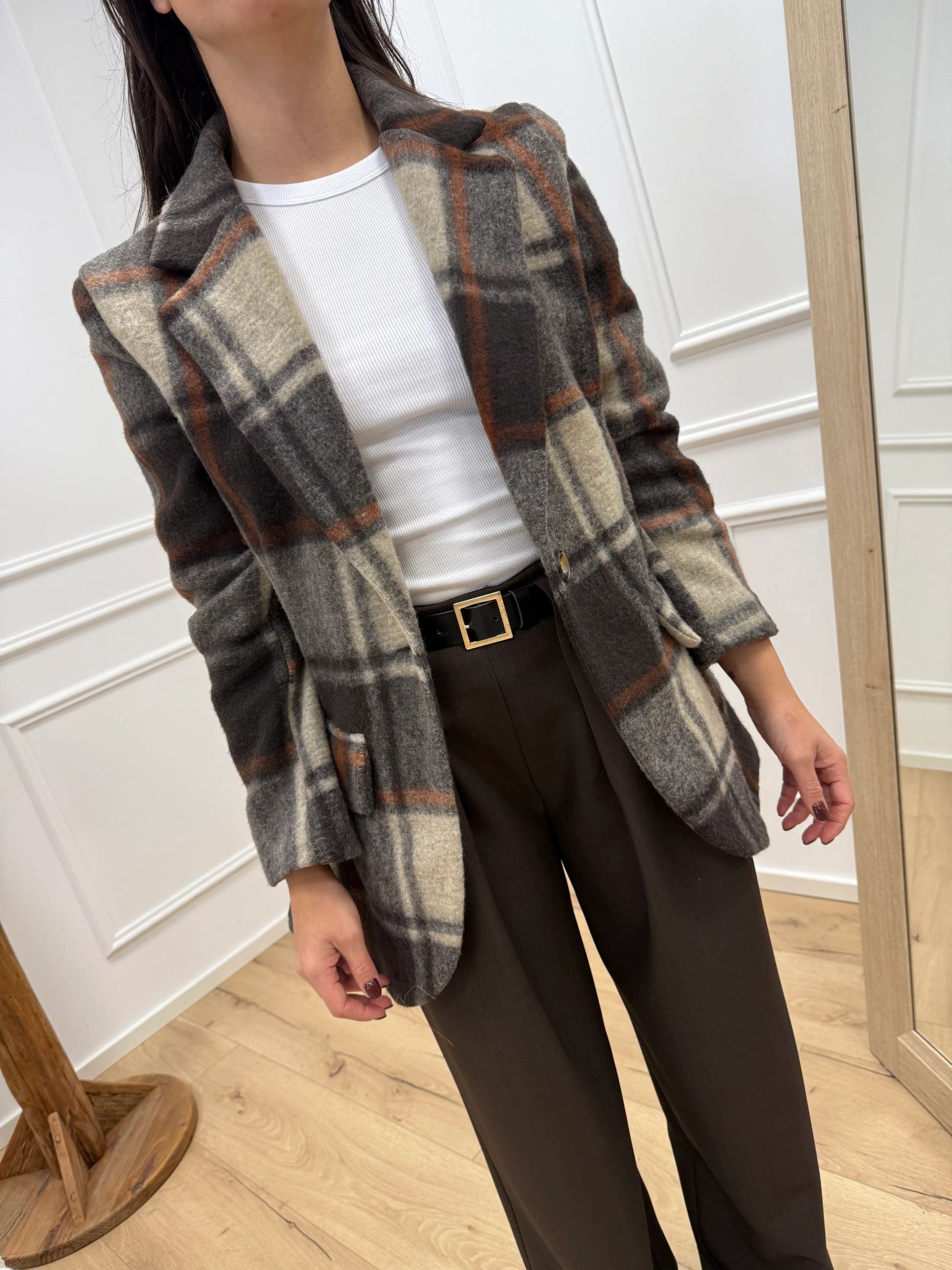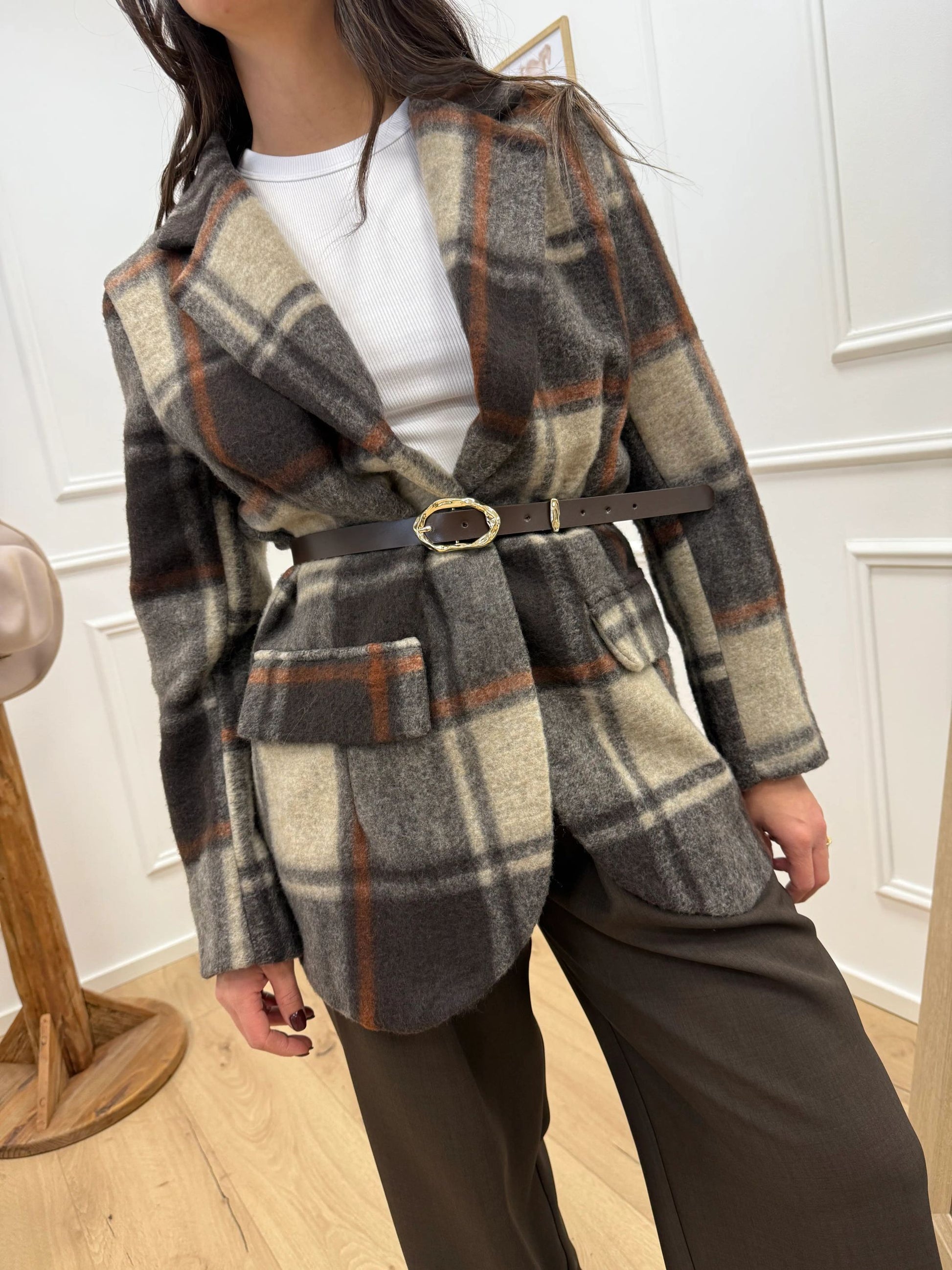 Giacca cappotto check grigio, ruggine, moro - HaveOne