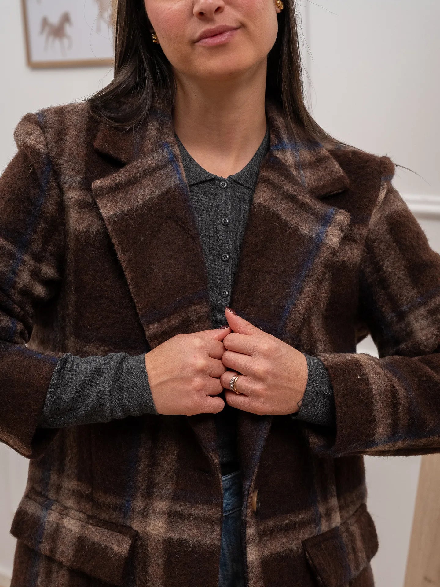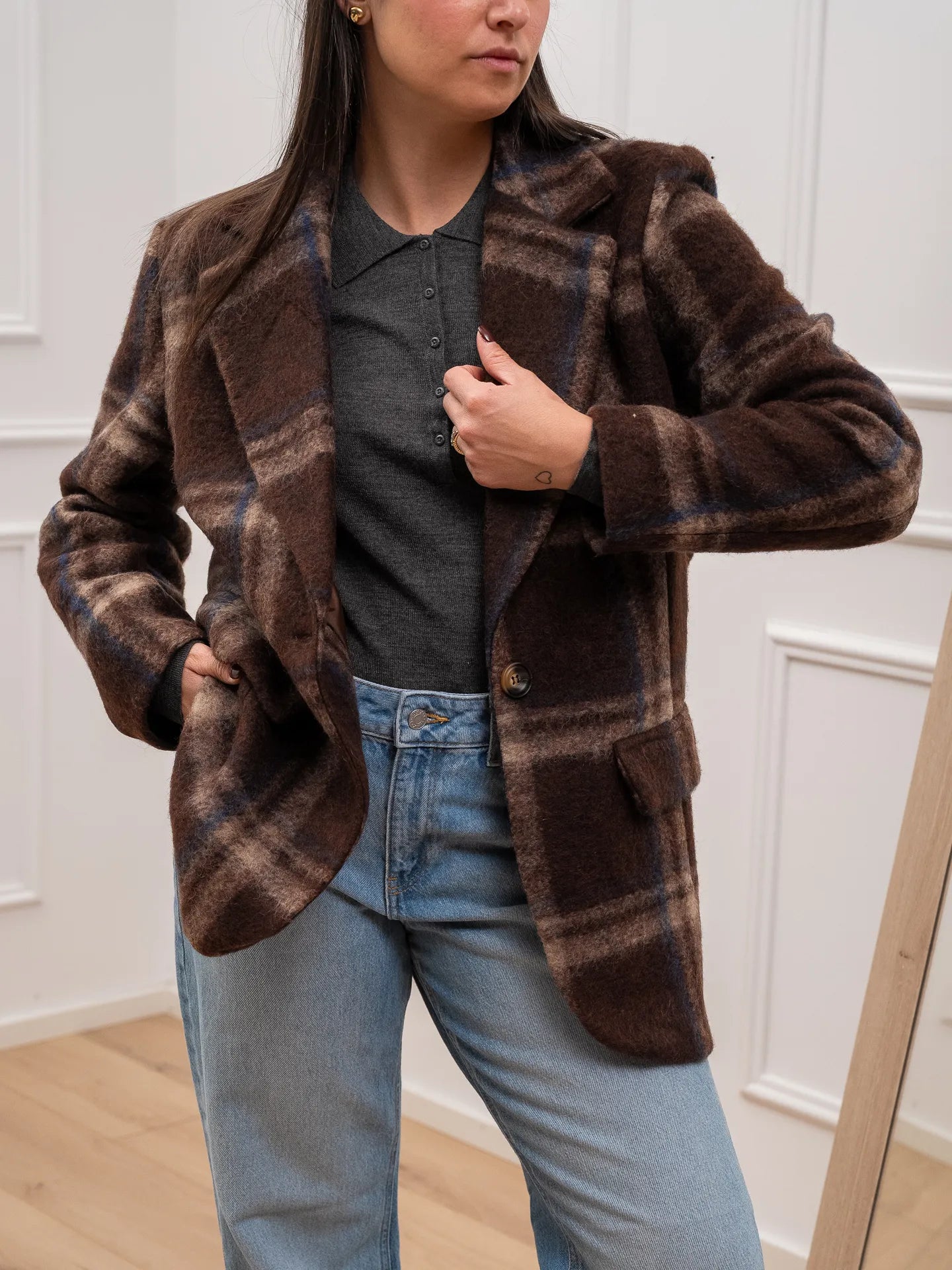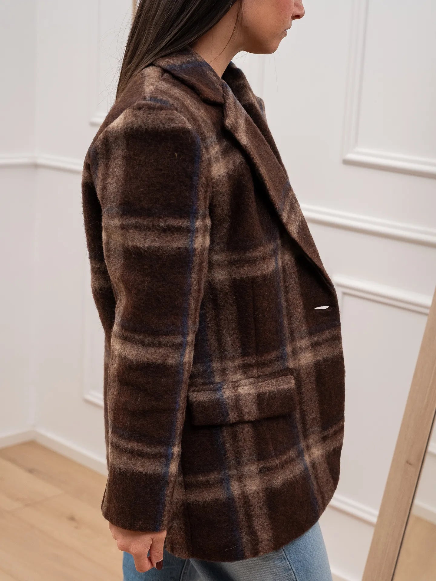 Giacca cappotto check moro e blu - HaveOne