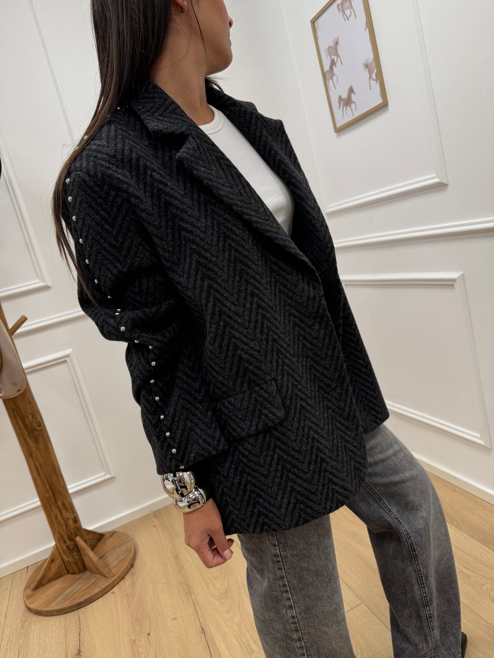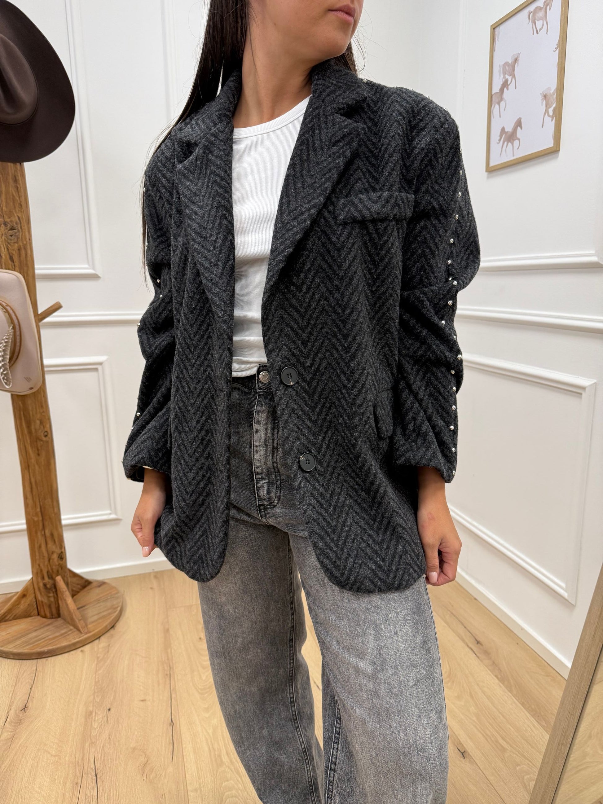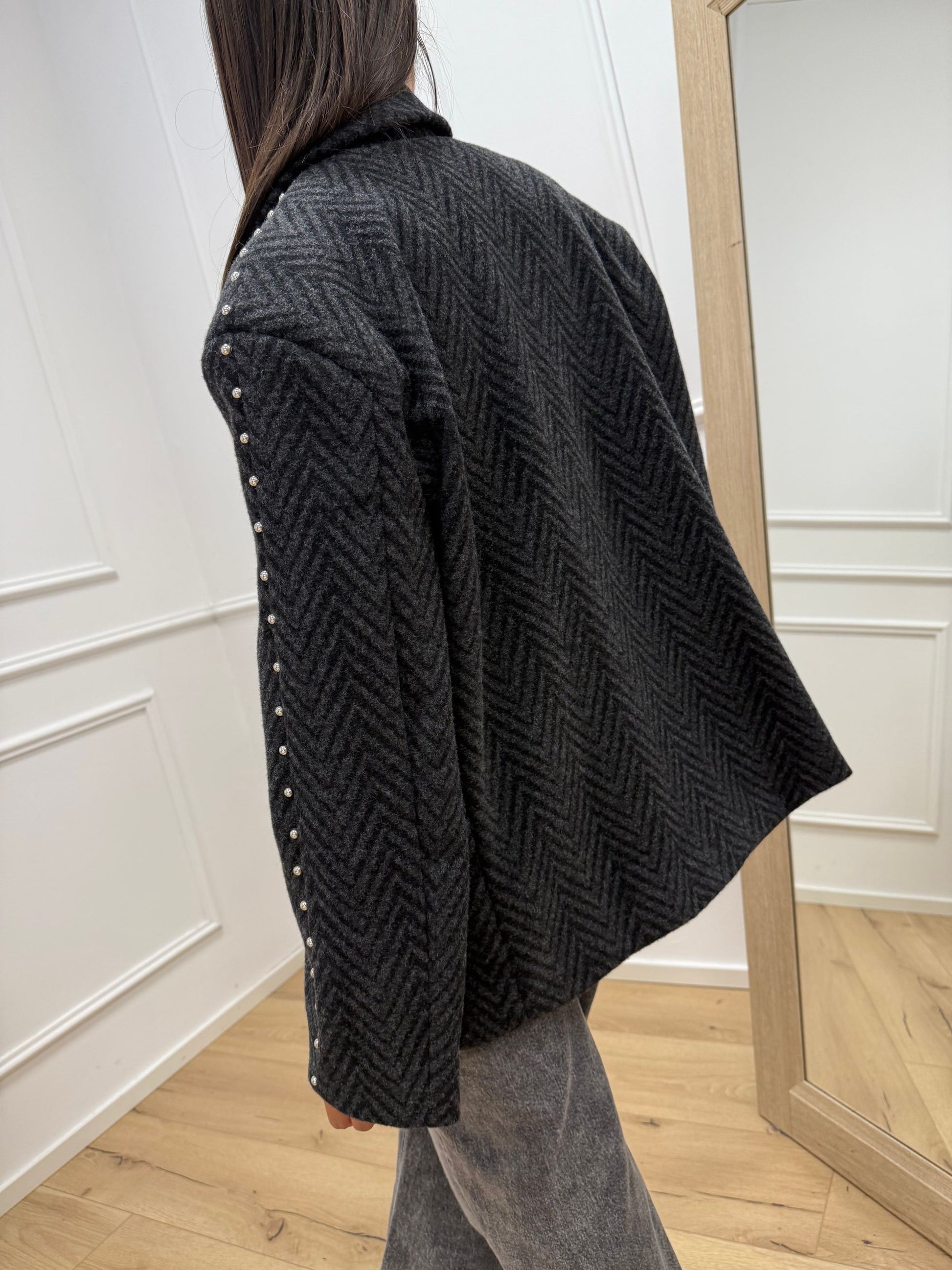 Giacca cappotto nera, grigia con borchie - HaveOne