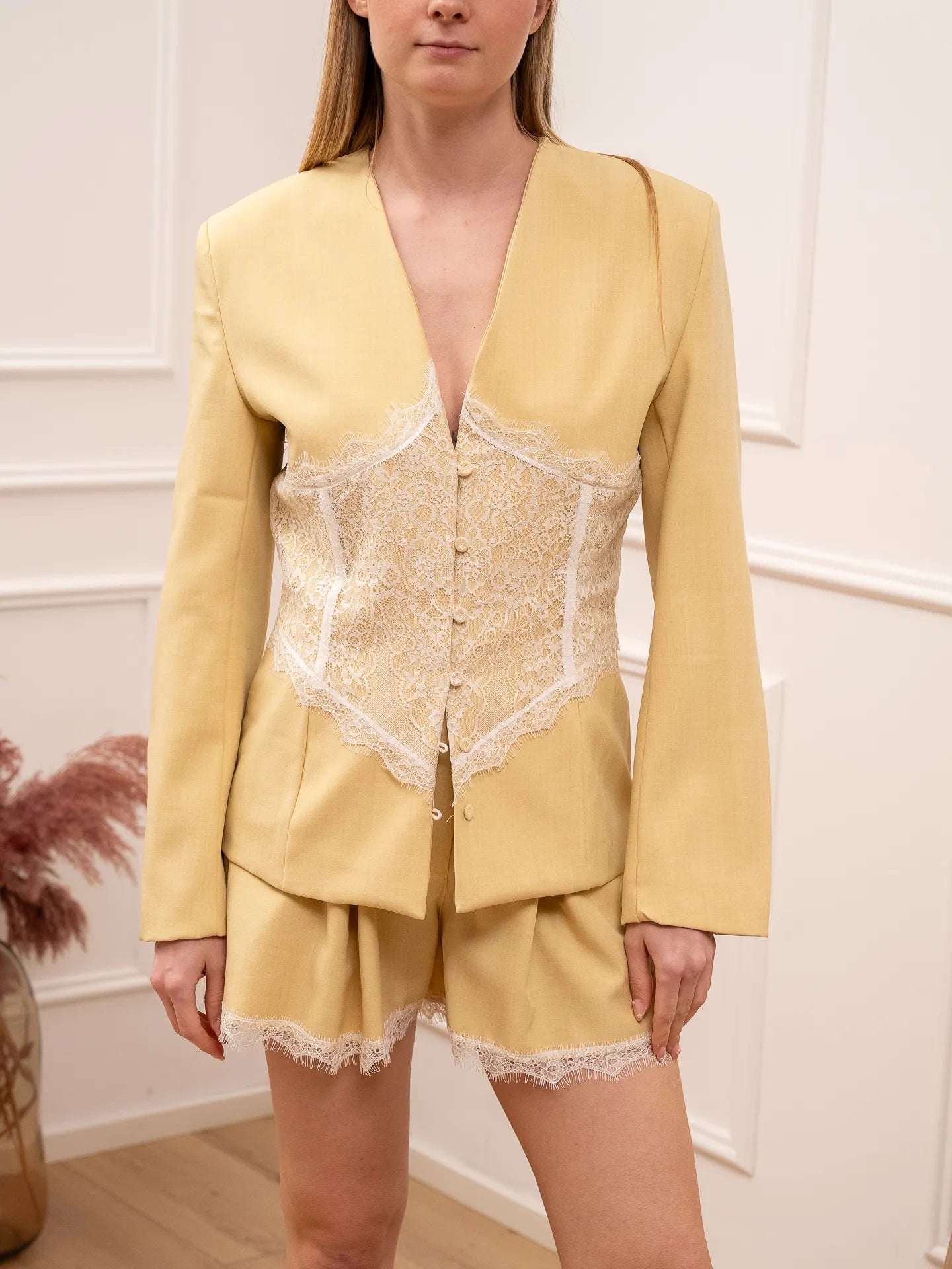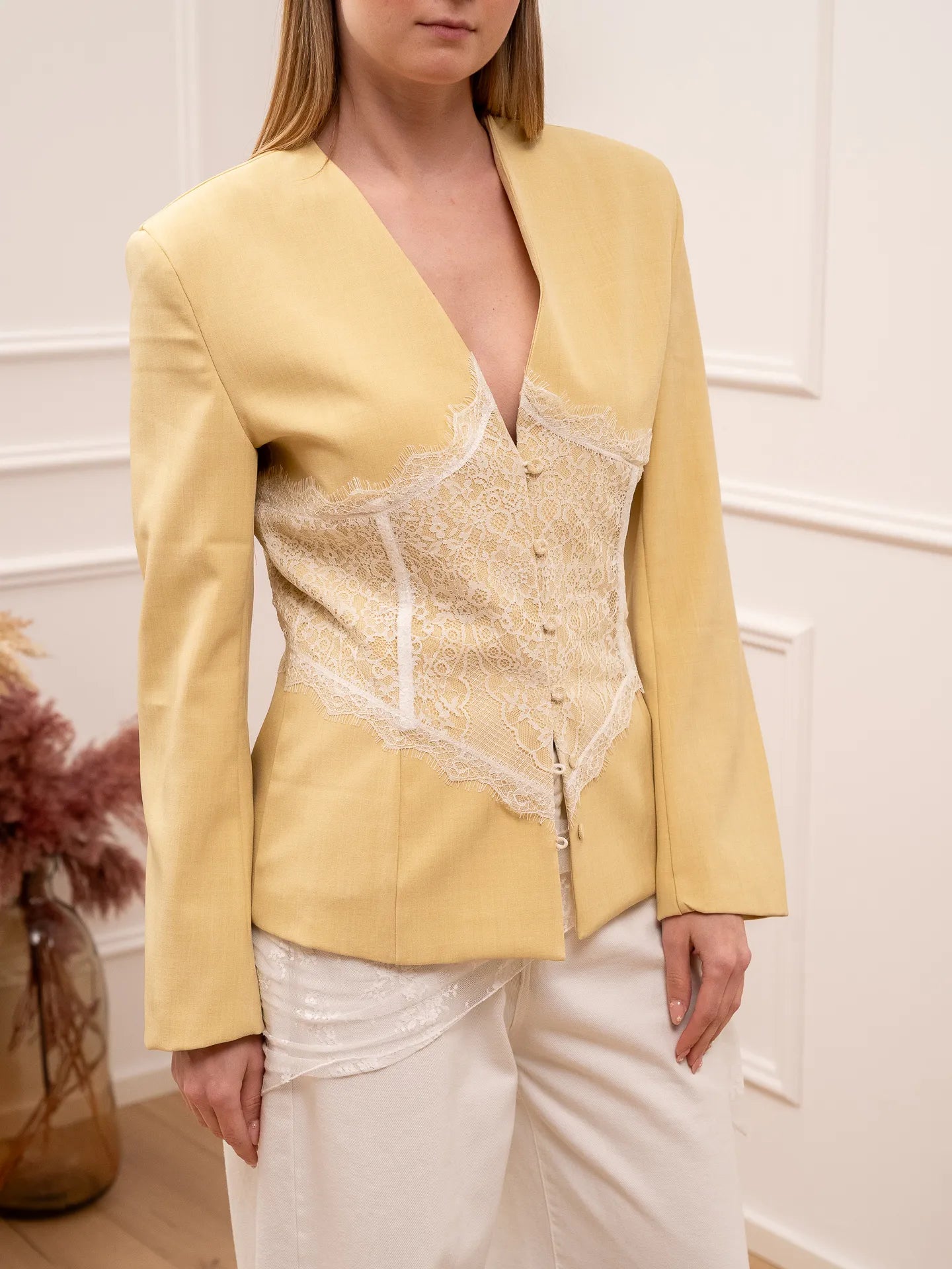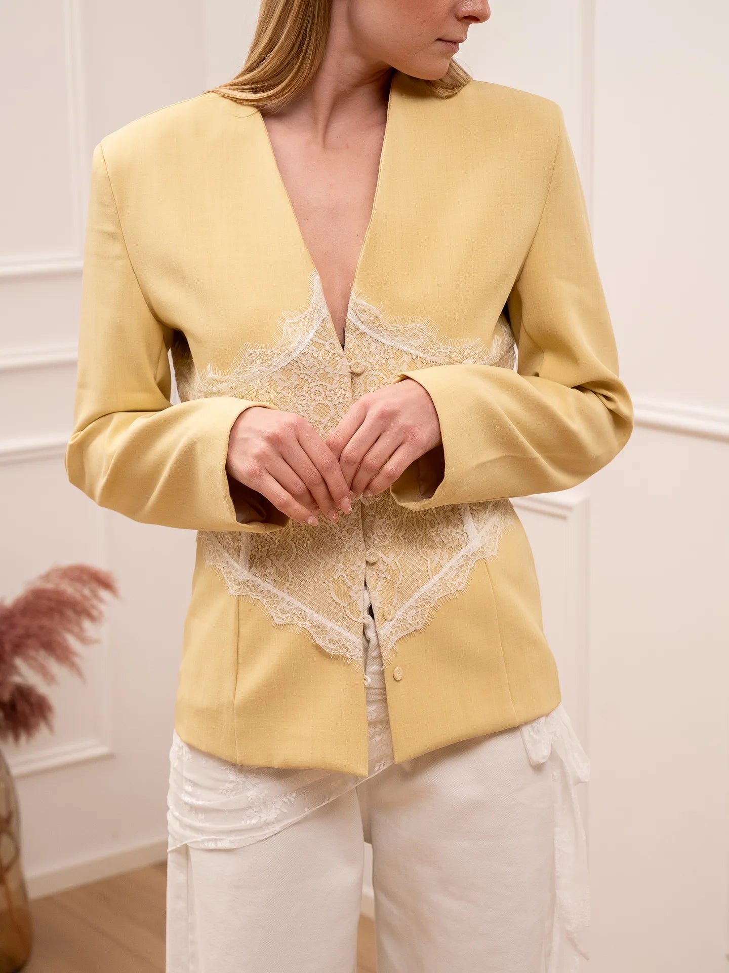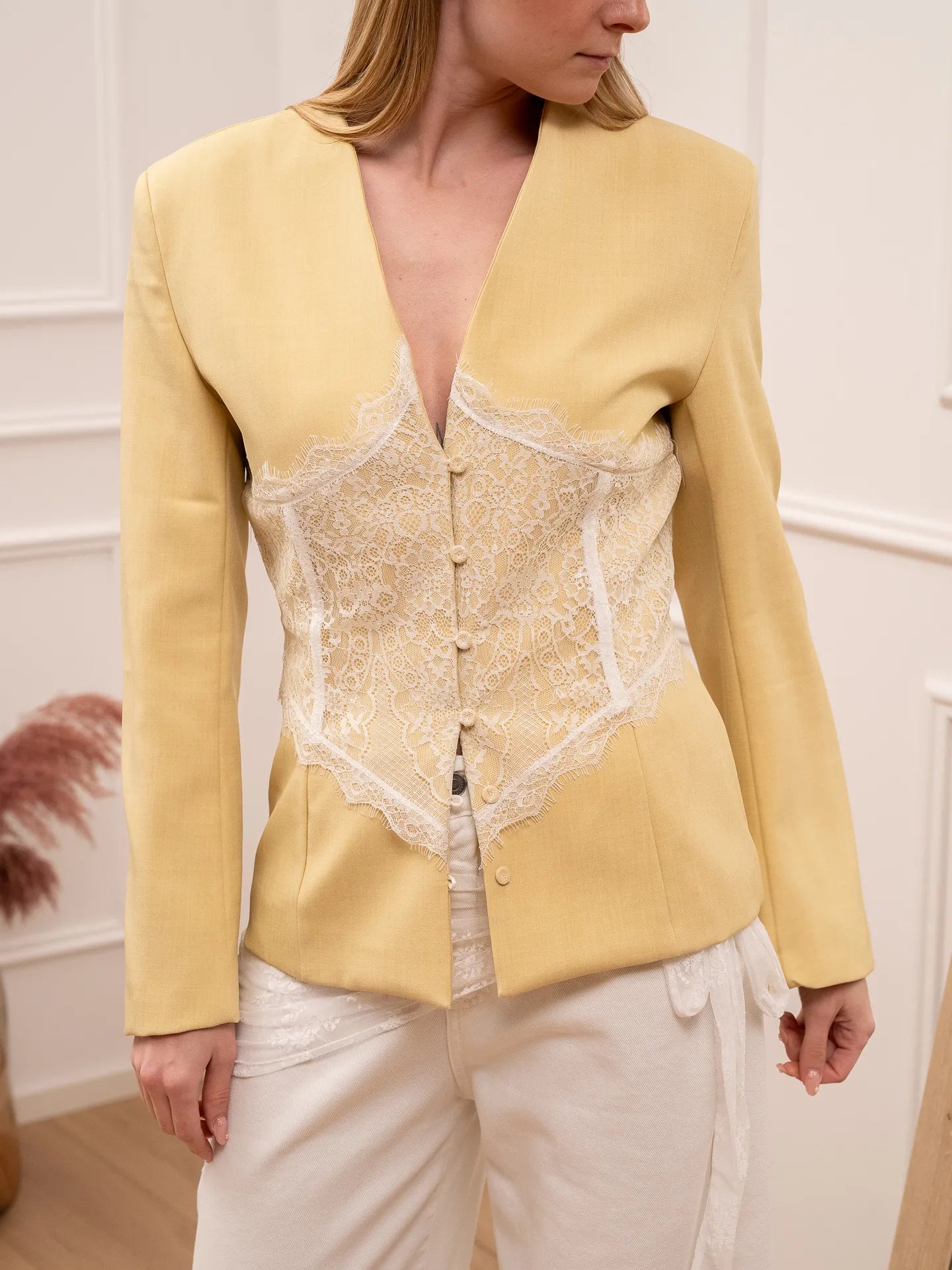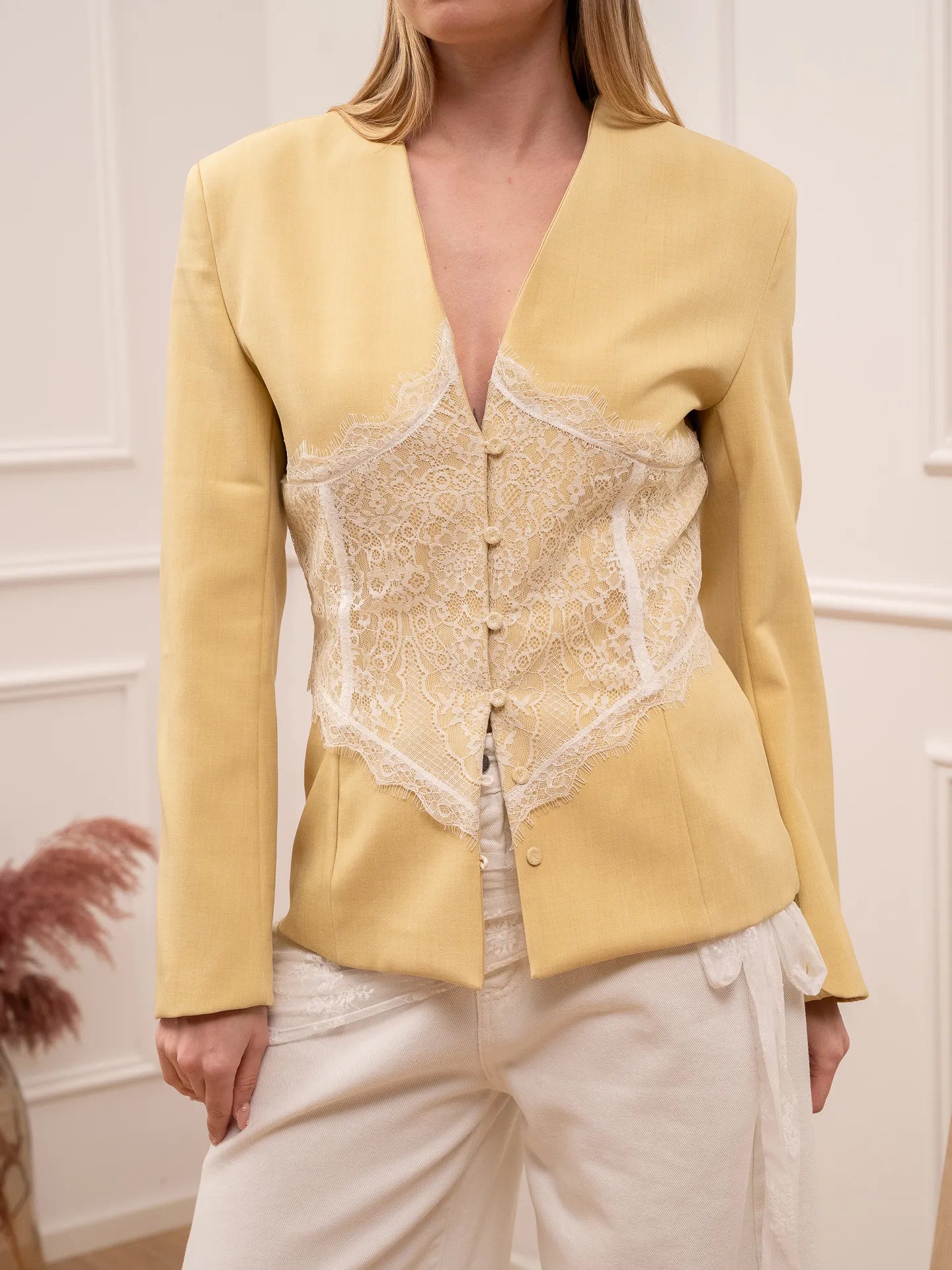 Giacca cedro con bottoncini e dettaglio in pizzo - Vicolo
