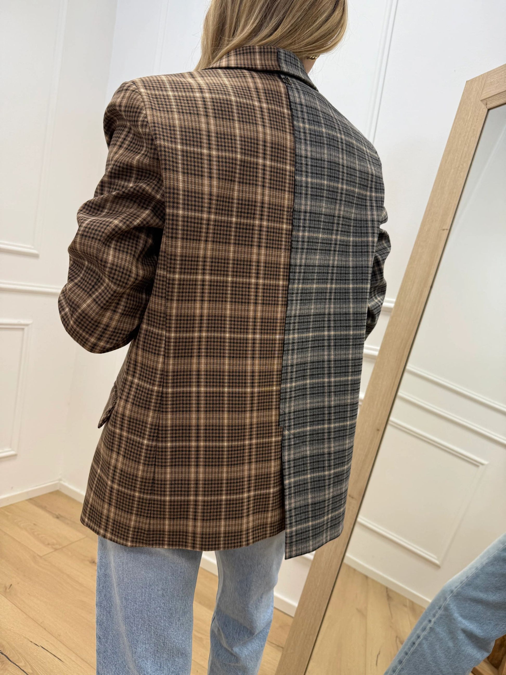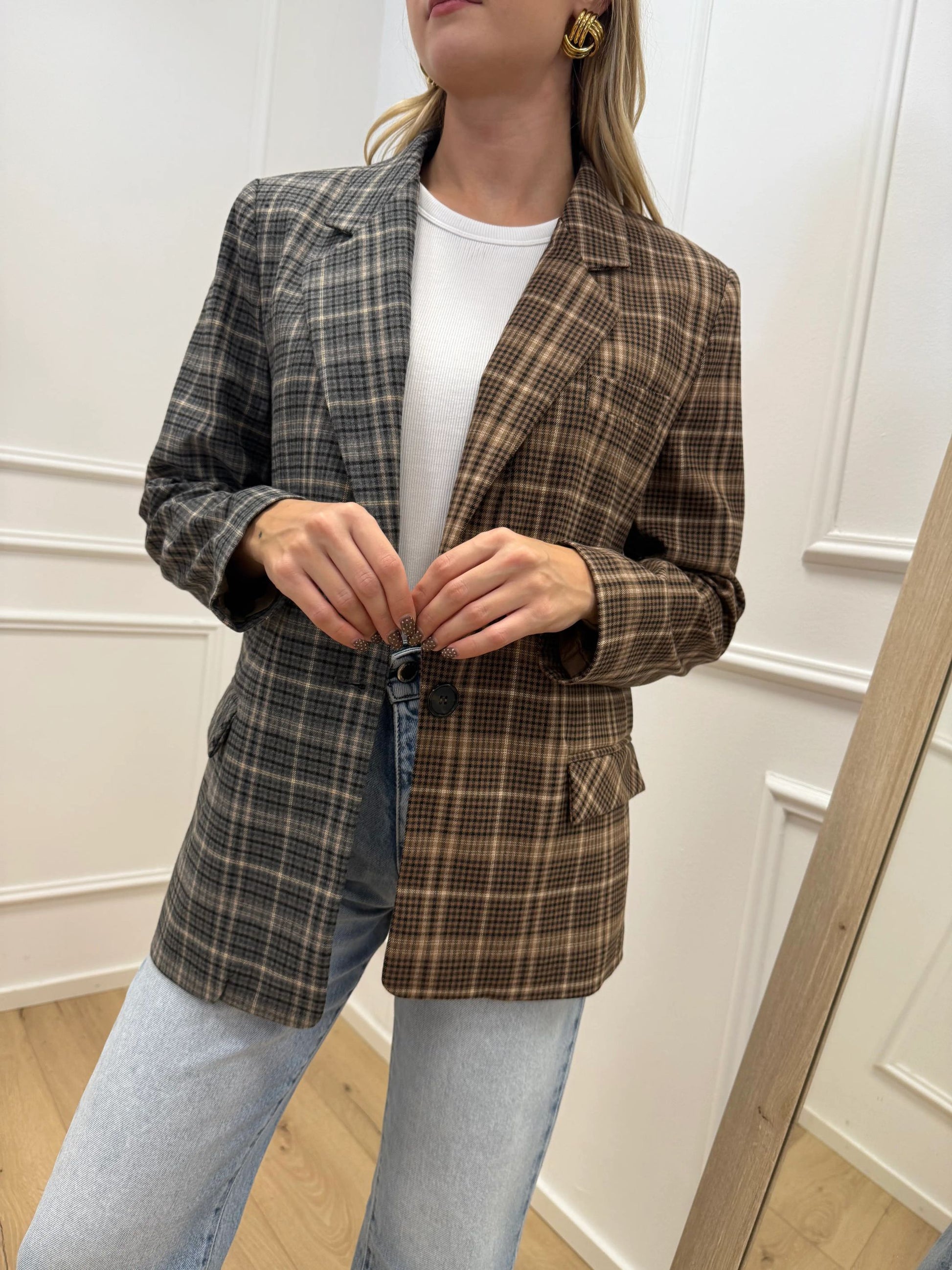 Giacca check bicolor grigio e biscotto - Dixie