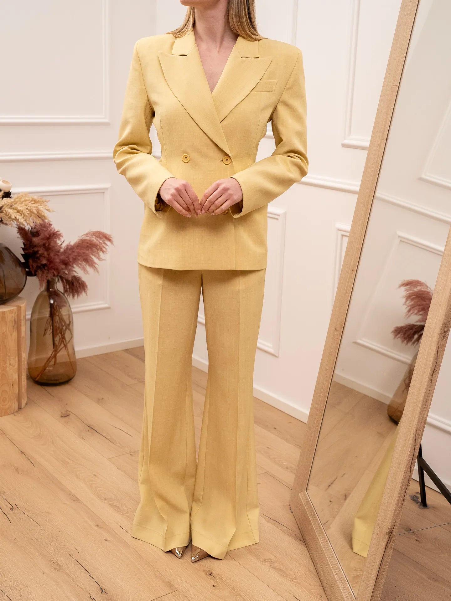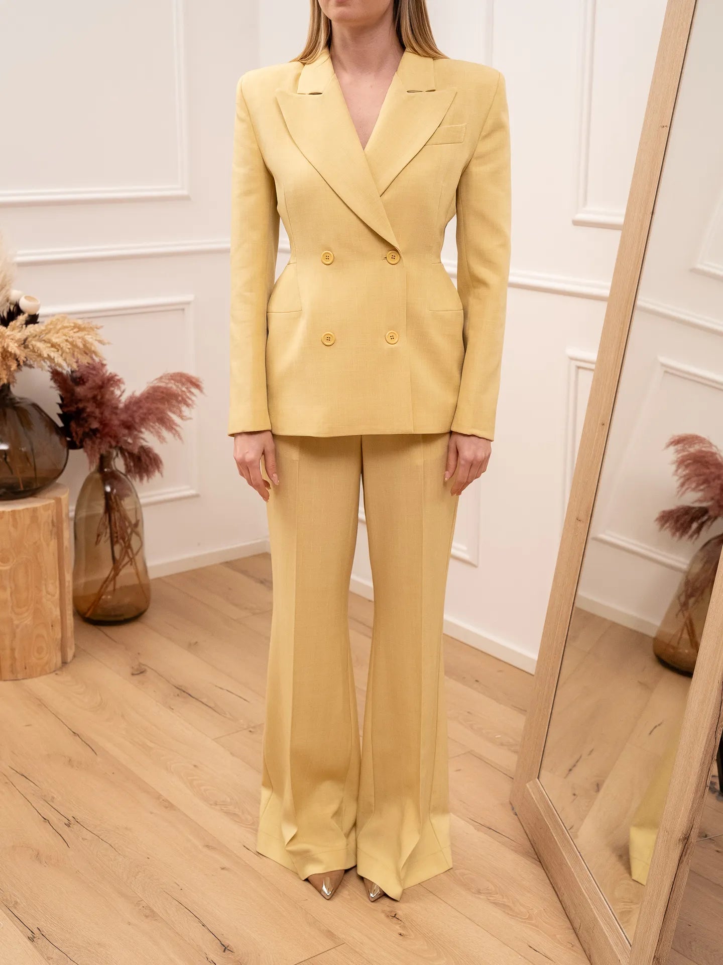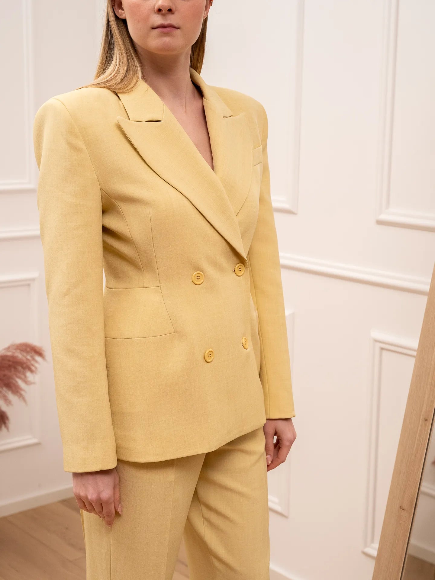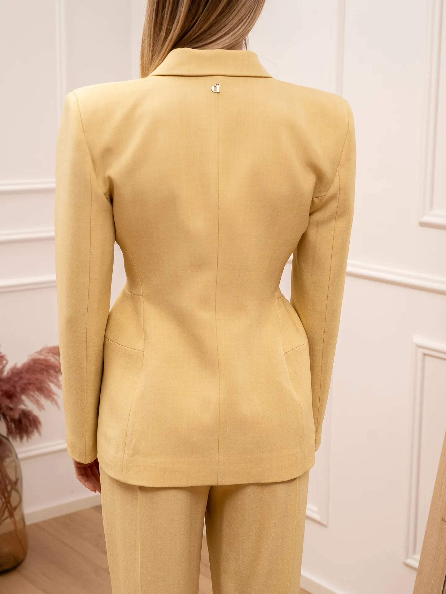 Giacca Clessidra color cedro Dixie. Modello chiusura doppiopetto fit a clessidra con maxi spalline. Collo revers e fit regolare. Tasche a filetto frontali.