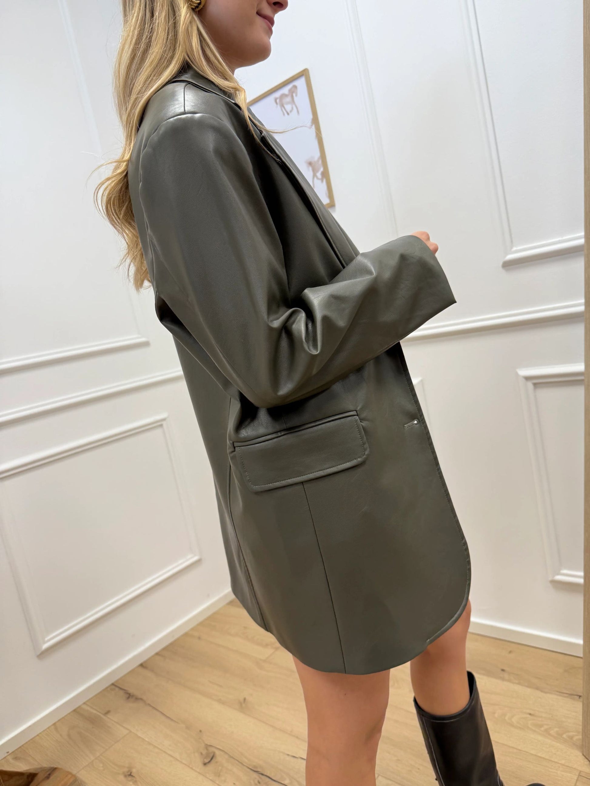 Giacca in ecopelle verde militare a due bottoni - Silence Limited