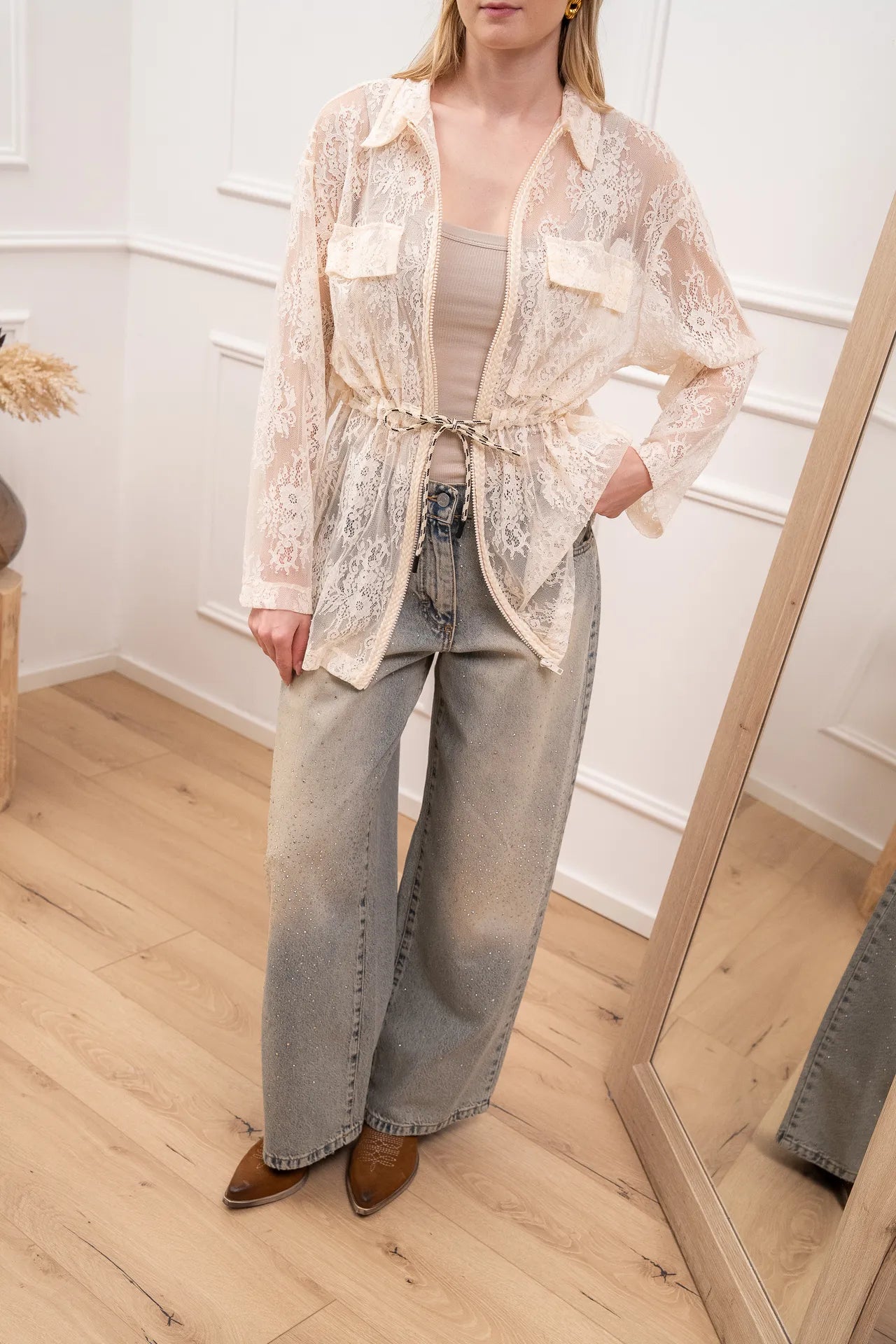 Giacca in pizzo burro con coulisse in vita - Vicolo