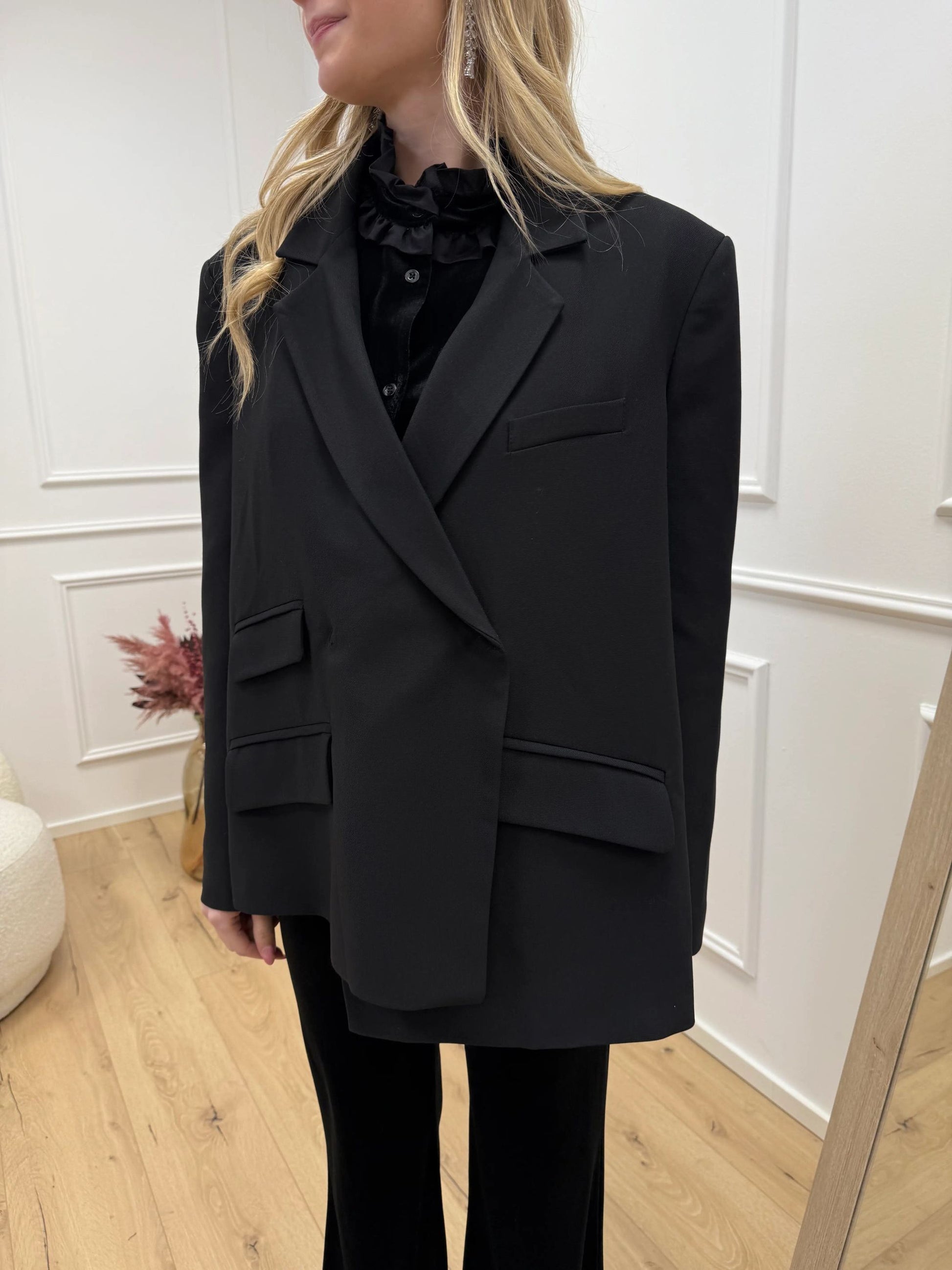 Giacca nera bottone laterale e doppia tasca - HaveOne