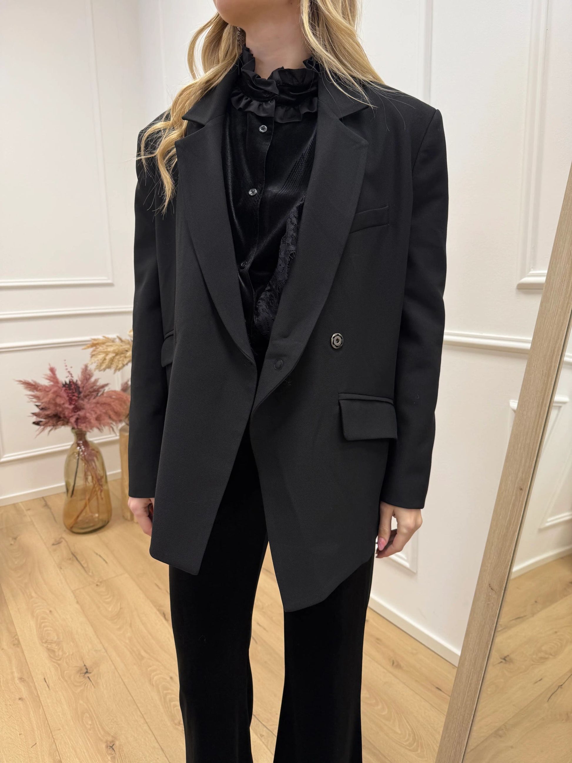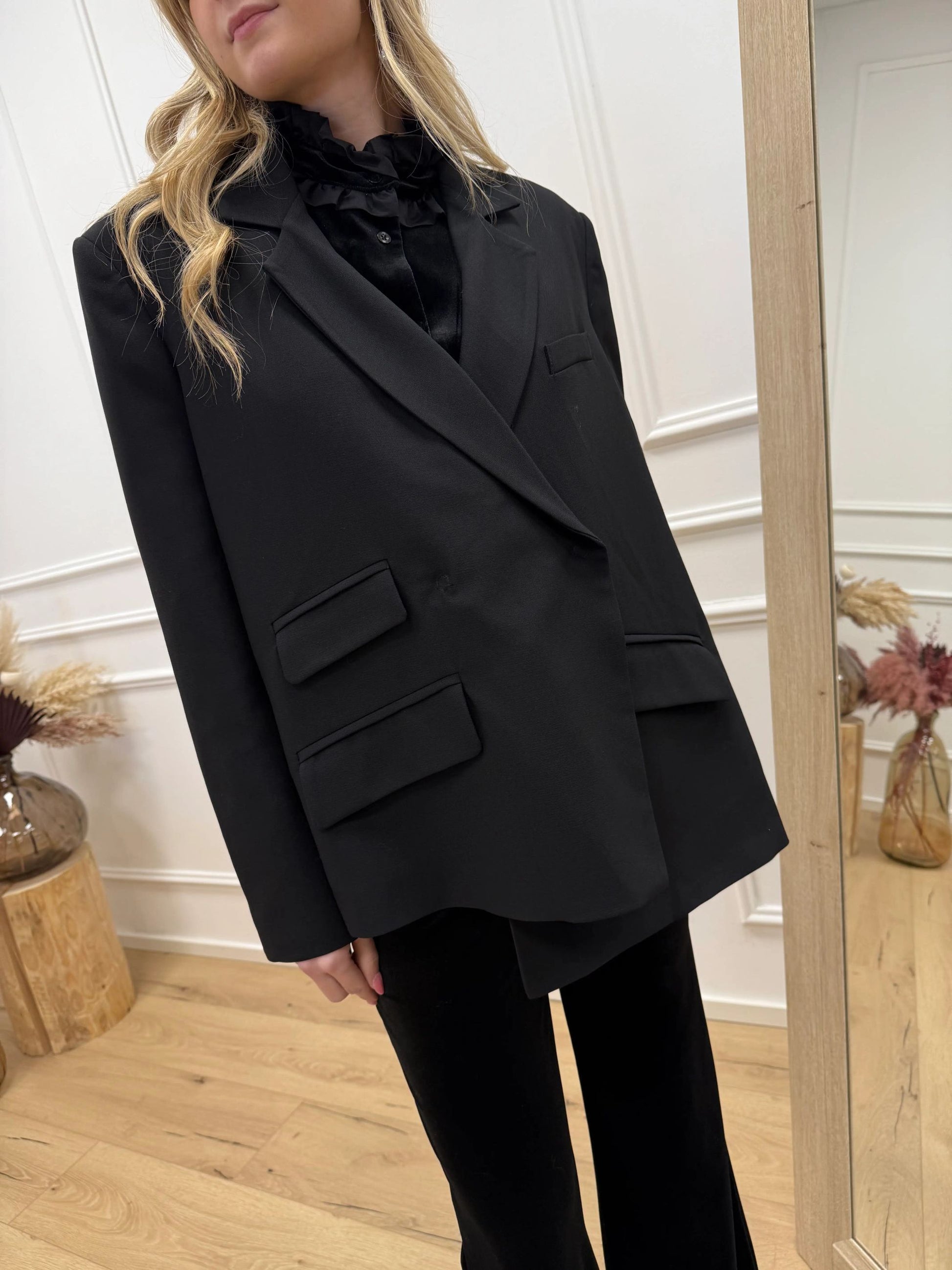 Giacca color nero HaveOne. Modello basic collo revers e chiusura frontale doppiopetto con bottoni a pressione, maniche lunghe. Fit oversize e spalla imbottita. Dettaglio di doppia tasca con patta.