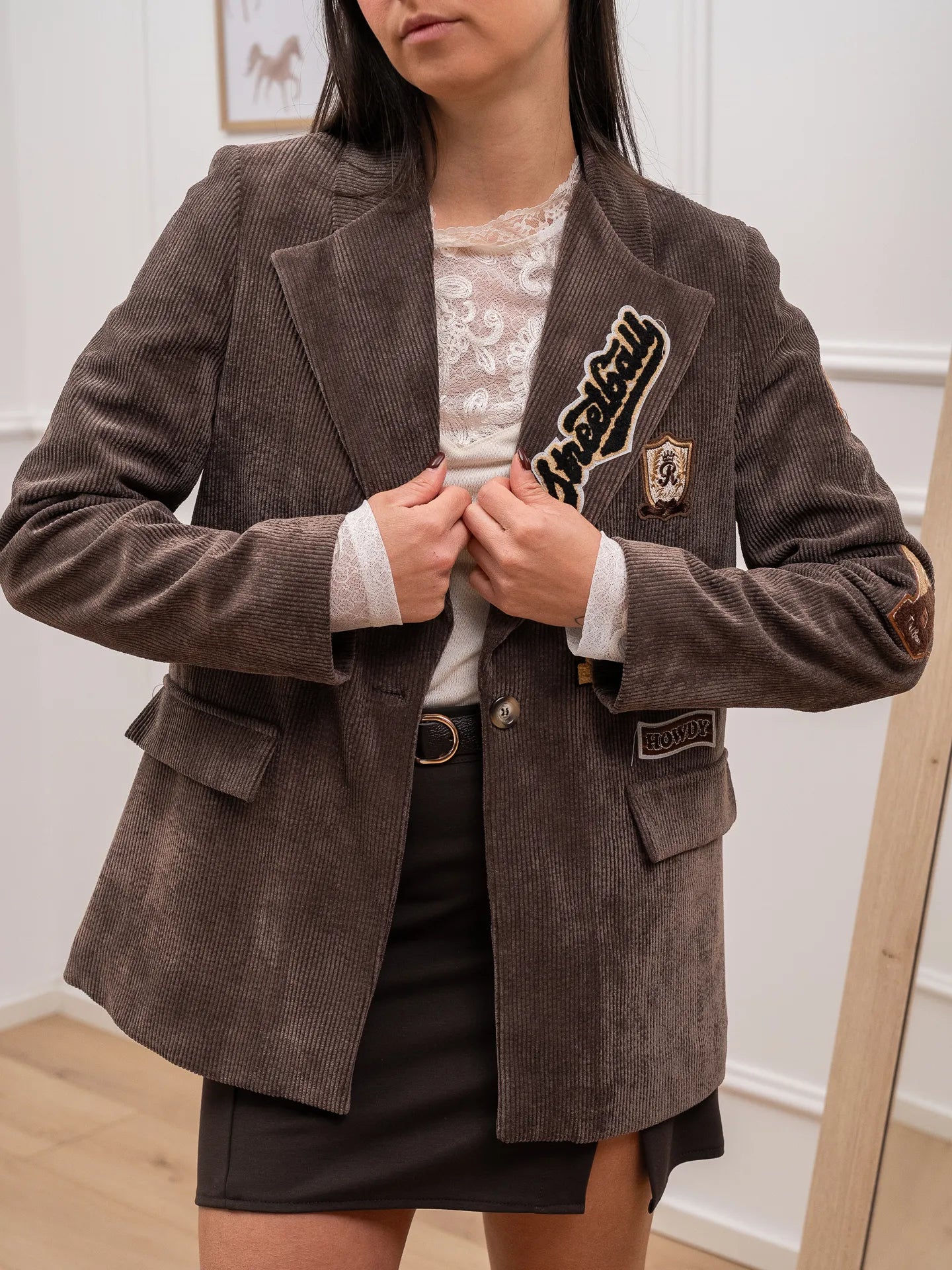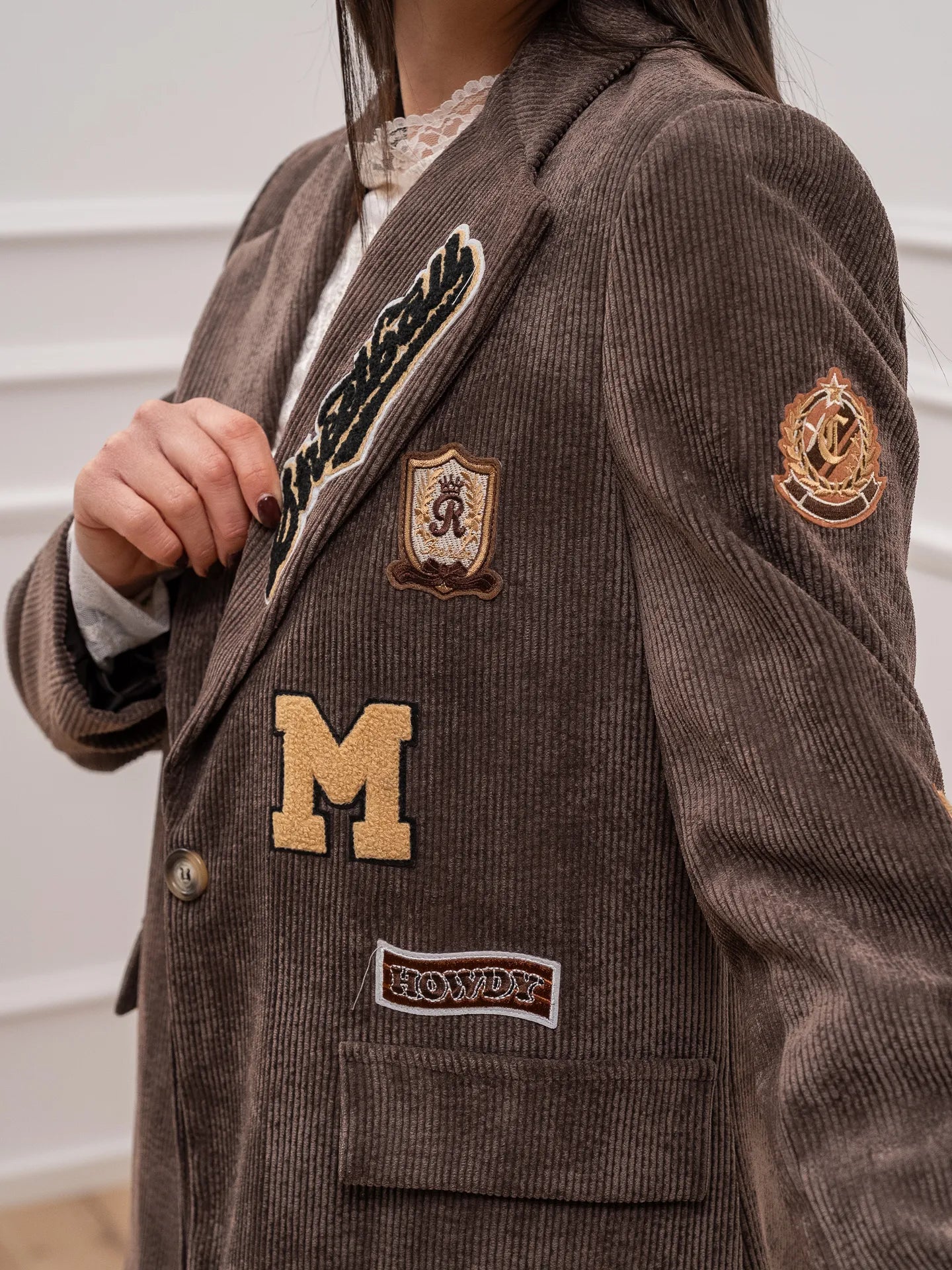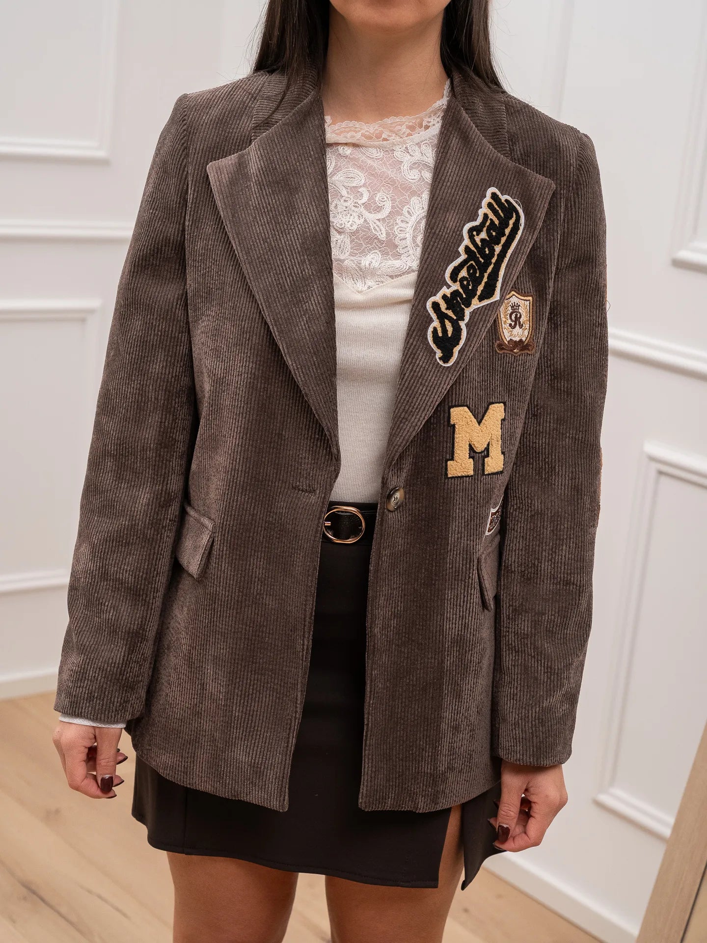 Giacca nutella a costine di velluto con patch - Vicolo