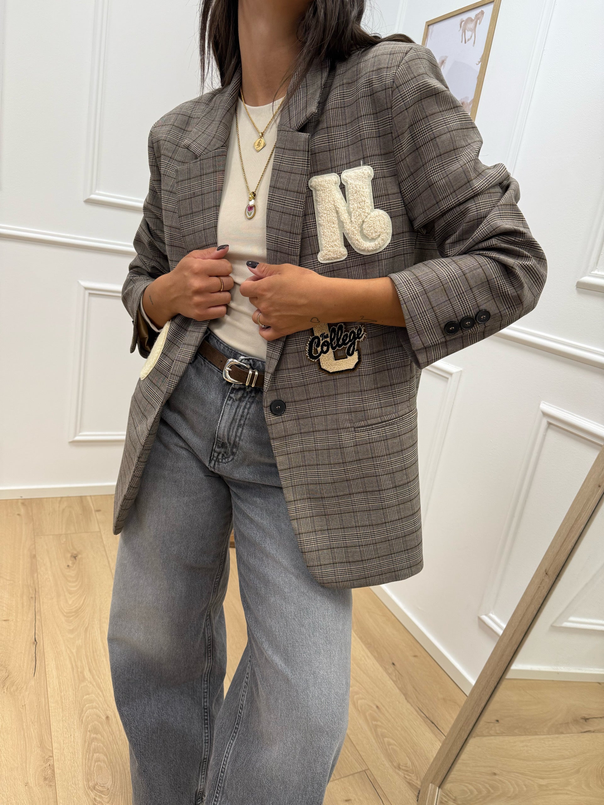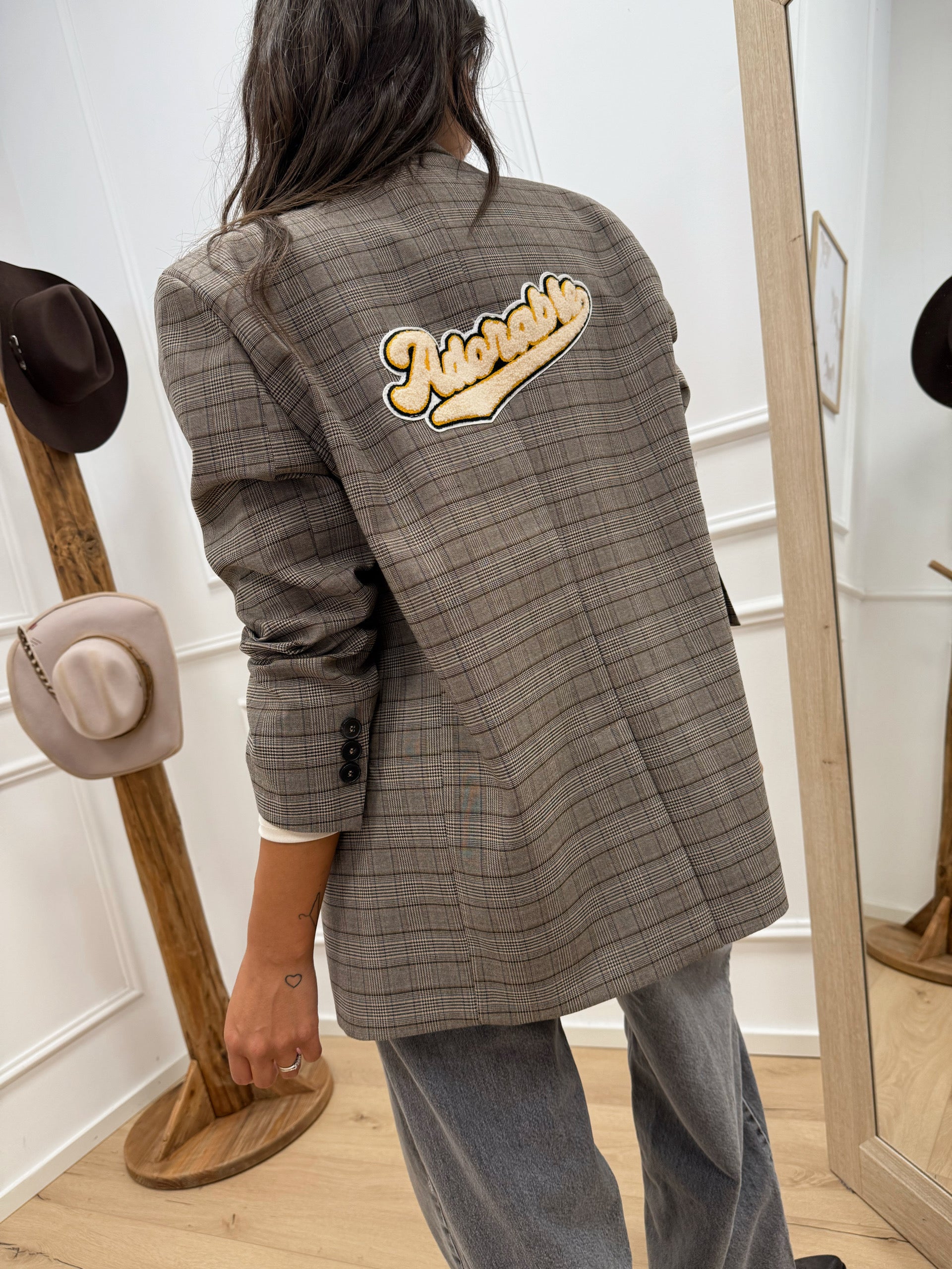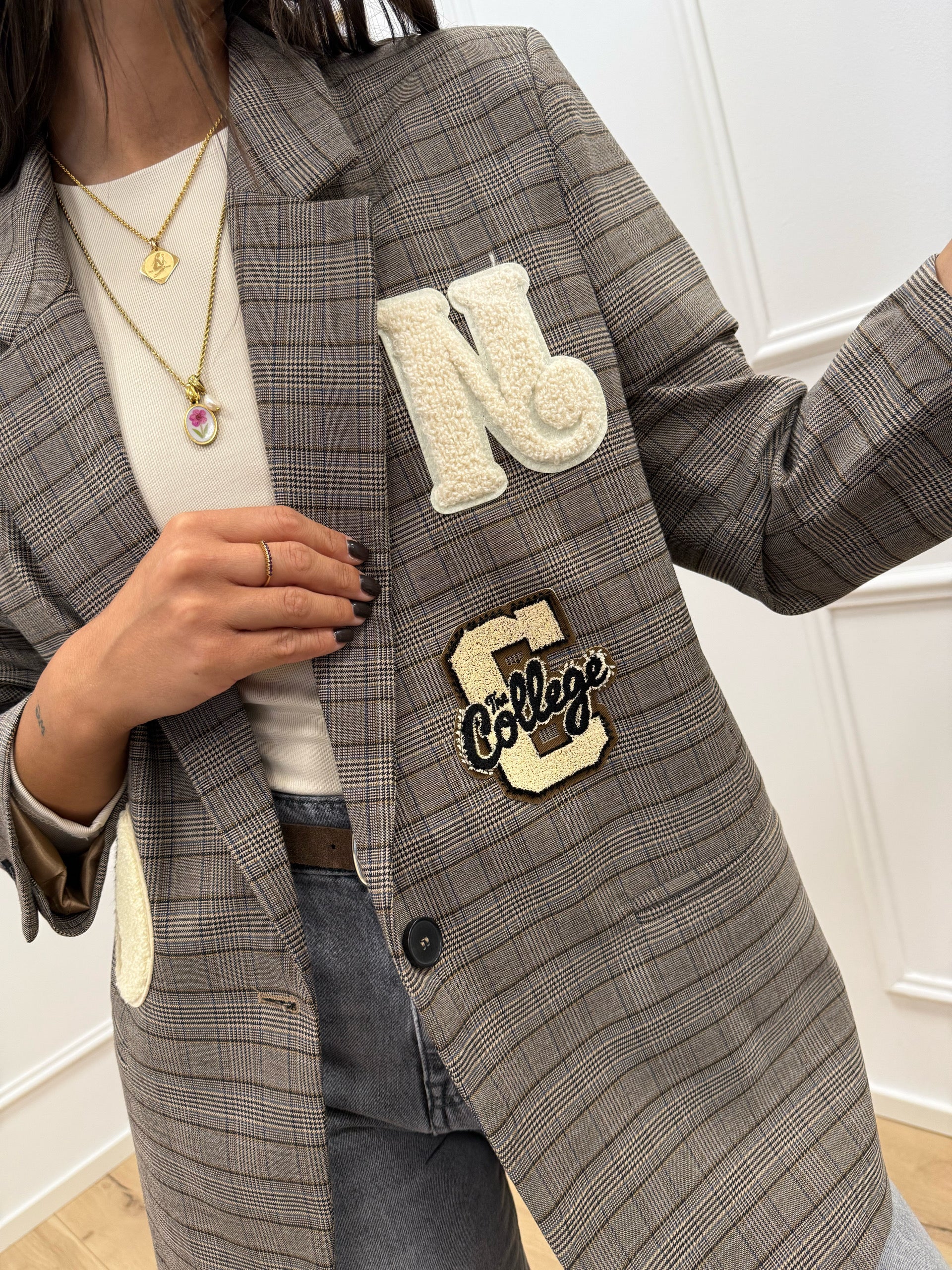 Giacca check Vicolo. Modello chiusura a due bottoni, collo revers e maniche lunghe. Fit oversize con dettaglio di patch bouclé frontali e sul retro.