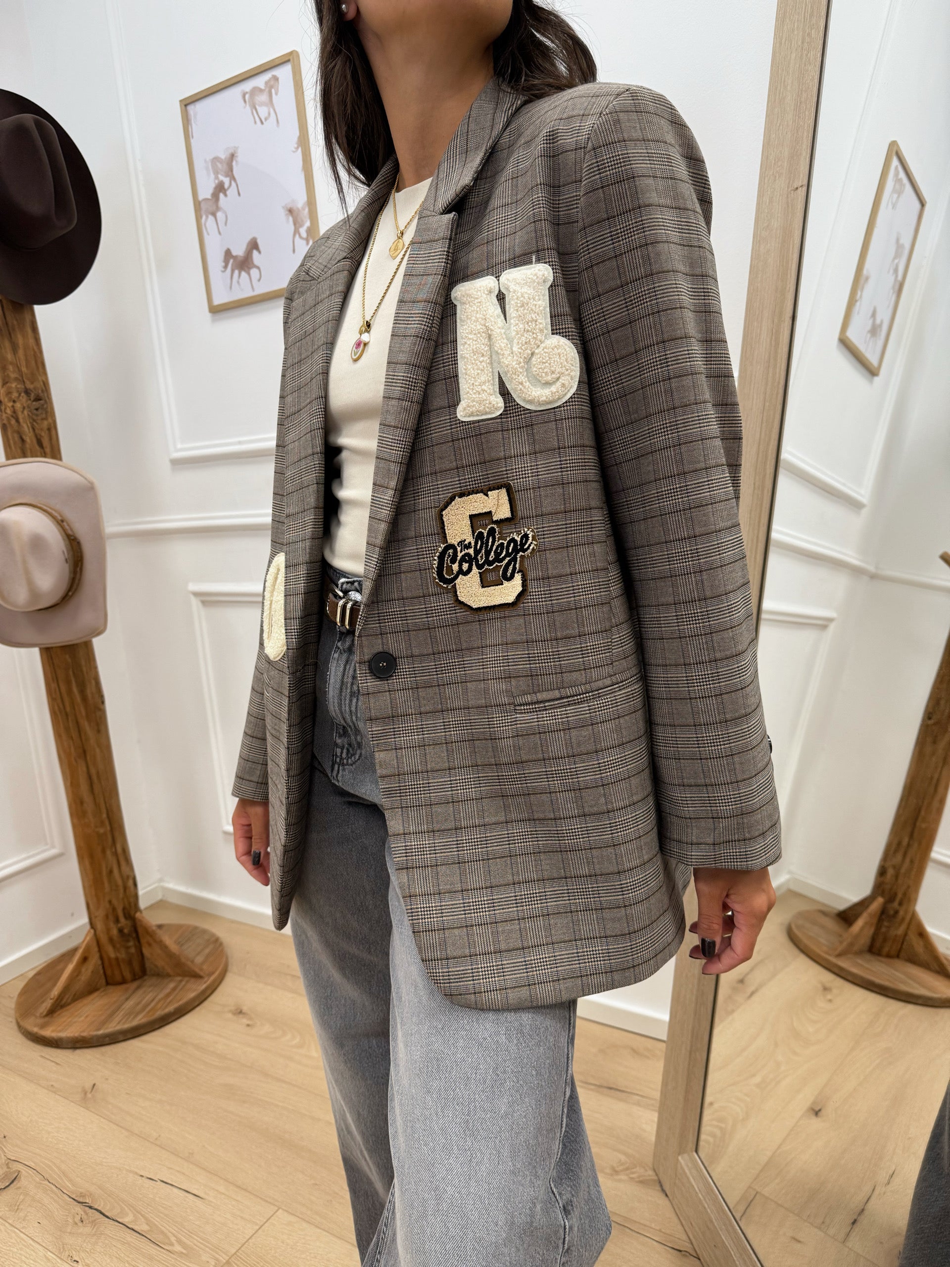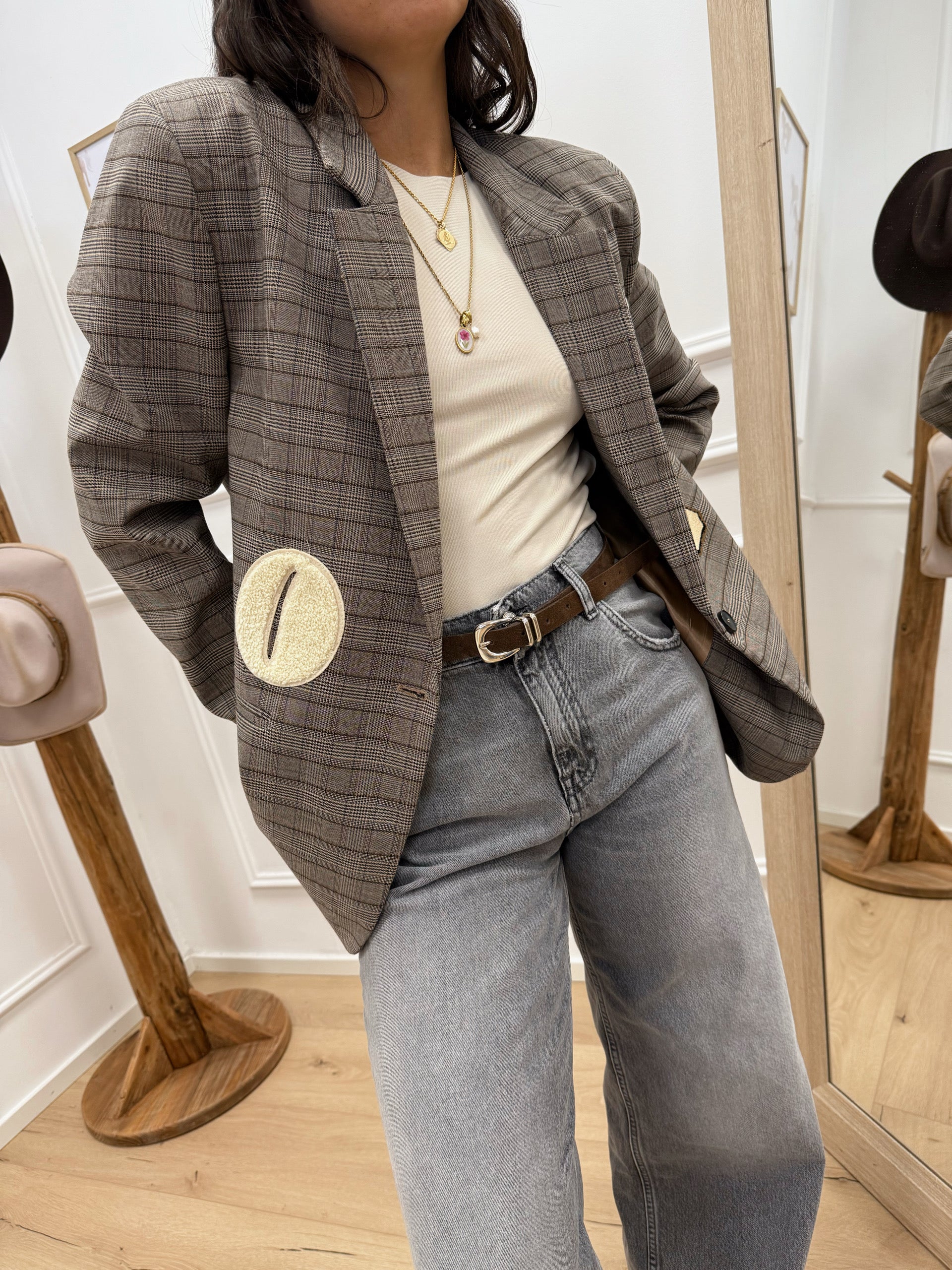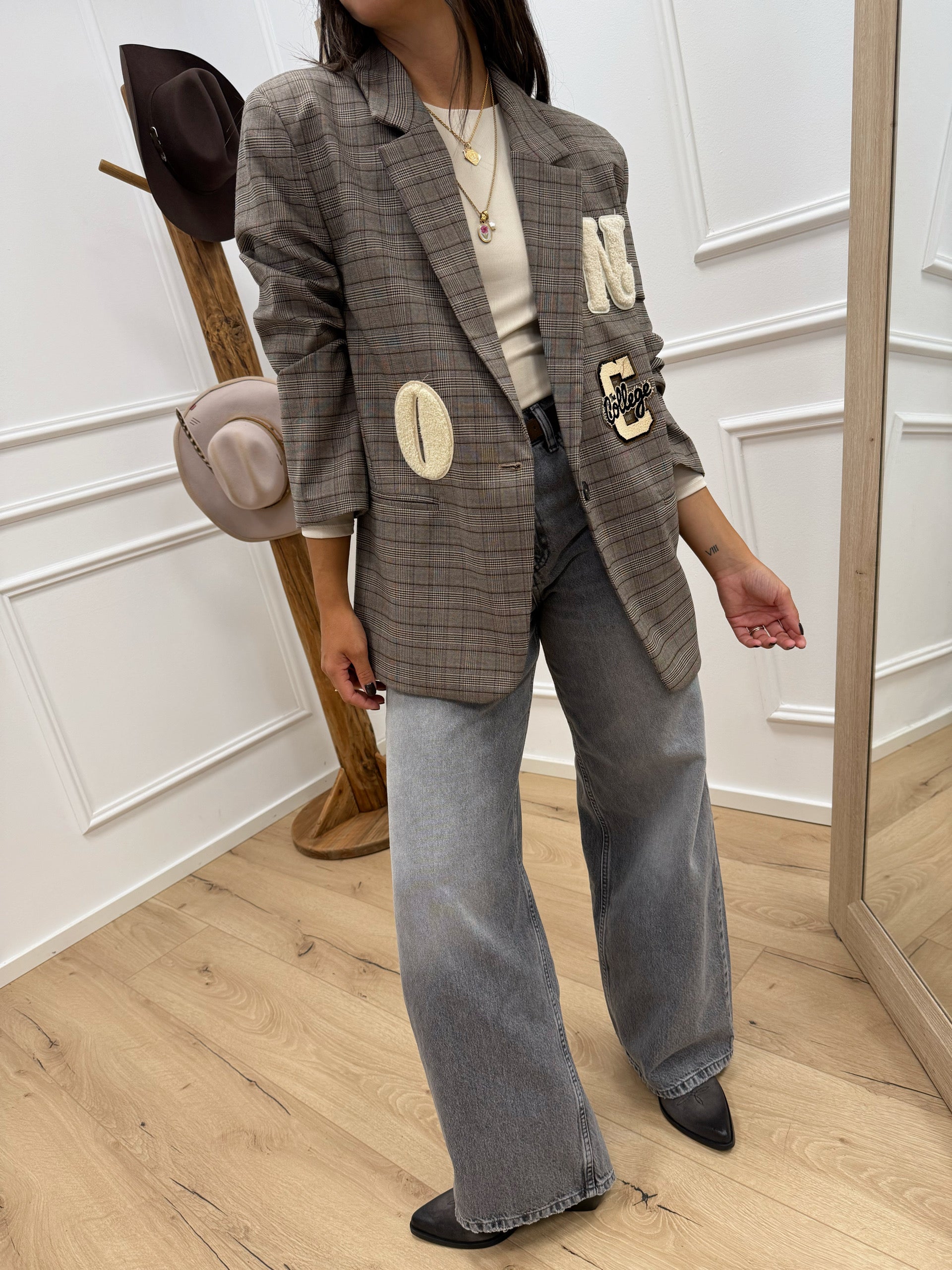 Giacca check Vicolo. Modello chiusura a due bottoni, collo revers e maniche lunghe. Fit oversize con dettaglio di patch bouclé frontali e sul retro.