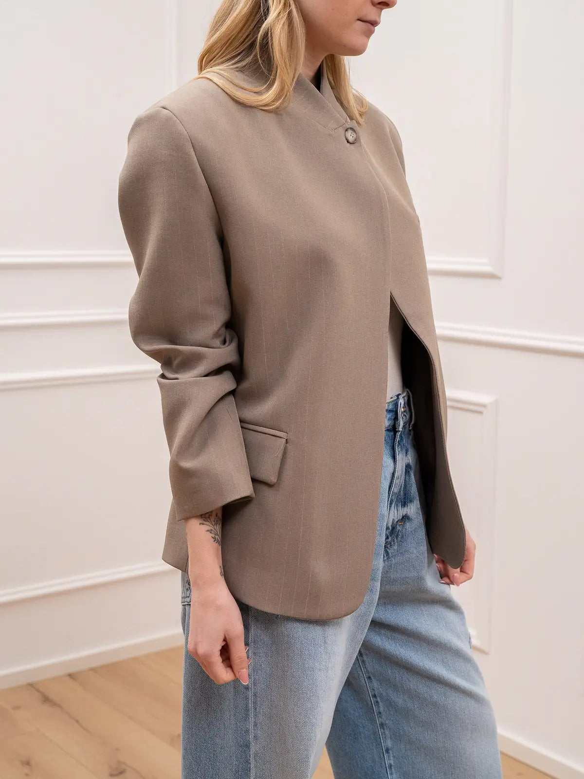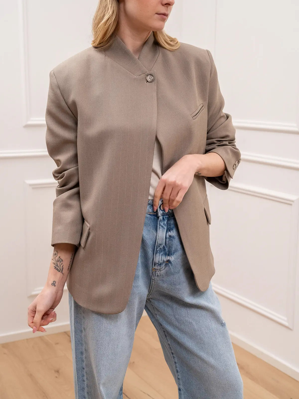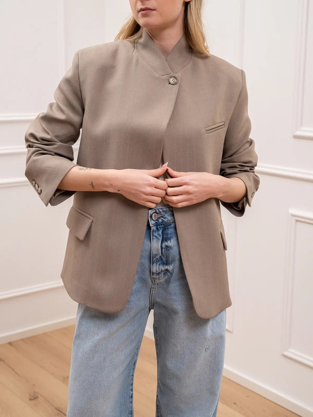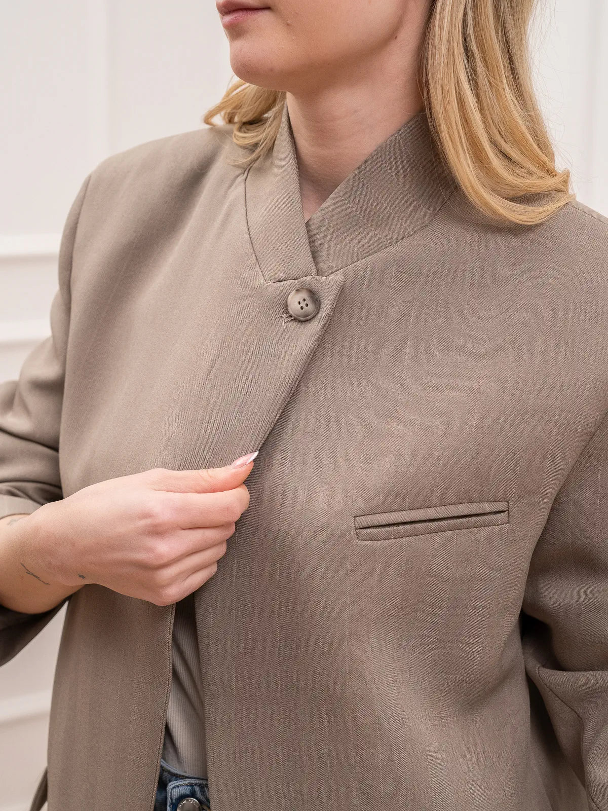 Giacca Pepe fantasia check grigia Vicolo. Modello fit dritto chiusura parziale con bottone altezza collo. Spalle imbottite e maniche lunghe con bottoncini sul fondo. Tasca a filetto lato cuore.