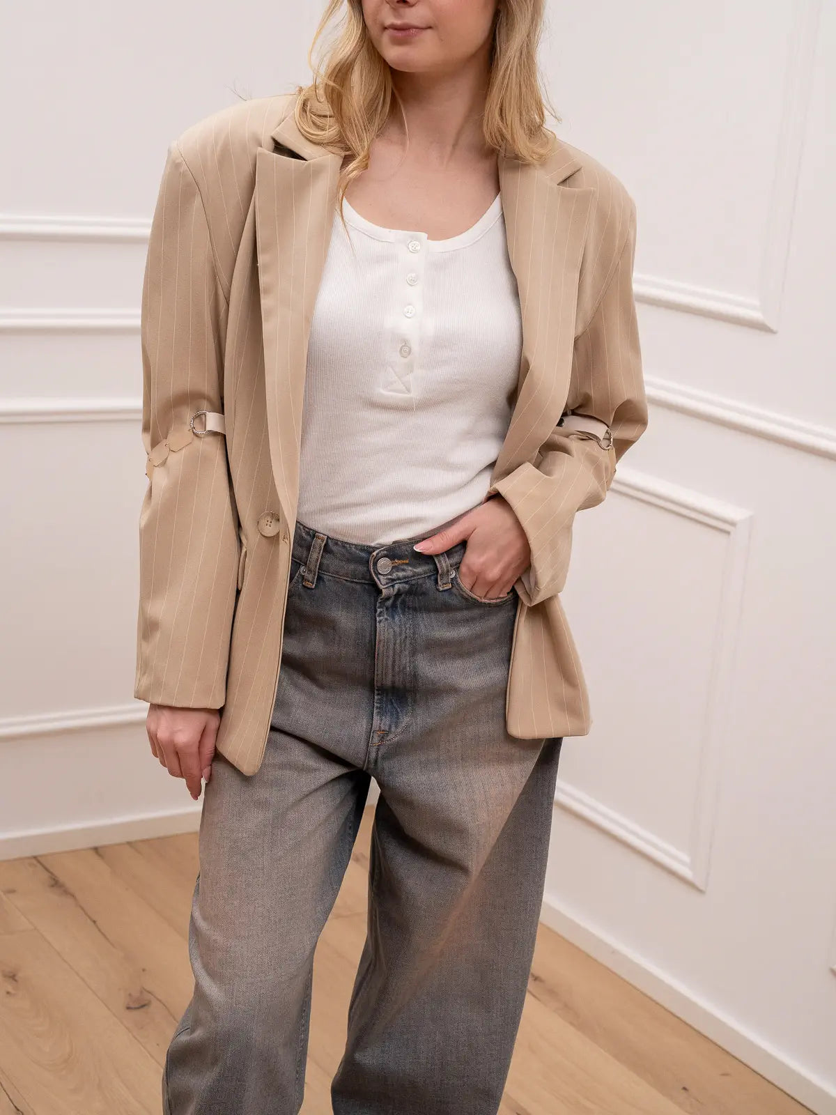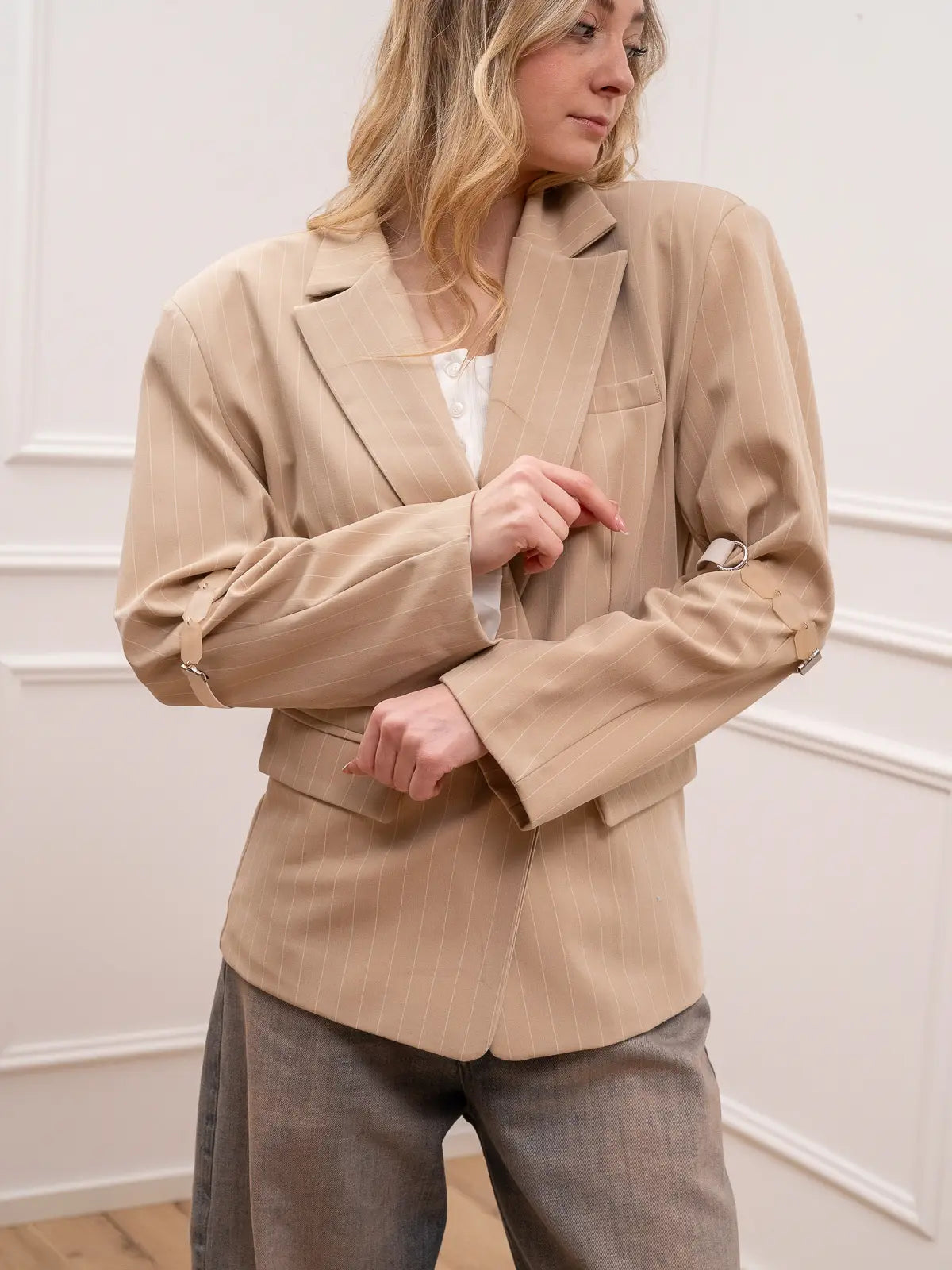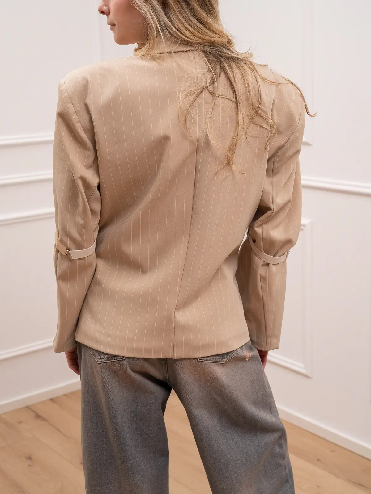 Giacca sabbia gessata dettagli con pietre - HaveOne