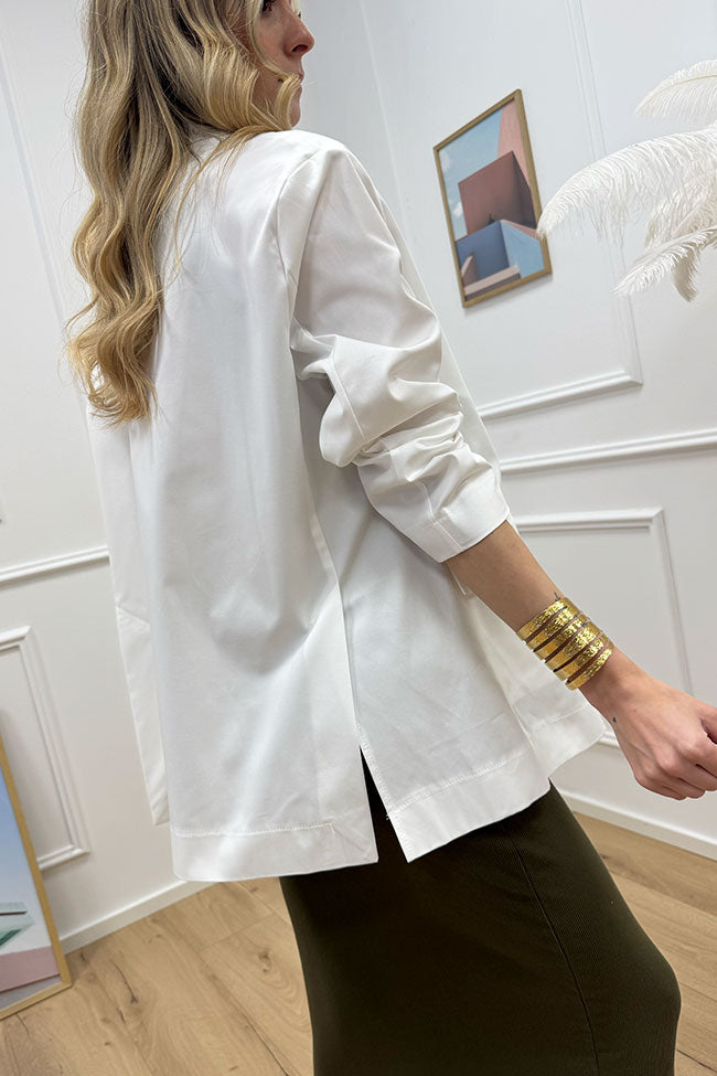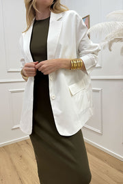 Giacca sfoderata color bianco in cotone Dixie. Modello fit over con chiusura monopetto a due bottoni. Spacchetti laterali e tasche con patta.