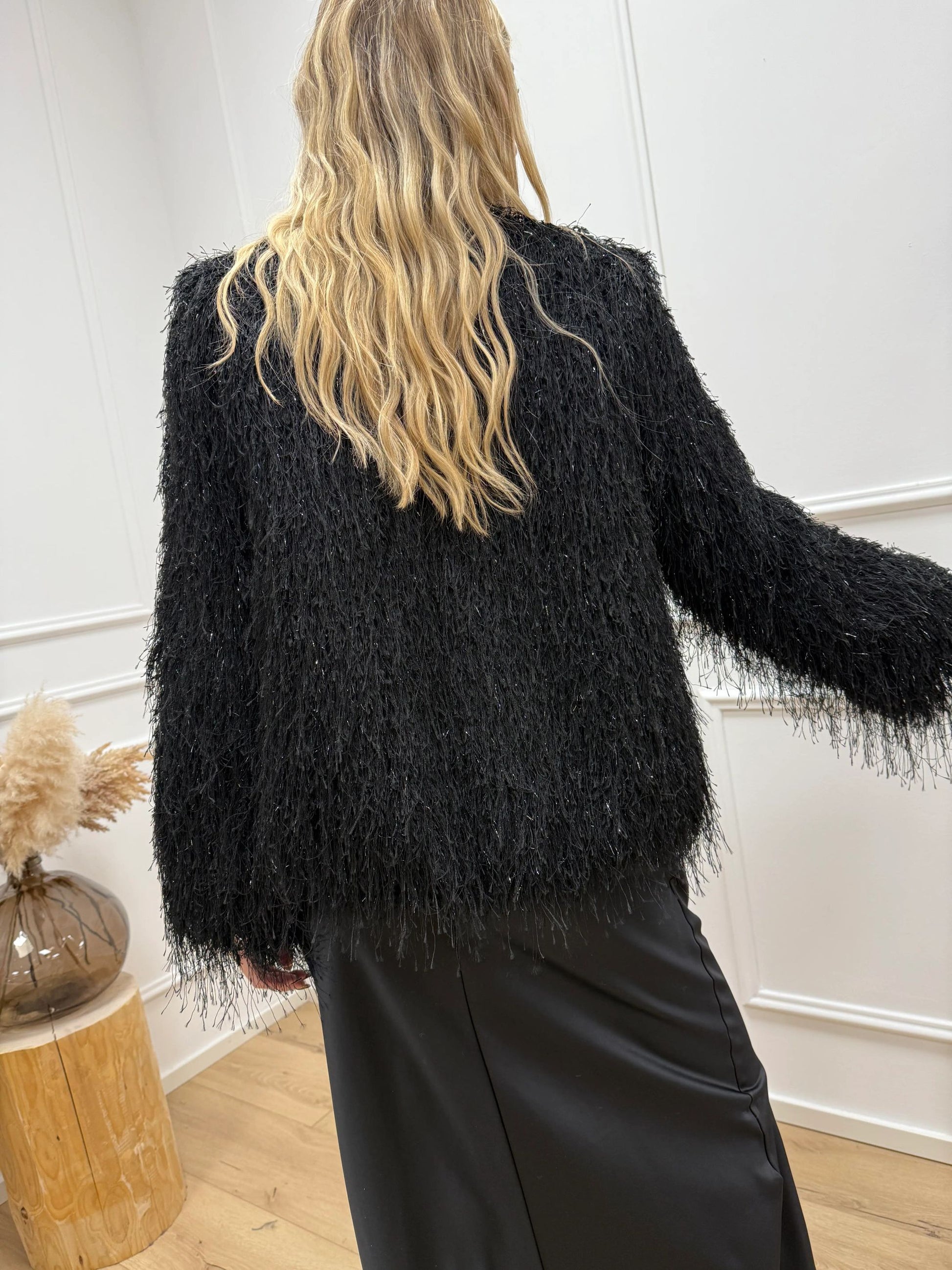 Giacca stile bomber nera con pagliuzze lamè - HaveOne