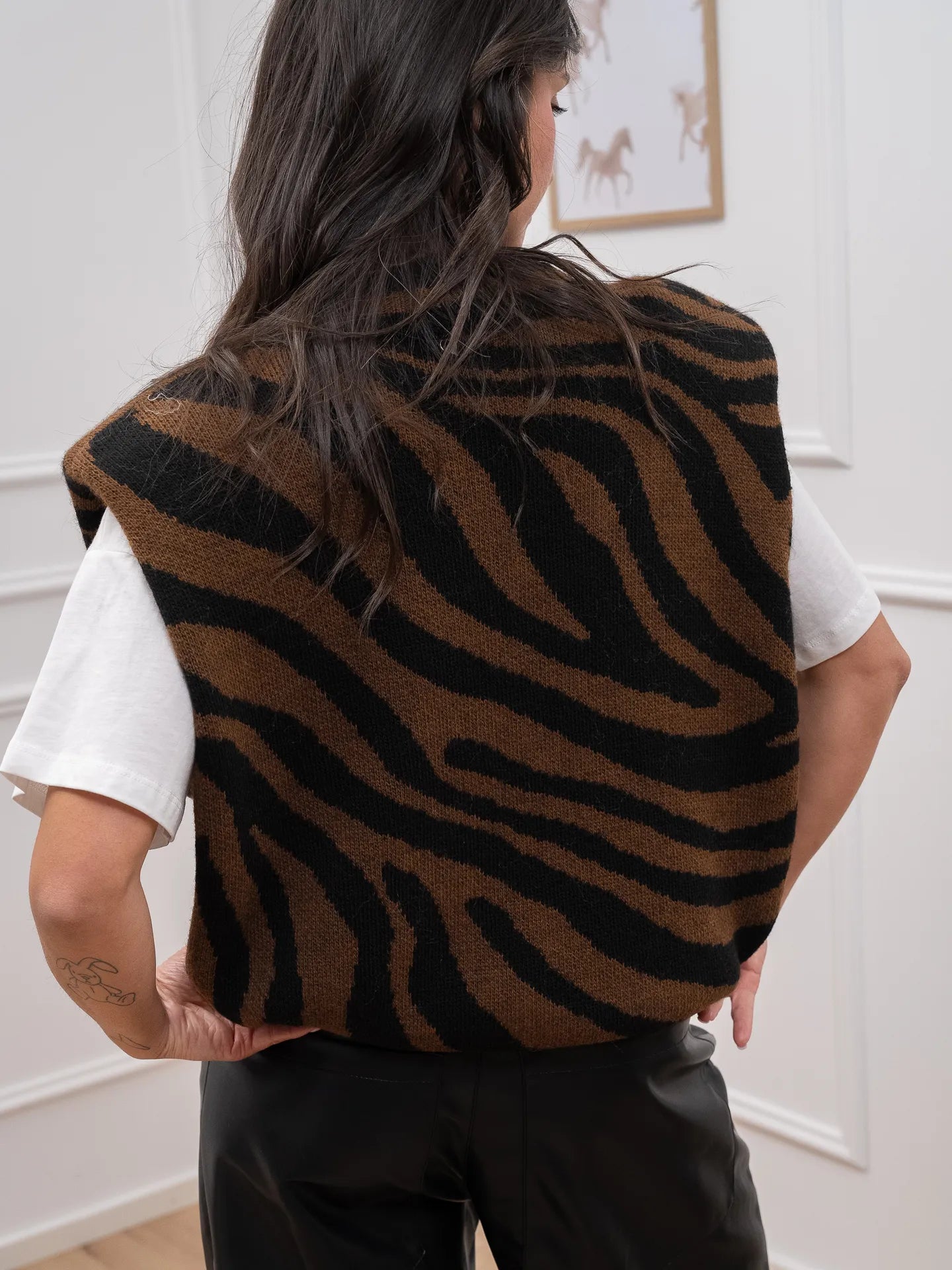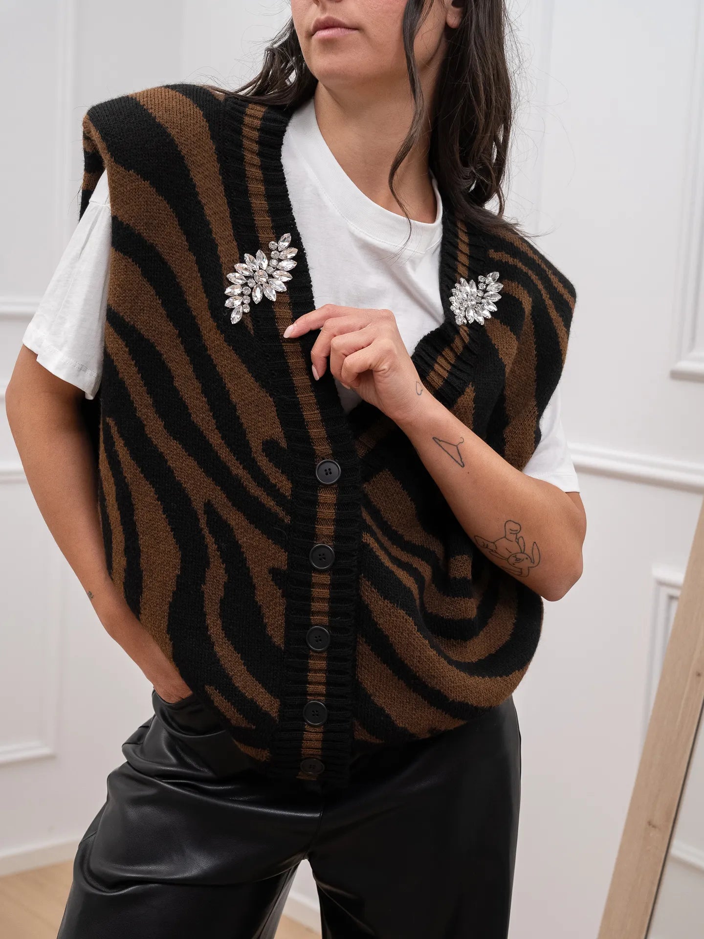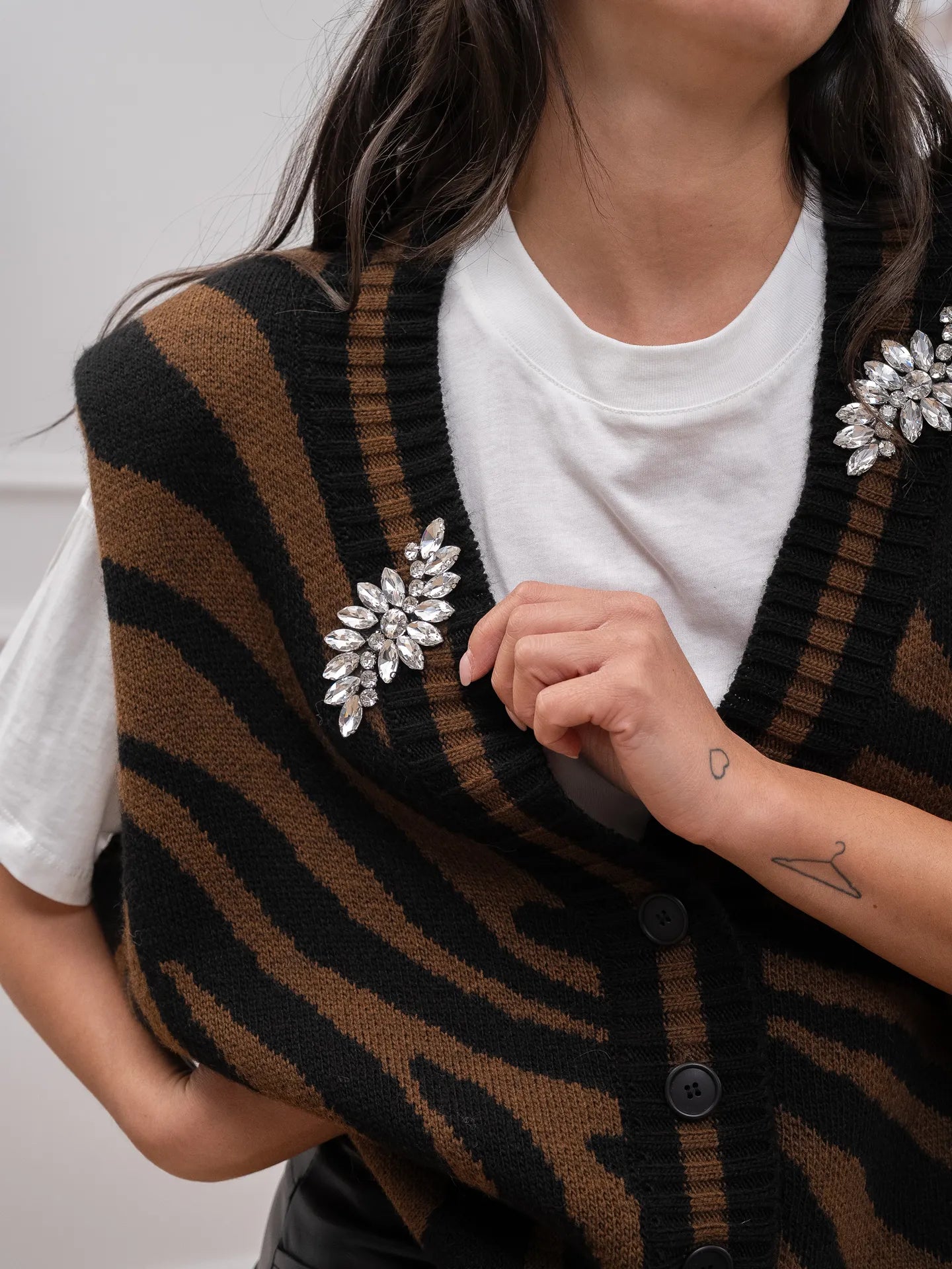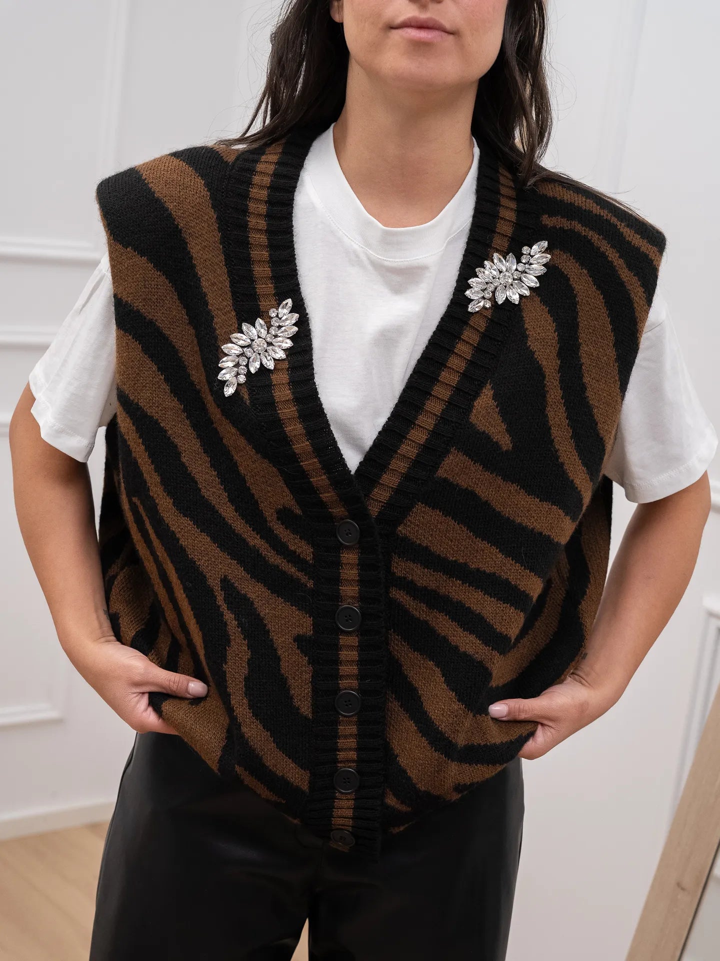 Gilet in maglia choco, nero con cabochon - Dixie
