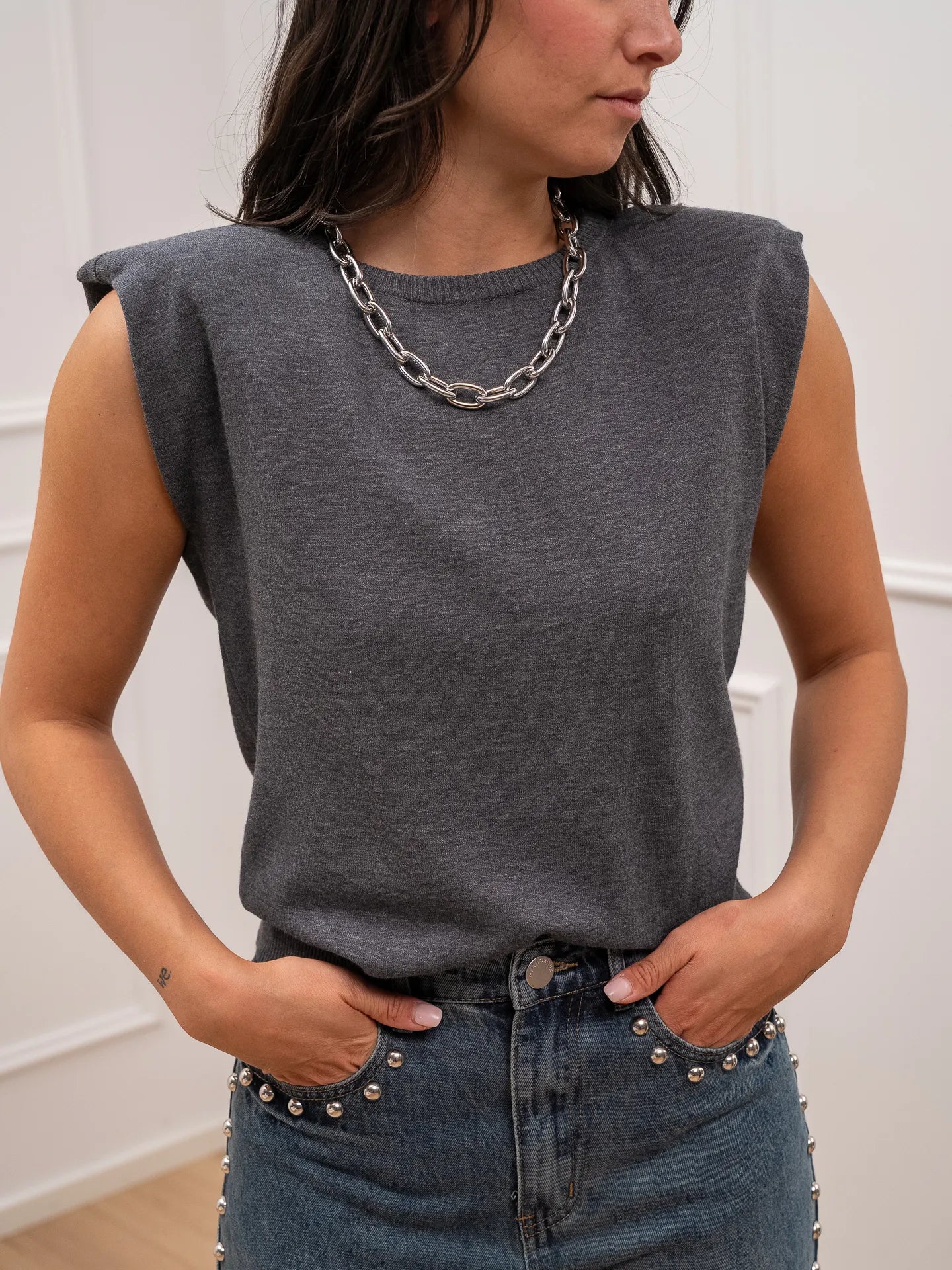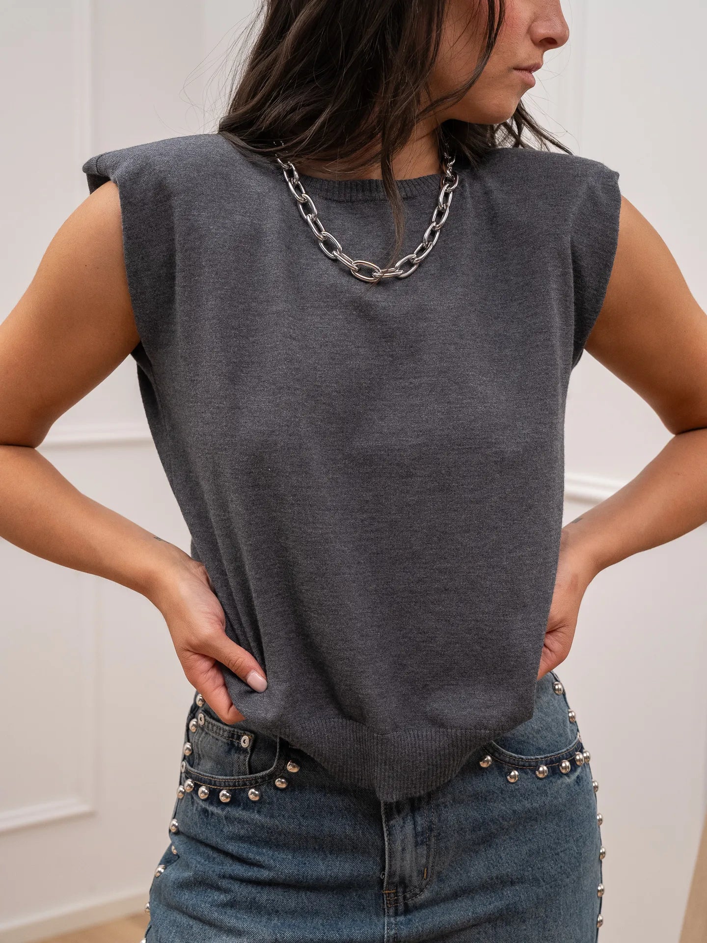 Gilet girocollo grigio spalla imbottita - Vicolo