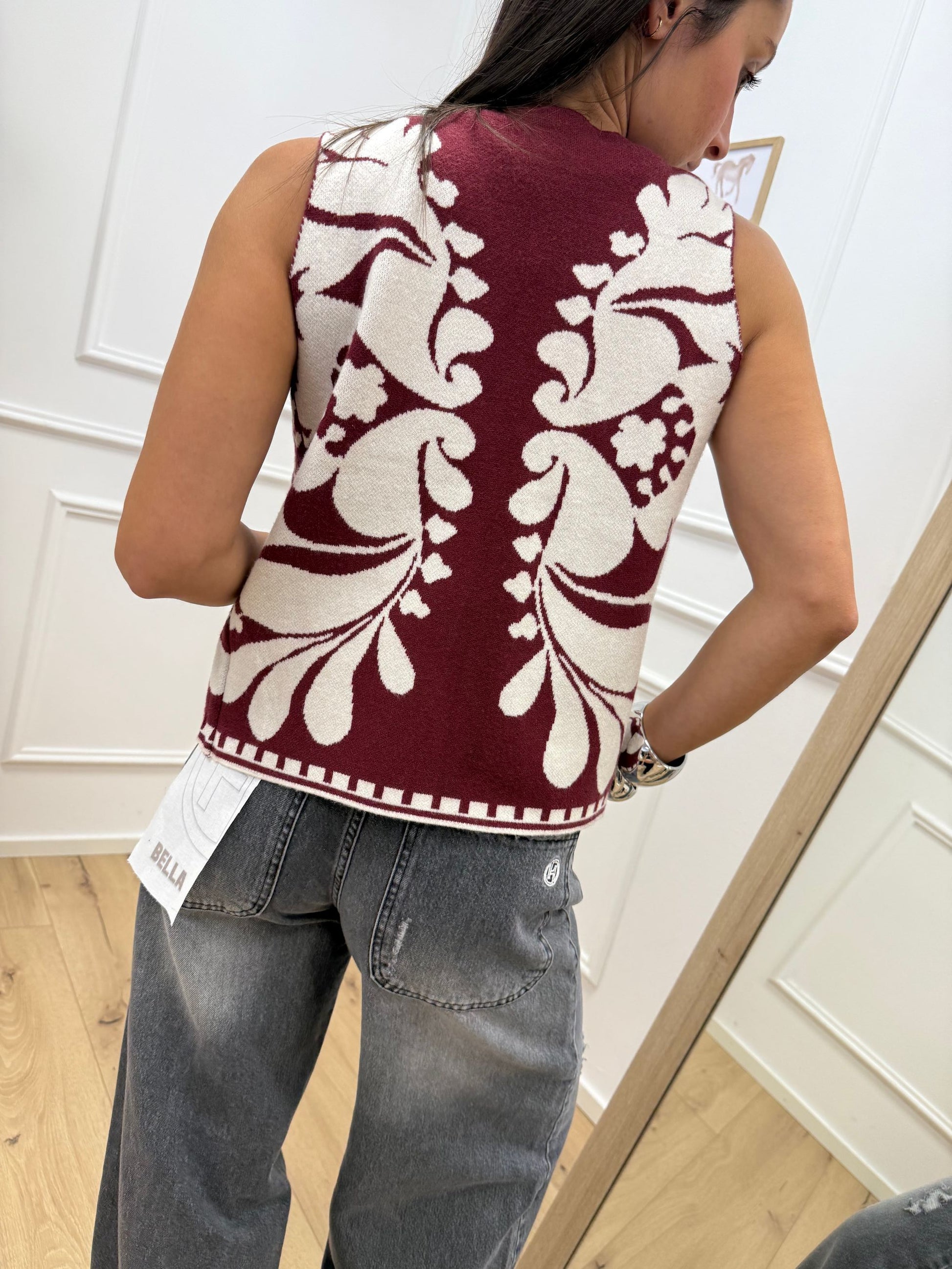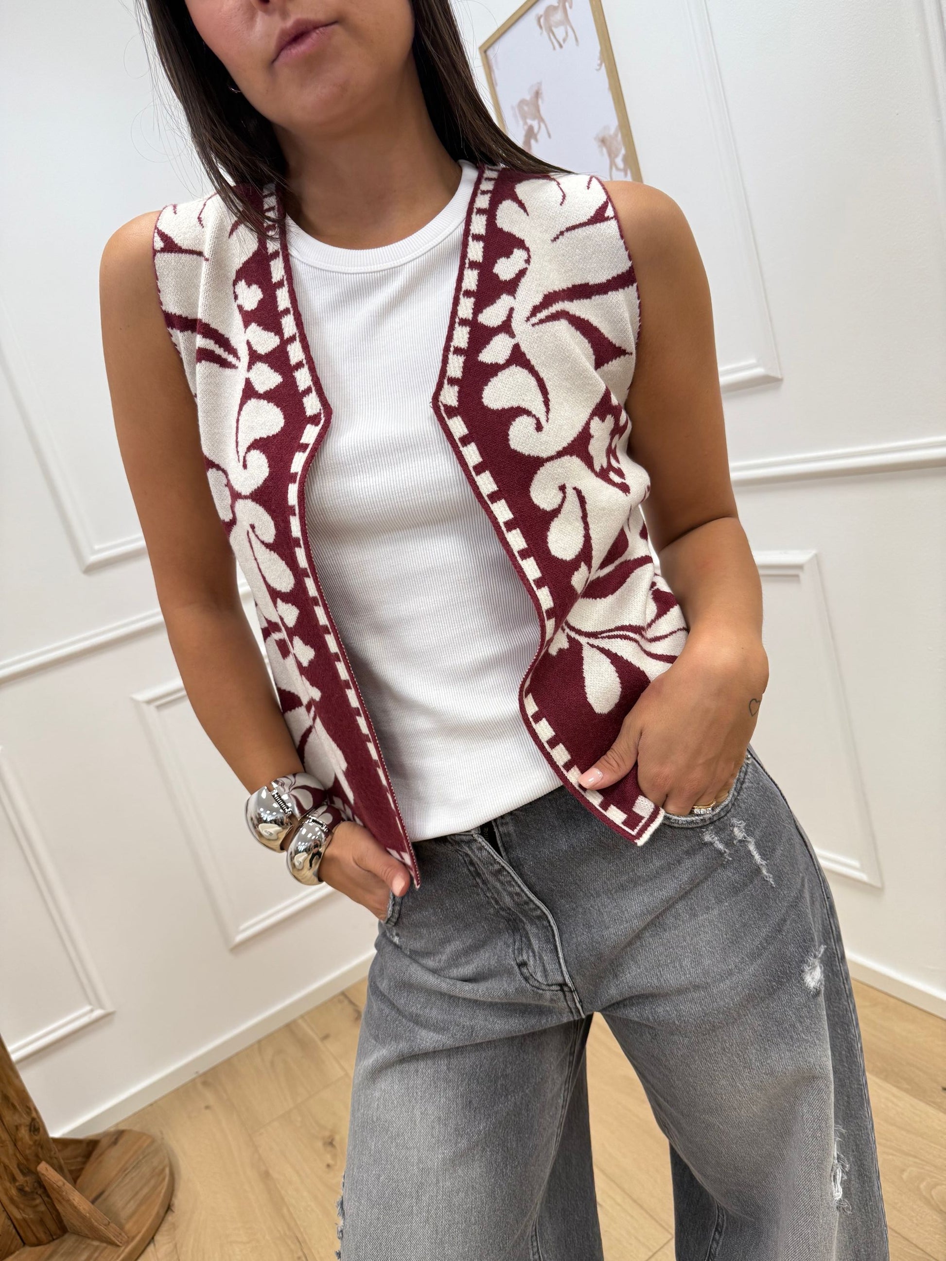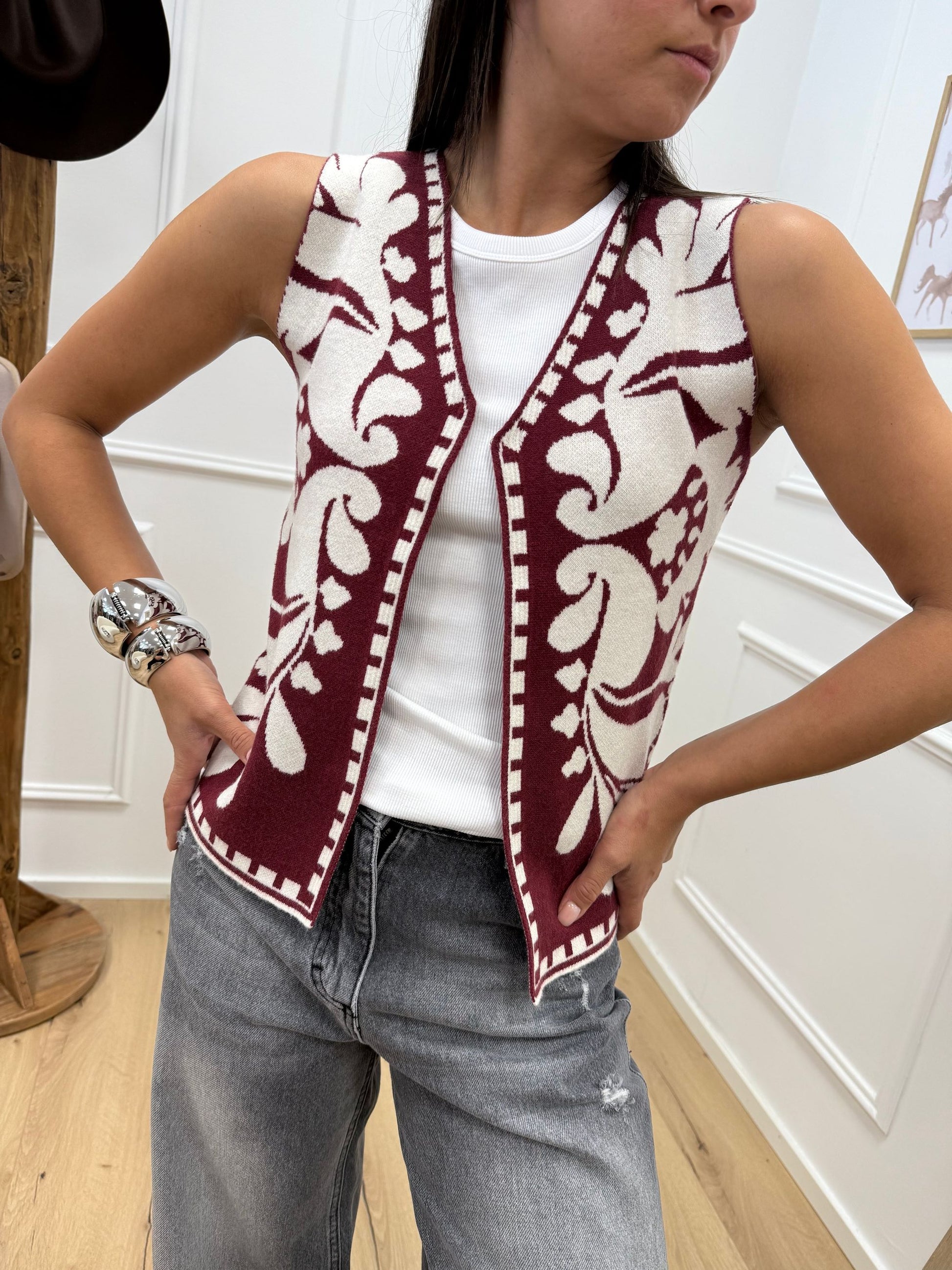 Gilet in maglia panna e bordeaux - HaveOne