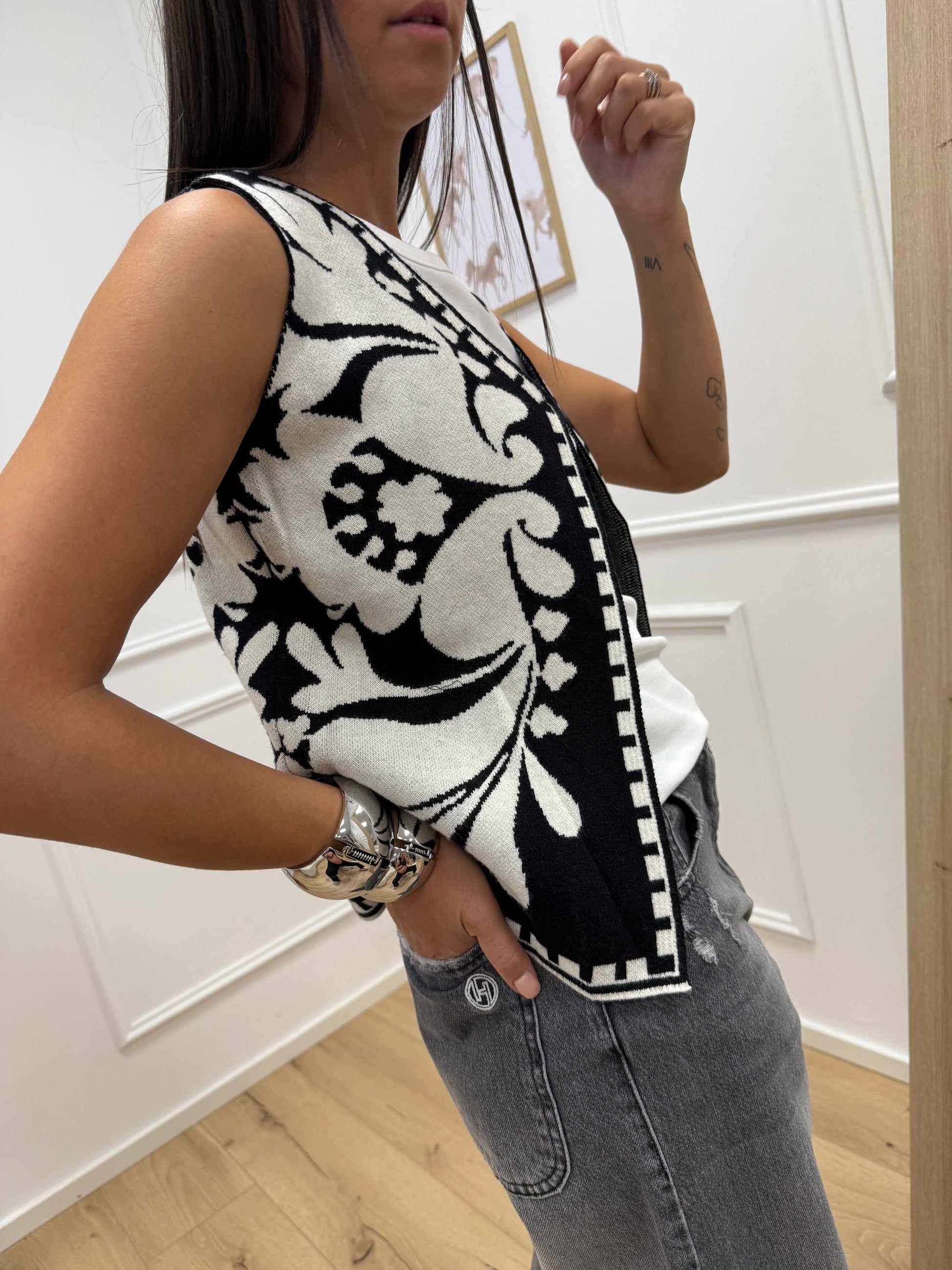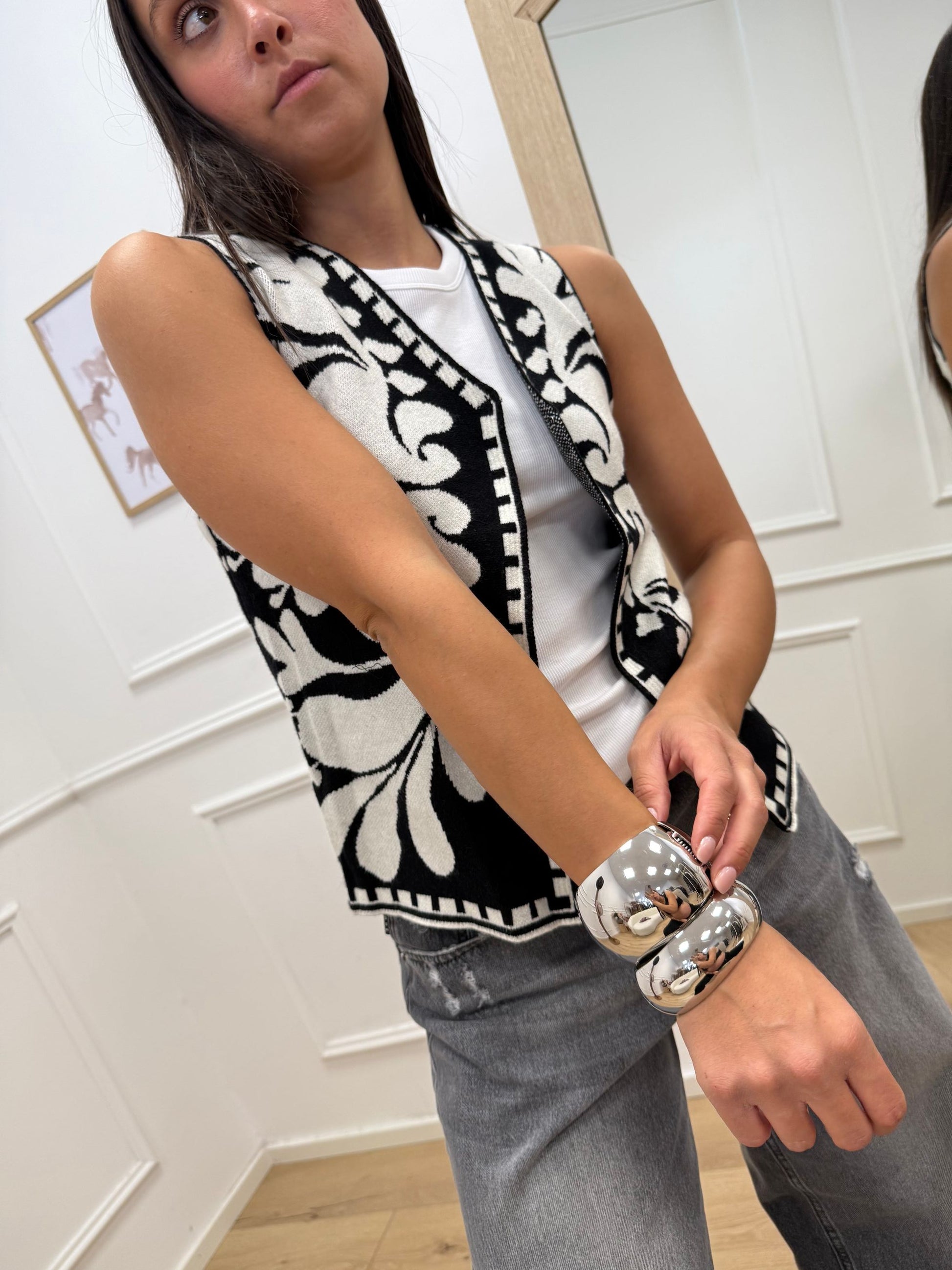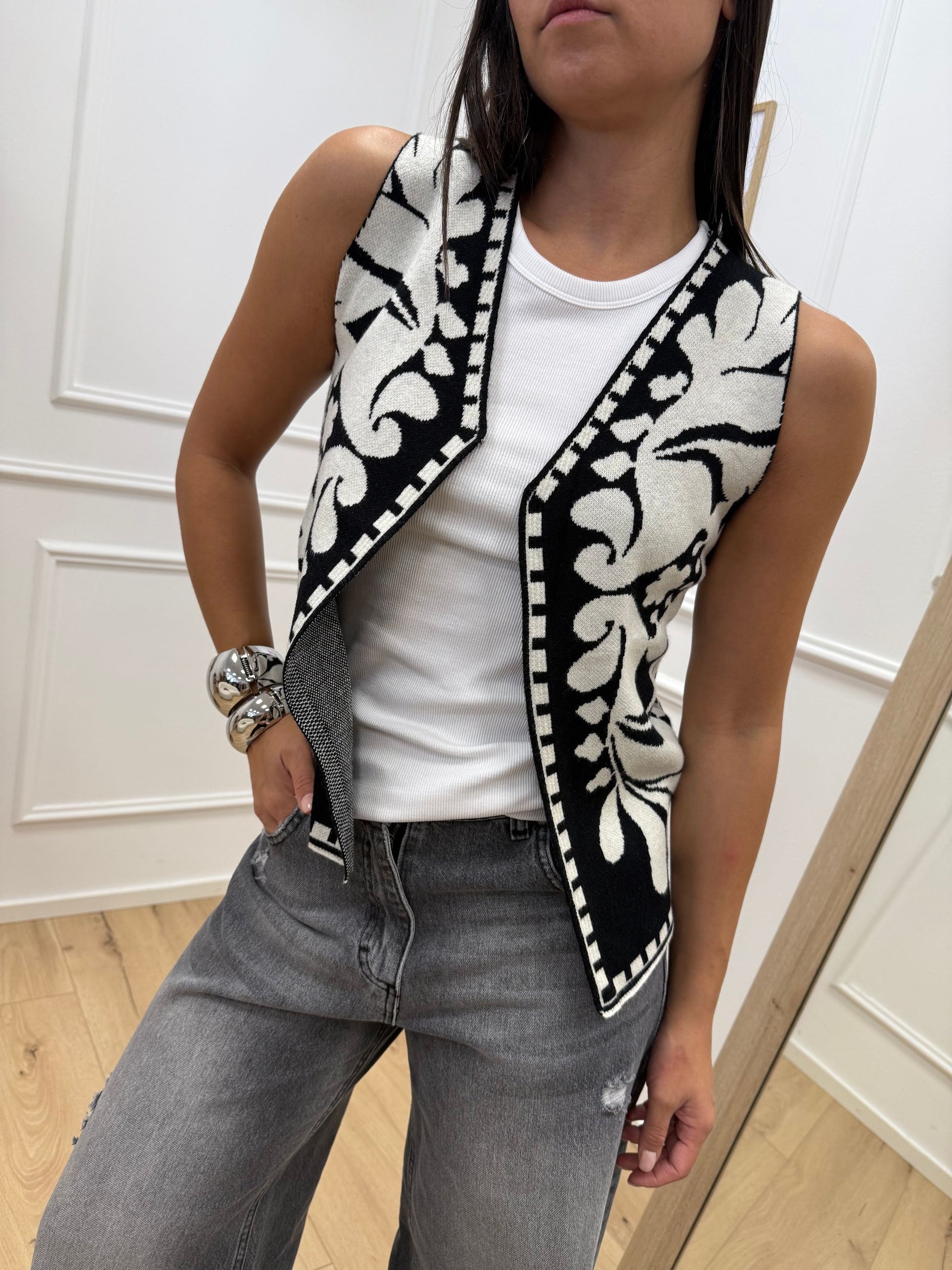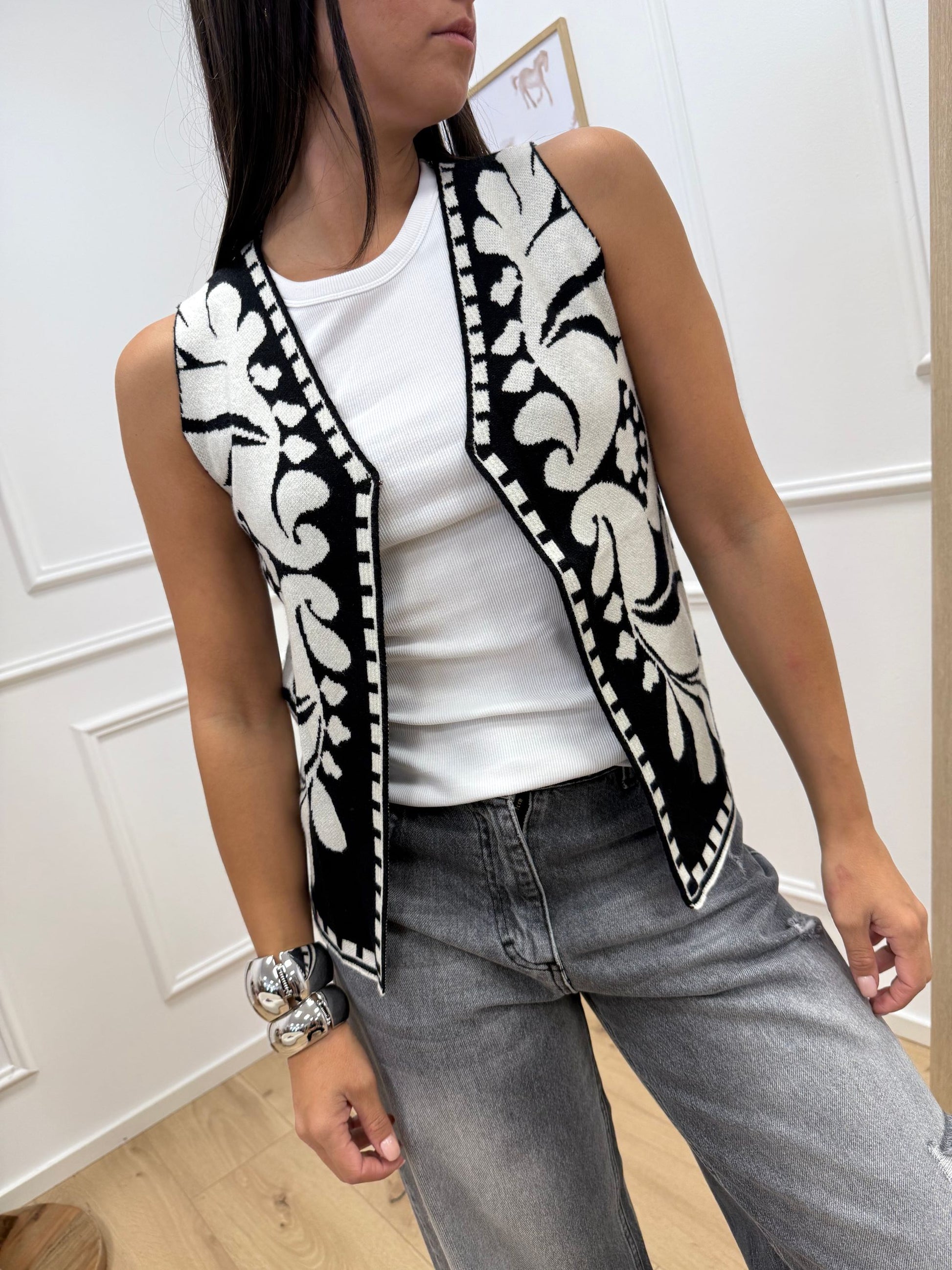 Gilet in maglia panna e nero - HaveOne