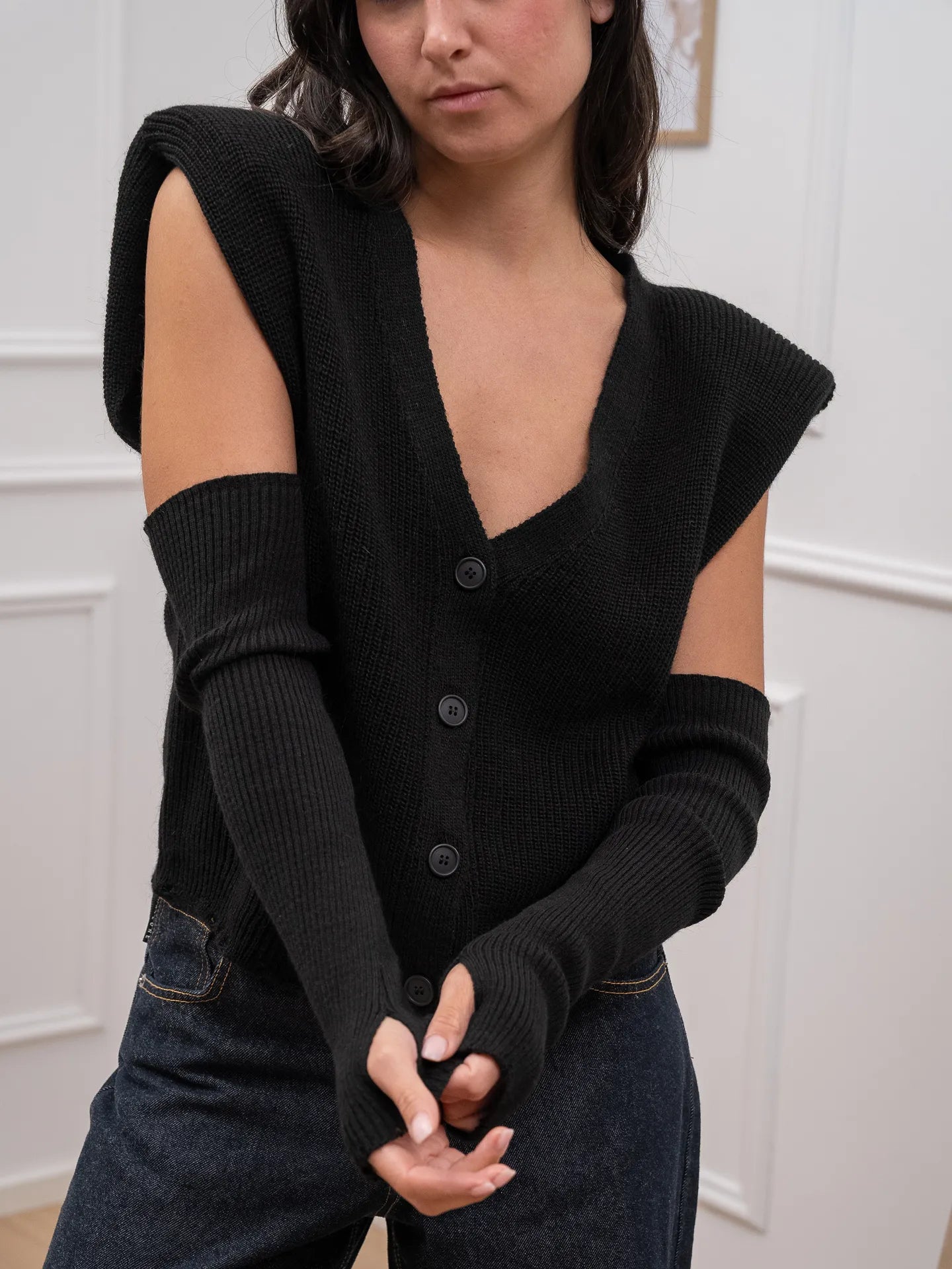 Gilet nero con manicotti - HaveOne