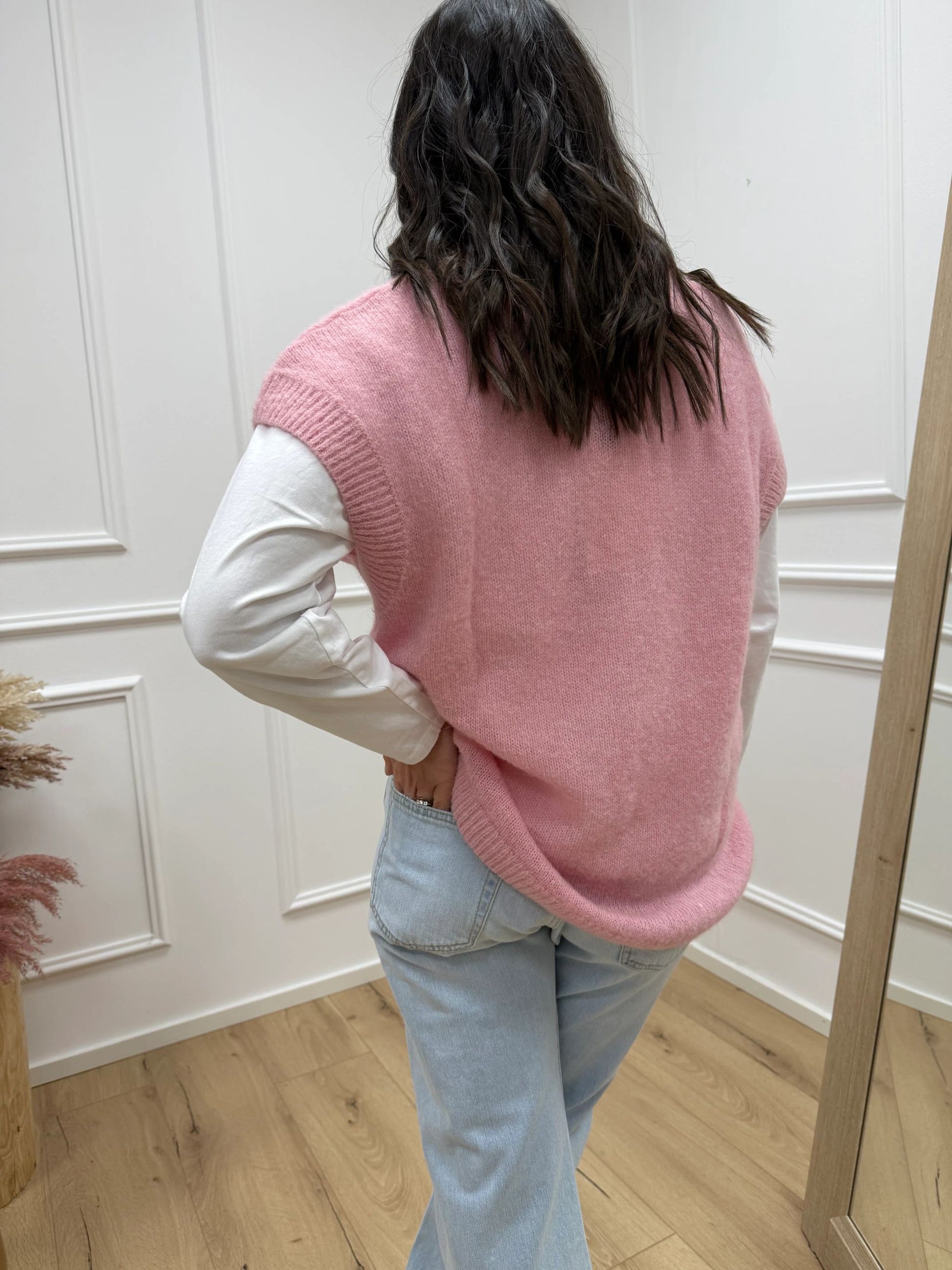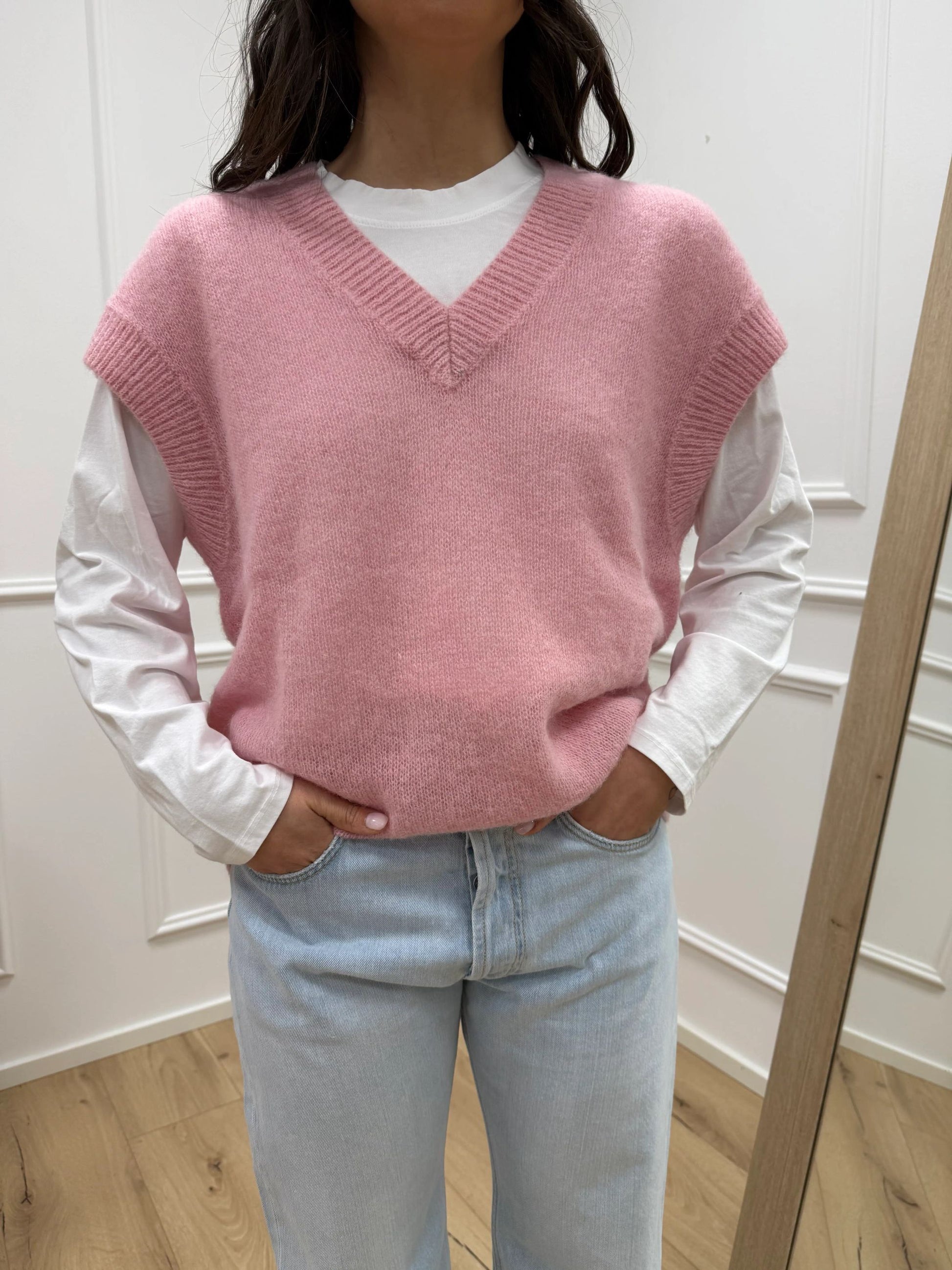 Gilet misto lana color rosa HaveOne. Modello fit morbido con scollo e finiture a coste.