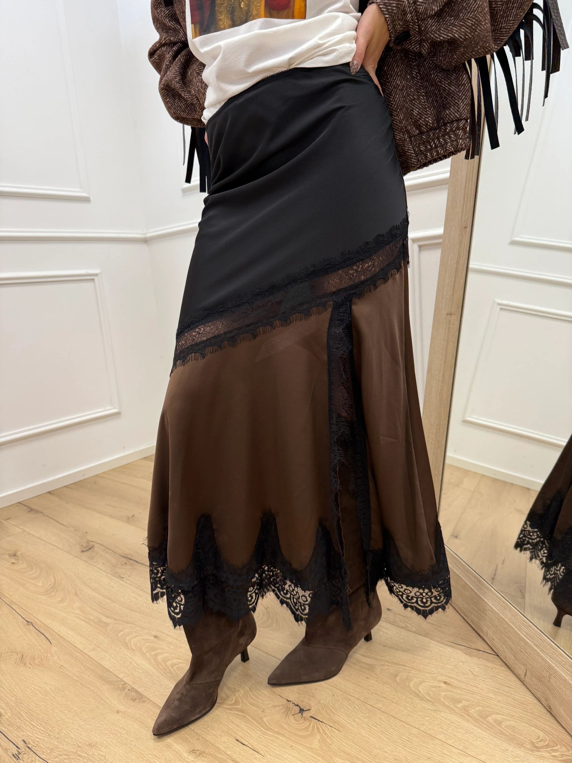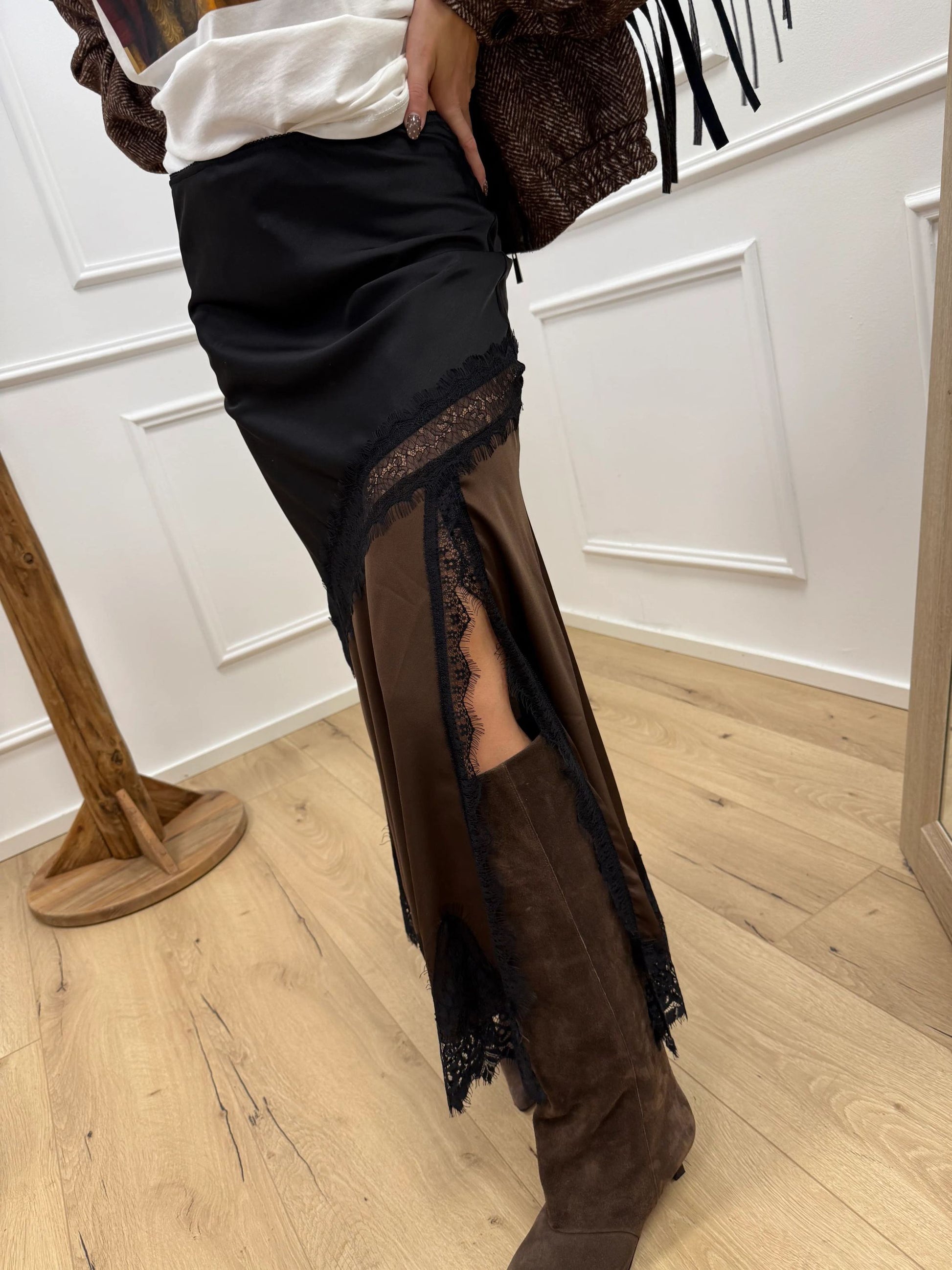 Gonna bicolor nera, moro con pizzo - Vicolo