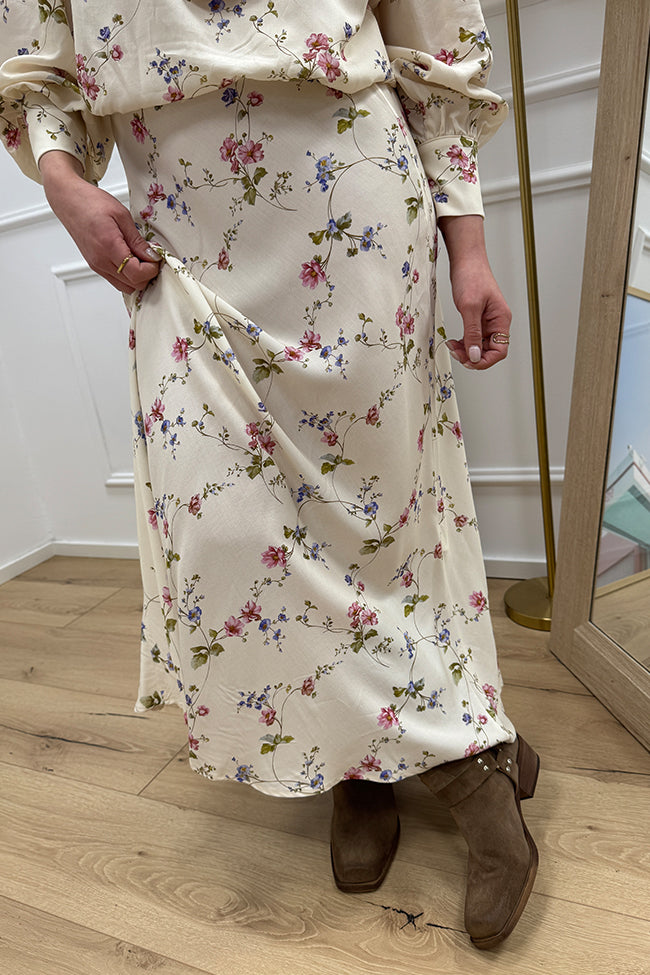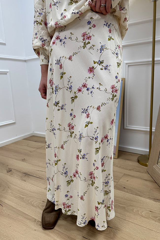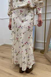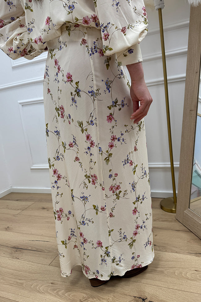 Gonna burro fiorellini taglio sbieco in satin - HaveOne