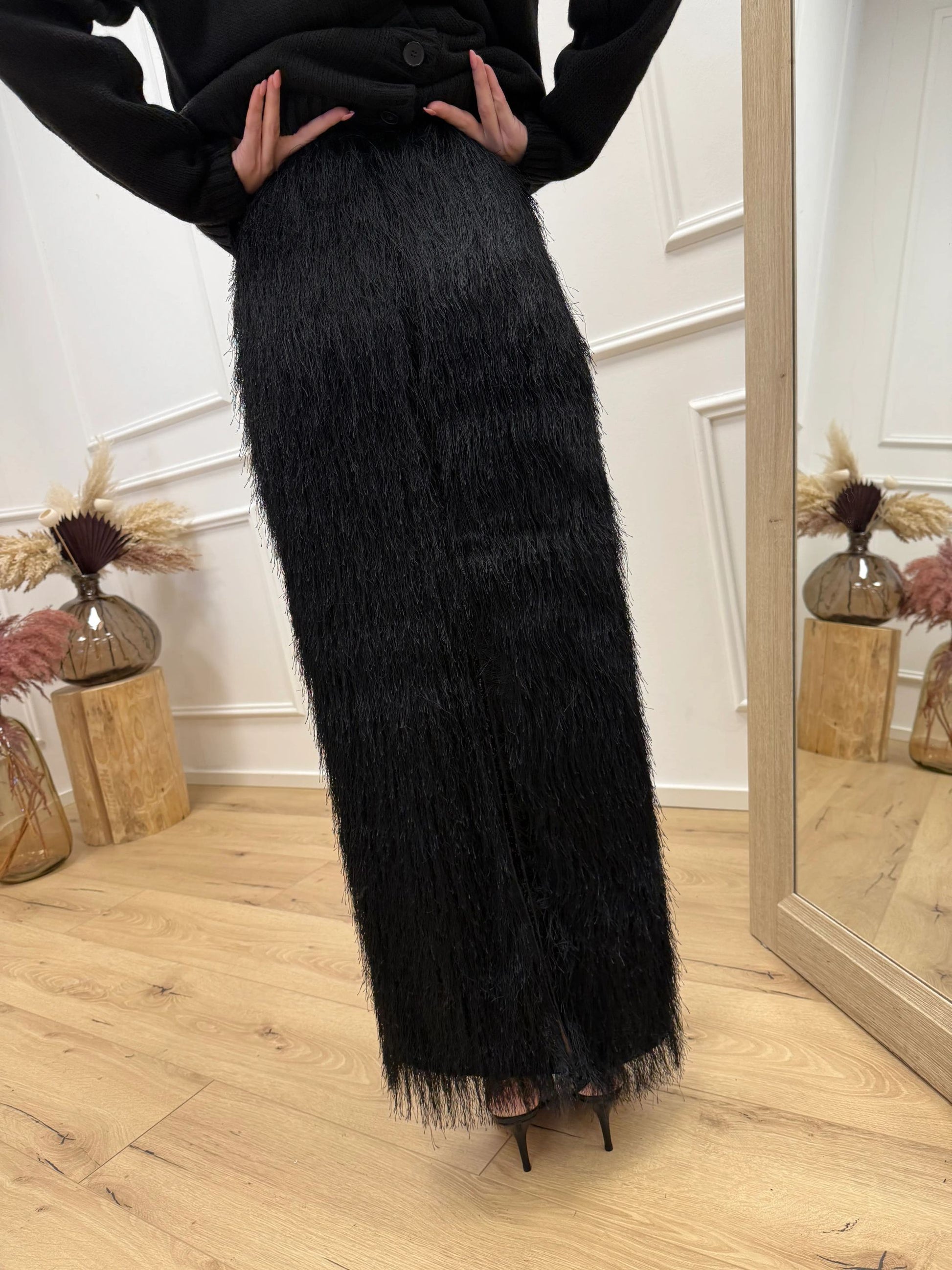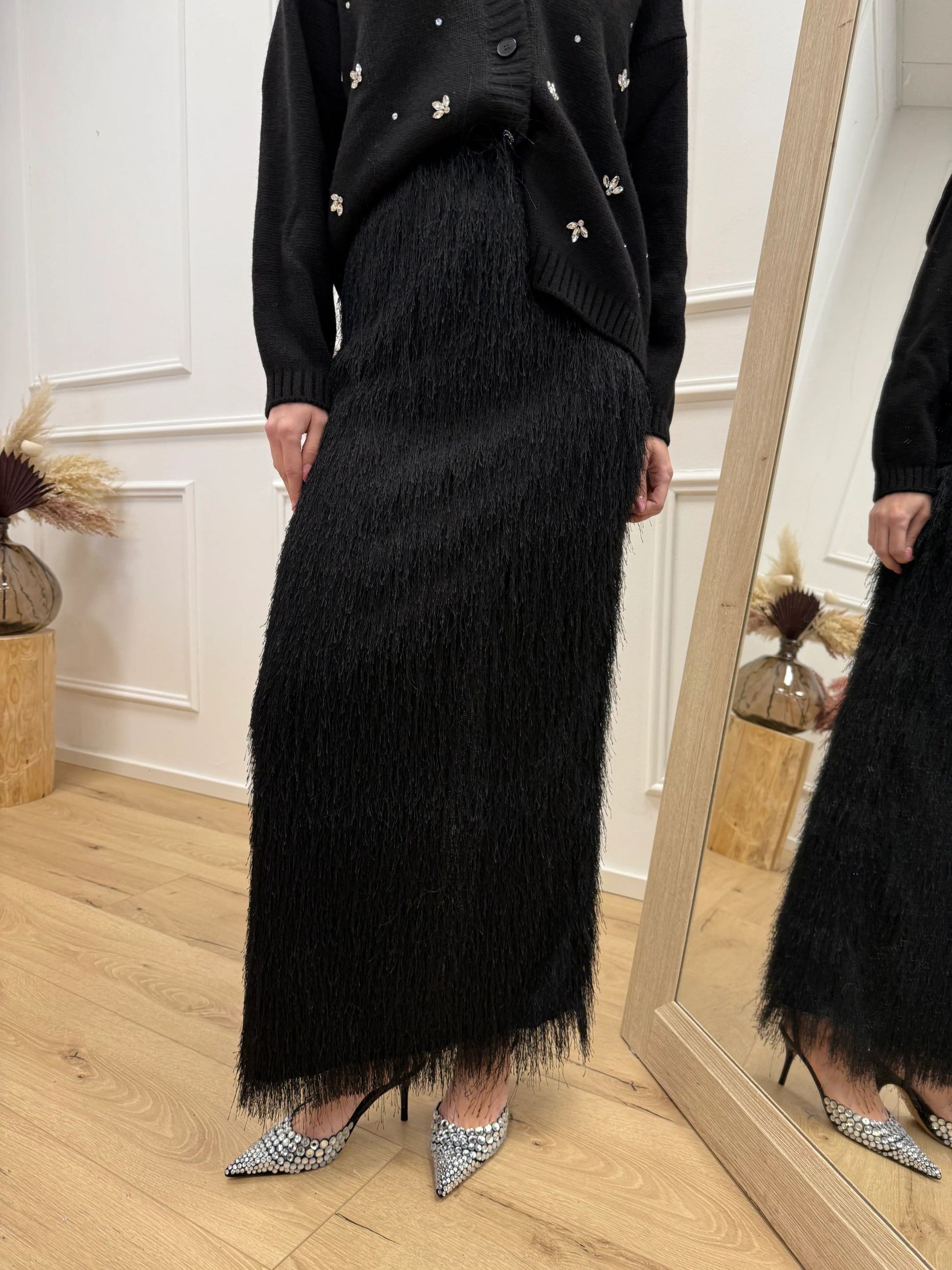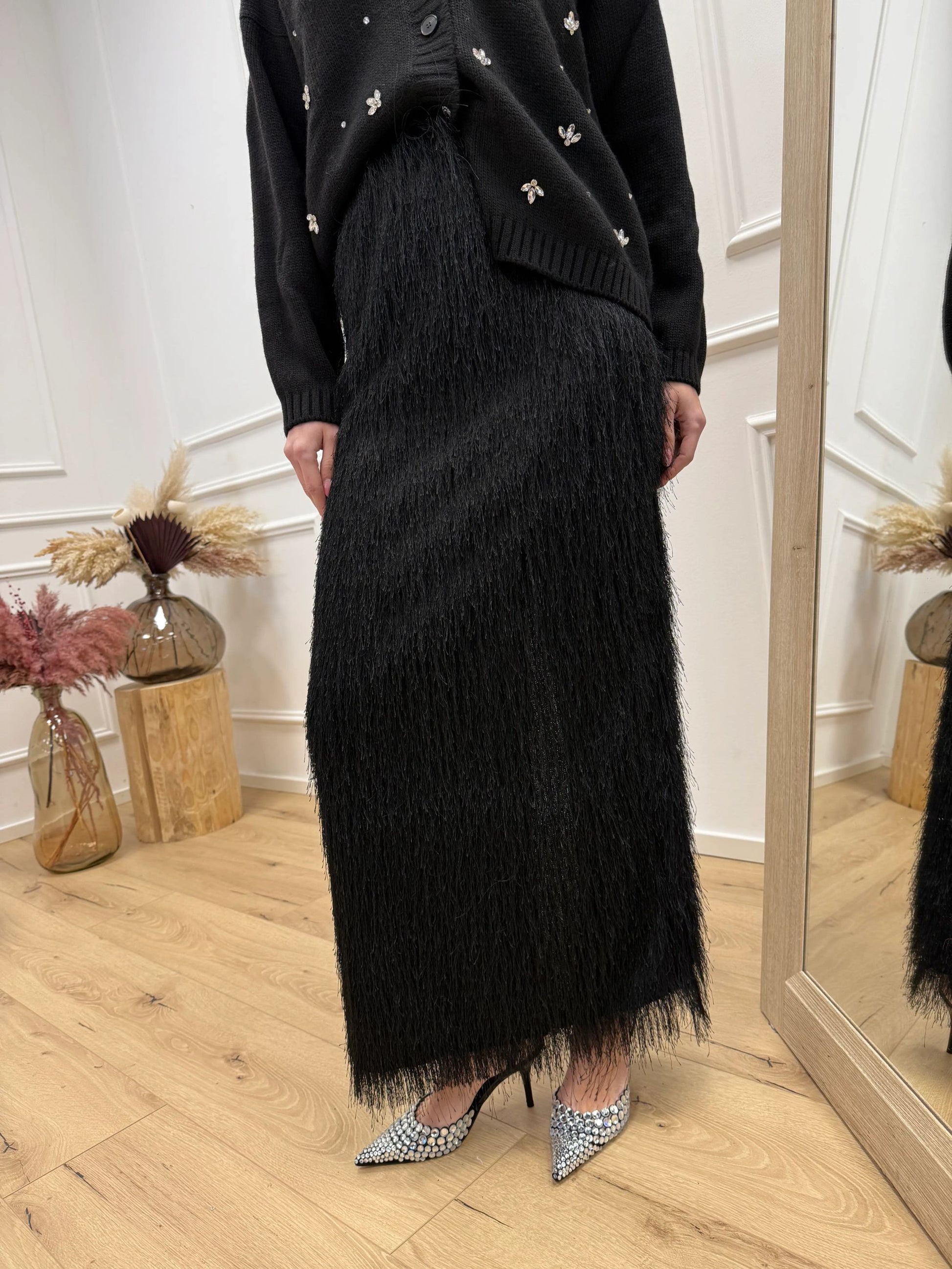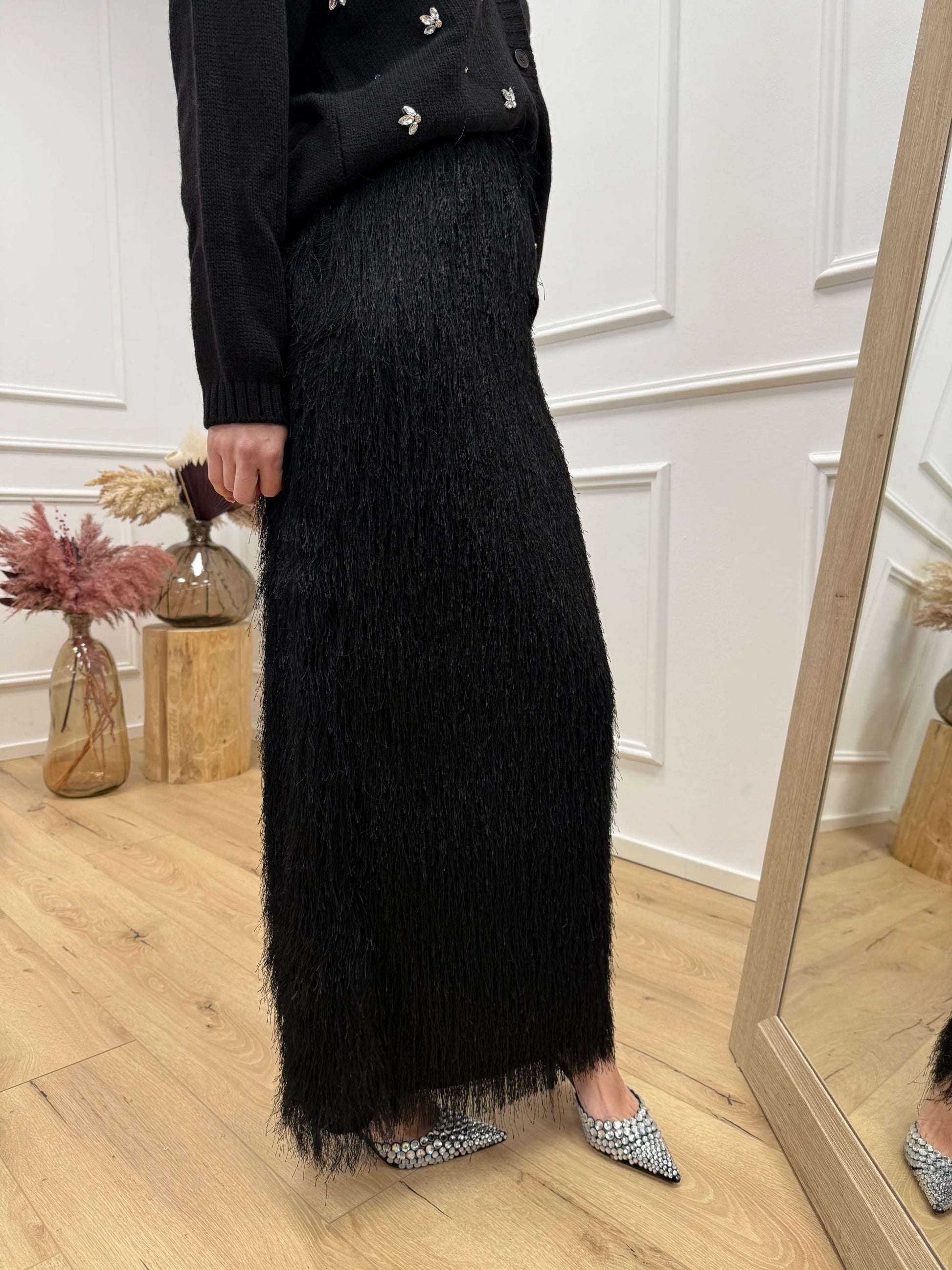 Gonna Charleston color nero HaveOne. Modello lungo a vita alta elasticizzata. Dettaglio di spacco sul retro.