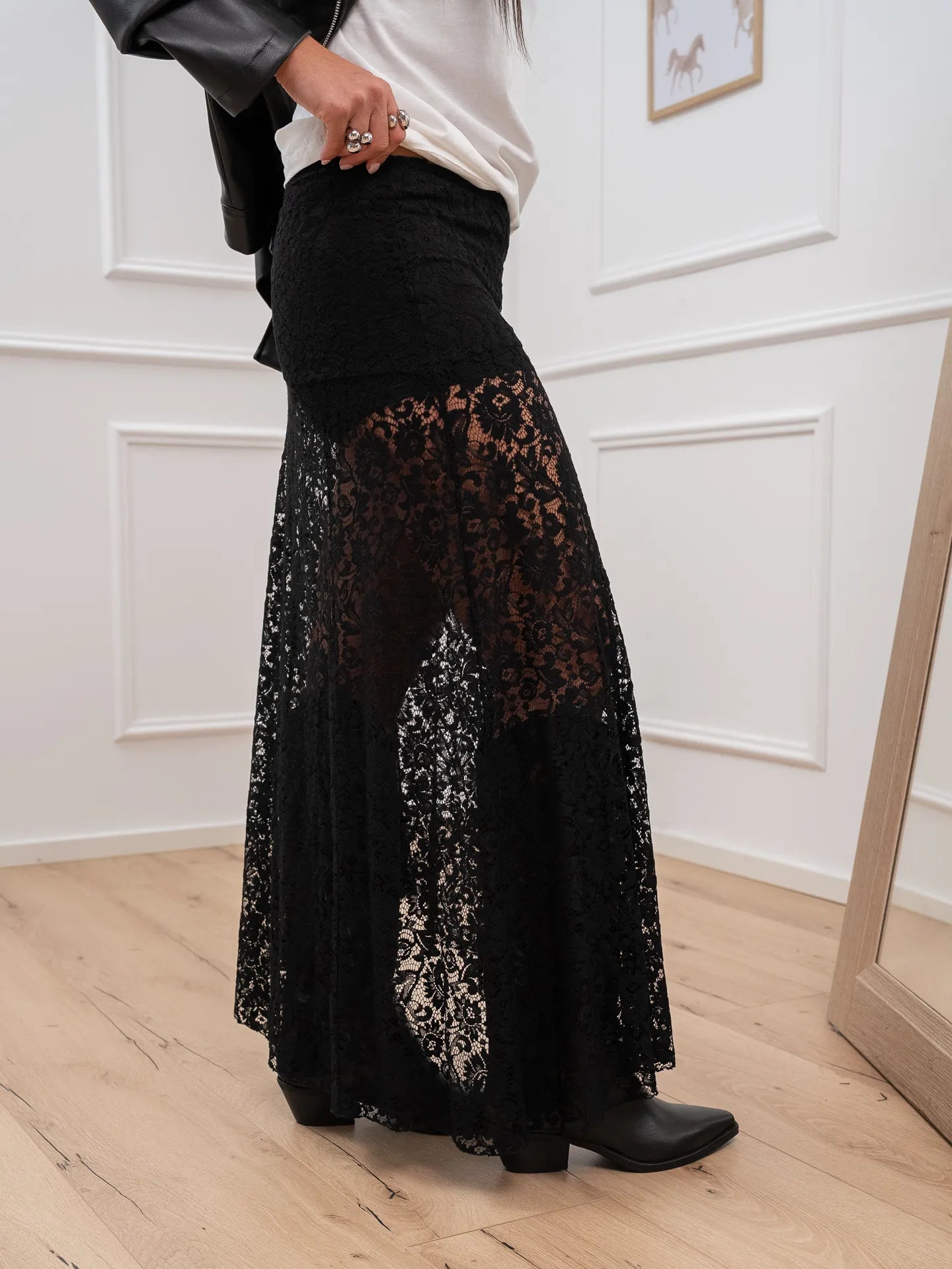 Gonna in pizzo nera obliqua - Vicolo