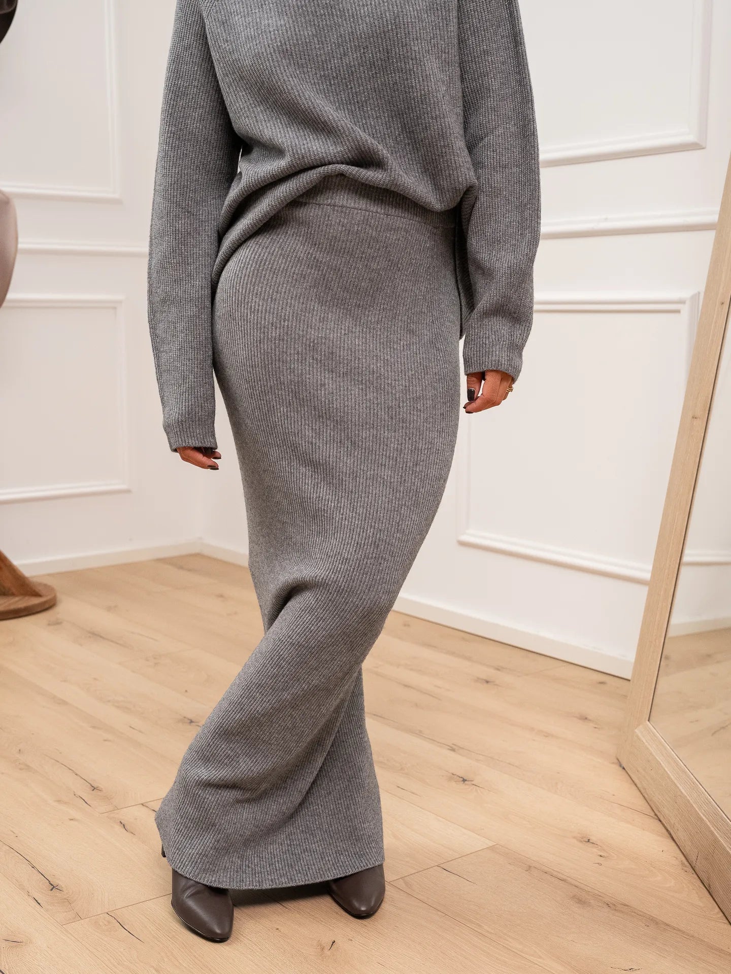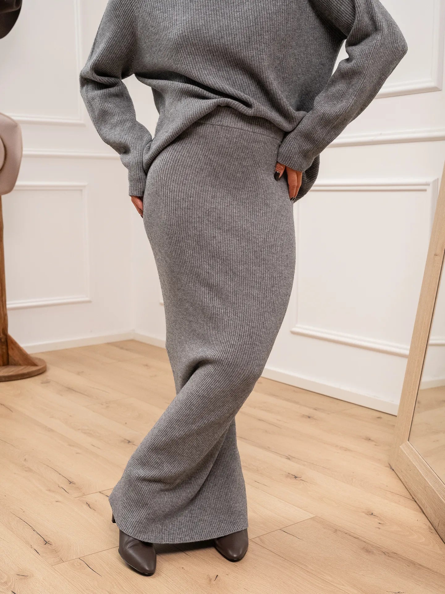 Gonna taglio longuette color grigio Kontatto. Modello vita alta con elastico in vita elasticizzata.