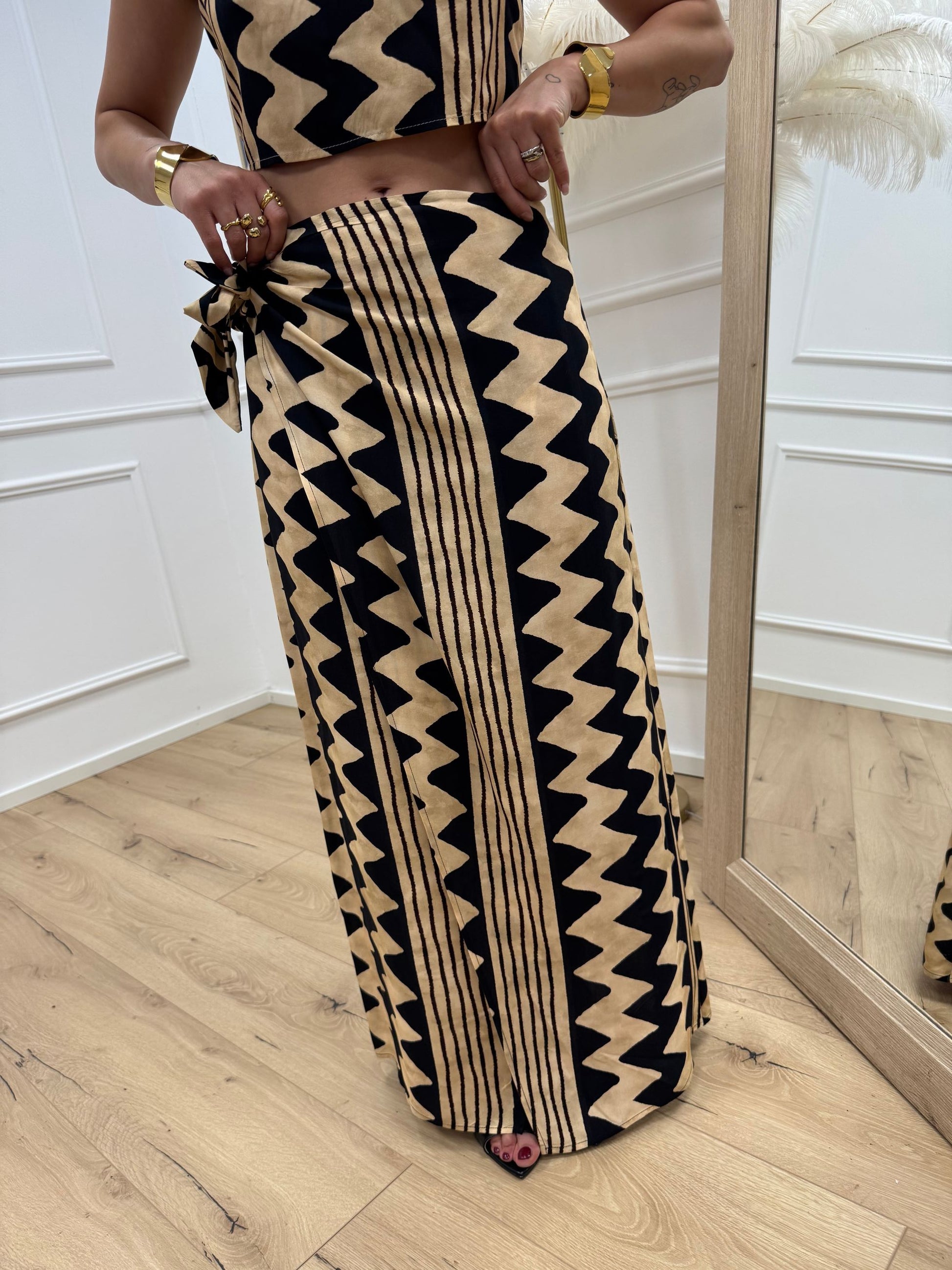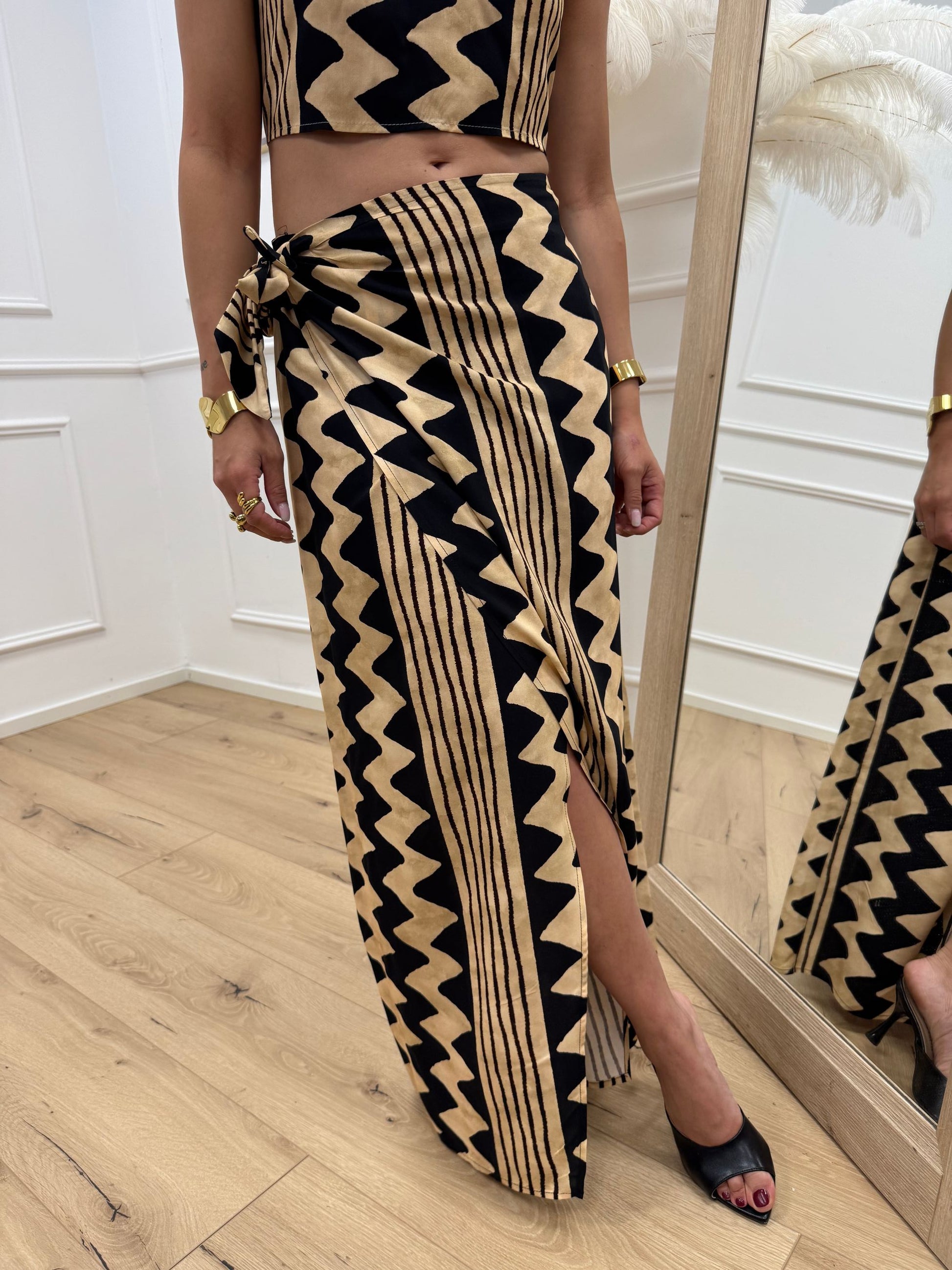 Gonna fantasia Etnic Vibes HaveOne. Modello lungo stile pareo con doppia chiusura con laccetti. Fit regolare.