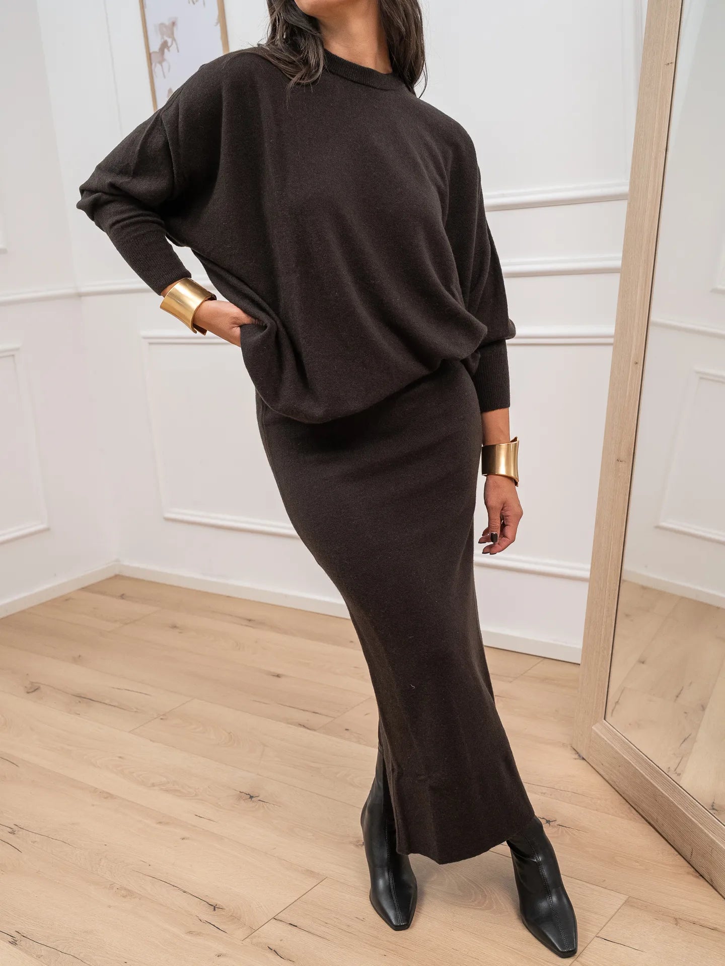 Gonna lunga fondente misto cashmere - Vicolo