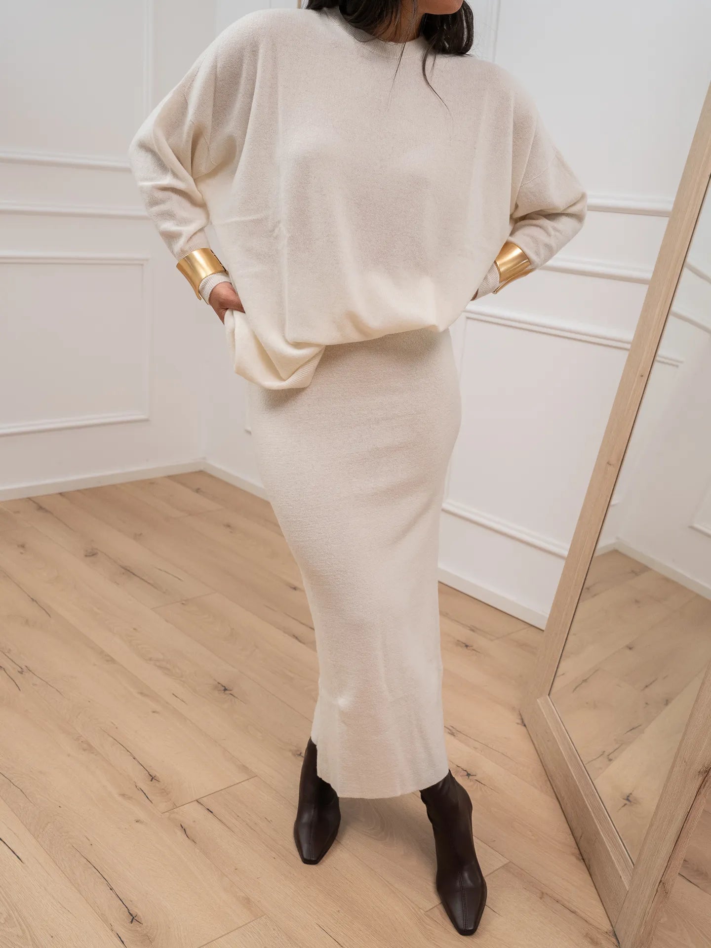 Gonna color panna misto cashmere Vicolo. Modello lungo a vita alta elasticizzata. Spacco posteriore.