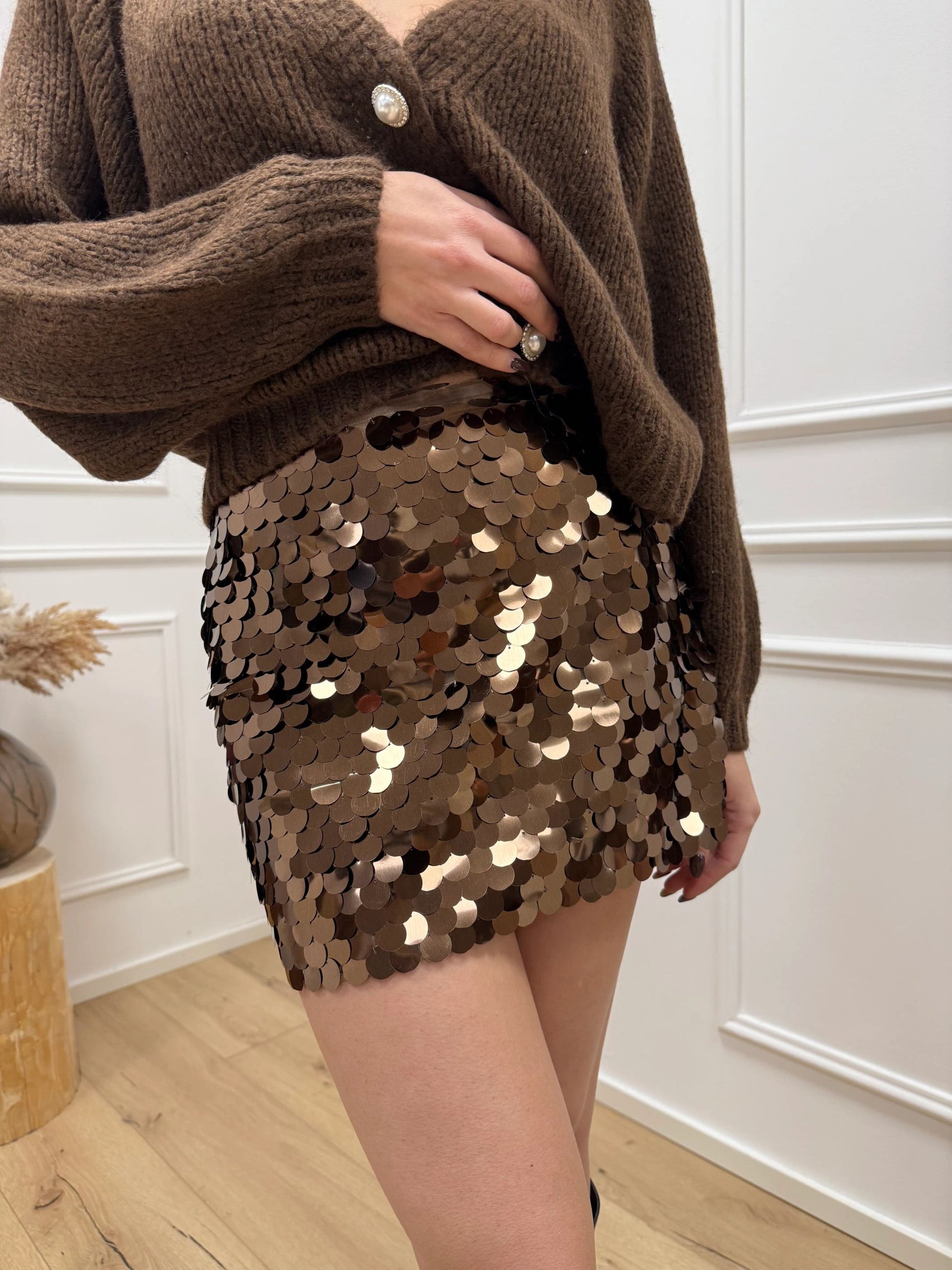 Gonna color moka con maxi paillettes Glamorous. Modello mini a vita alta con chiusura zip laterale.