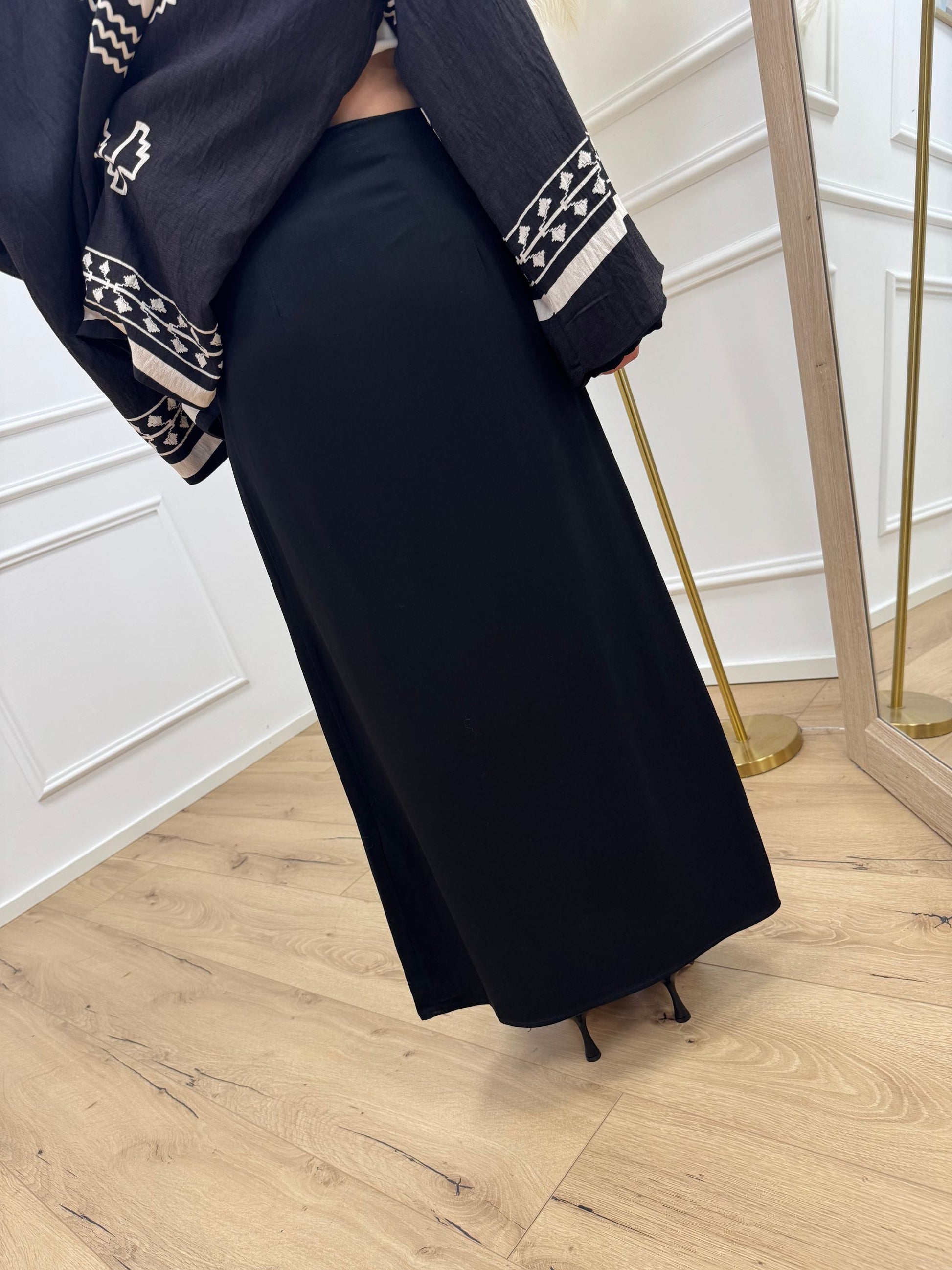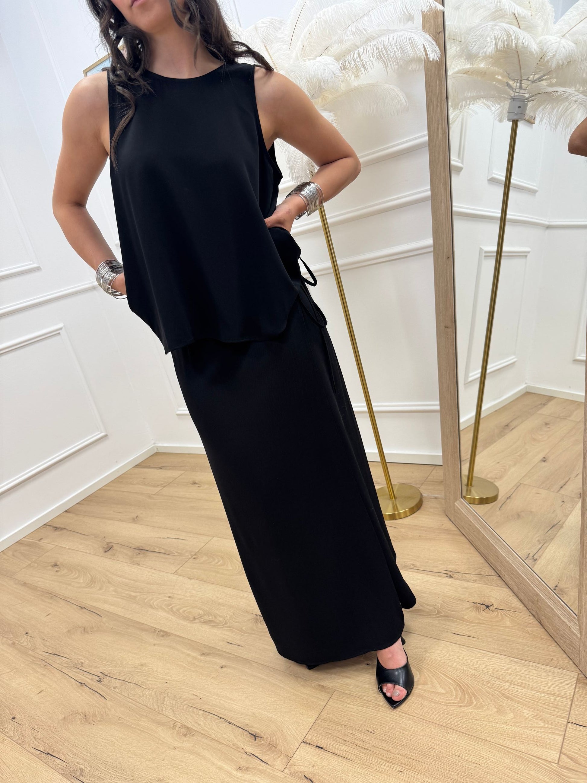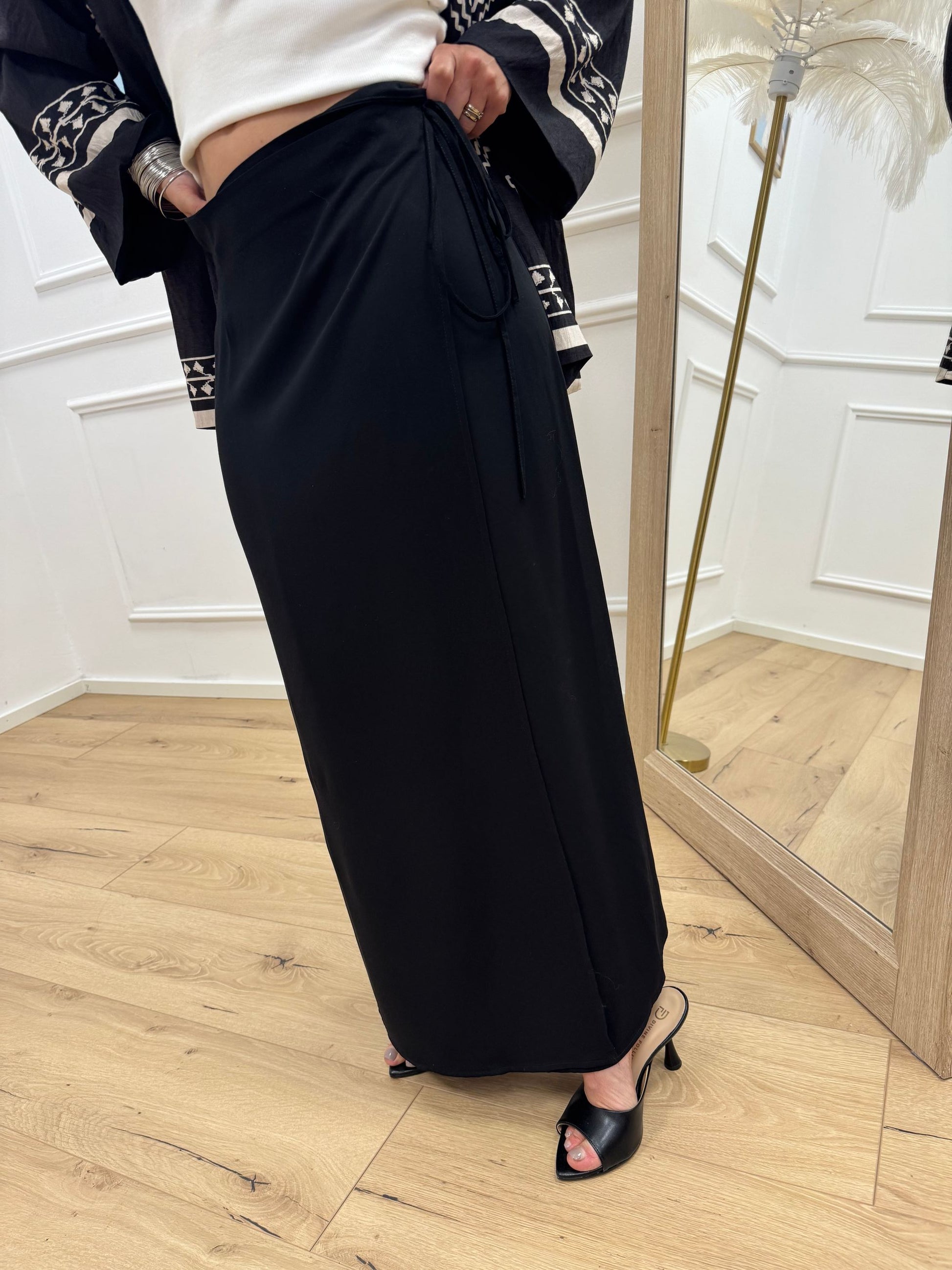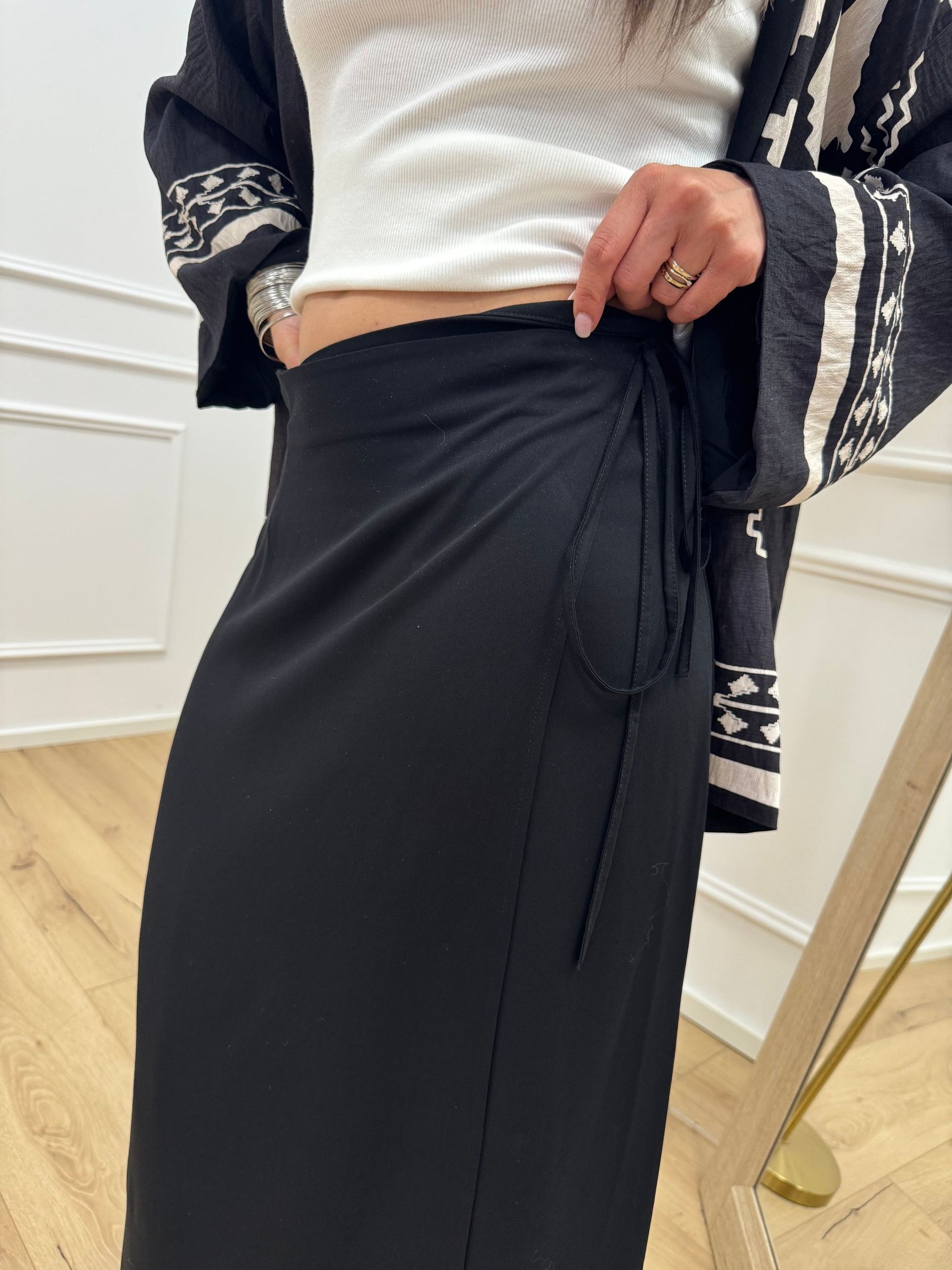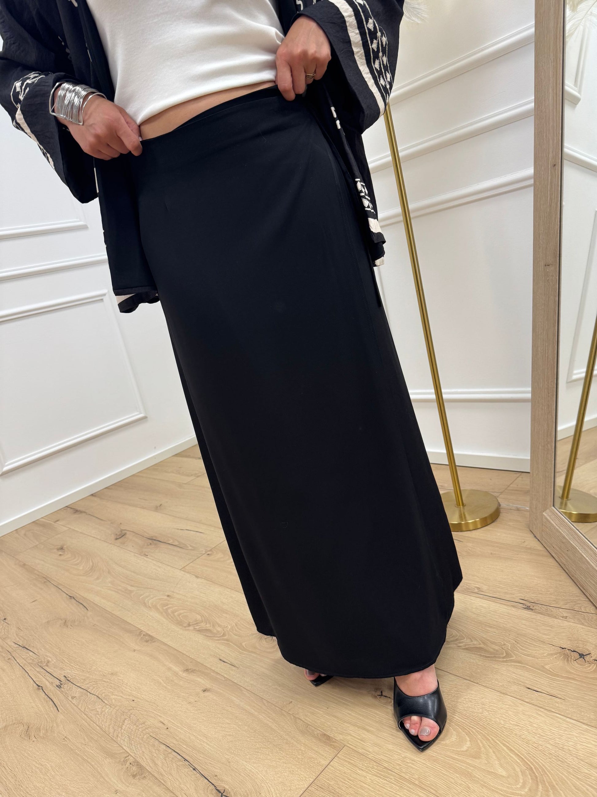 Gonna color nero in viscosa HaveOne. Modello basic lungo fit dritto a vita alta con chiusura doppia a portafoglio.