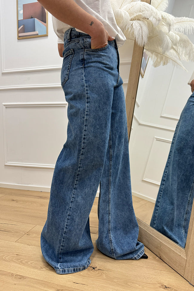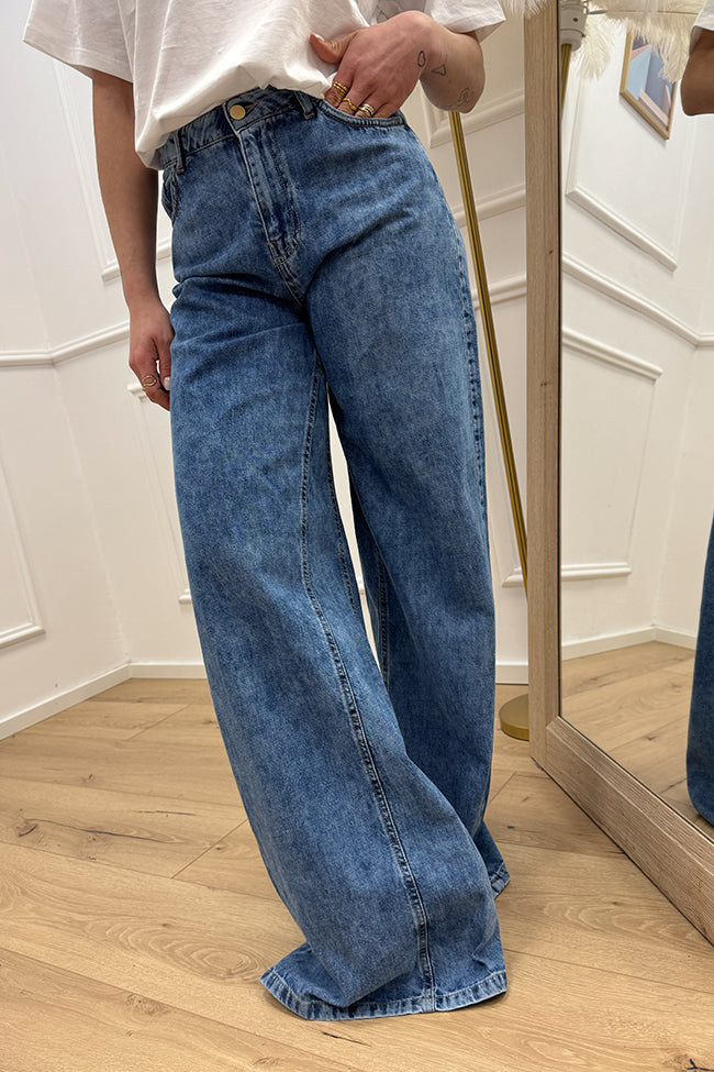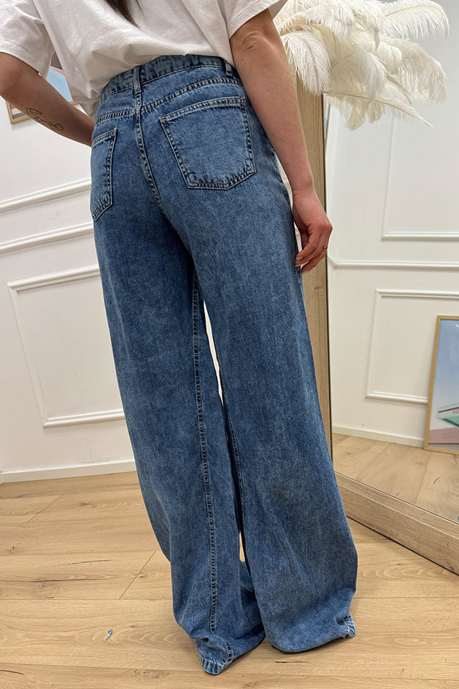 Jeans blu denim slavato wide leg fit - Silence Limited