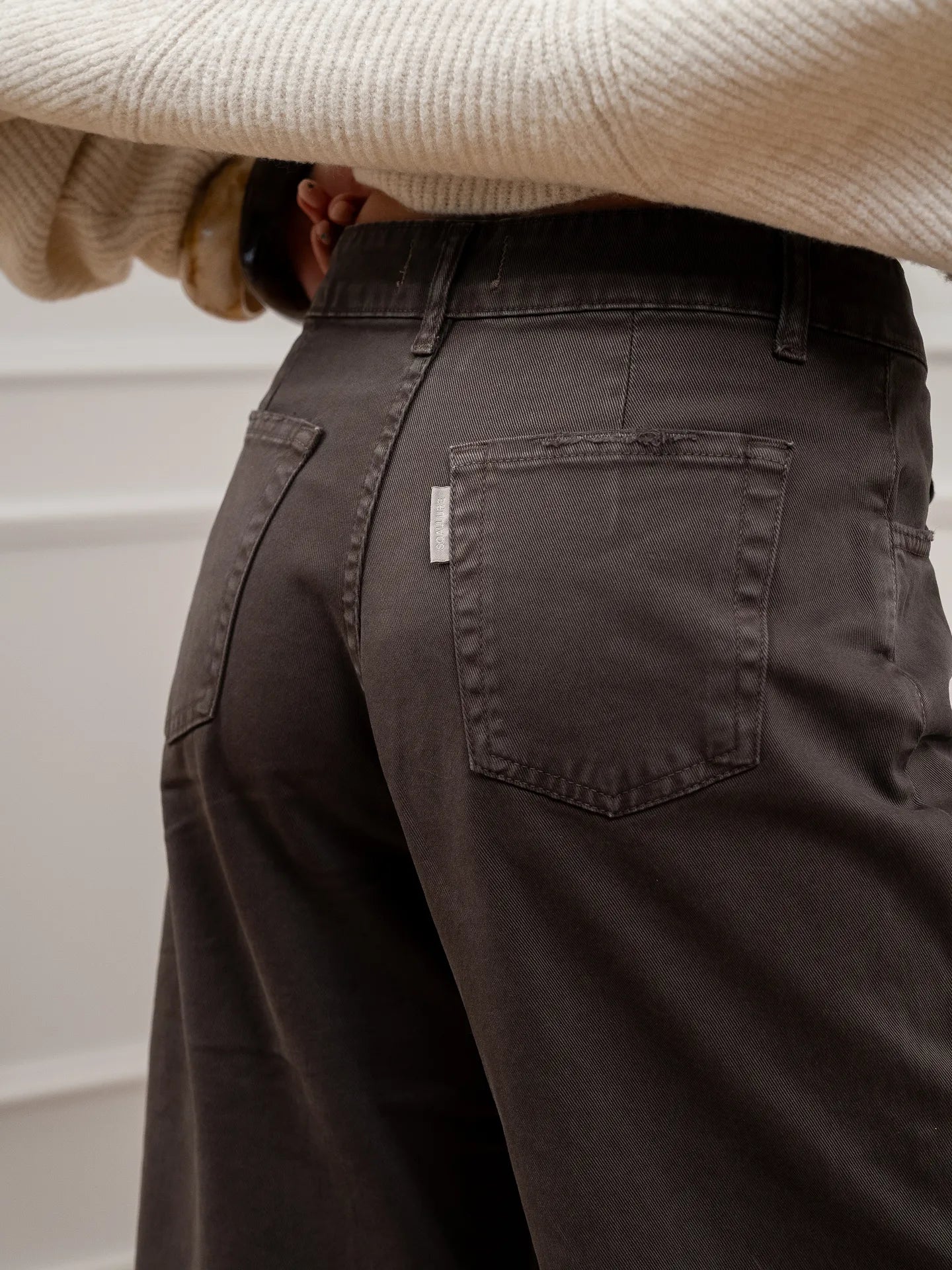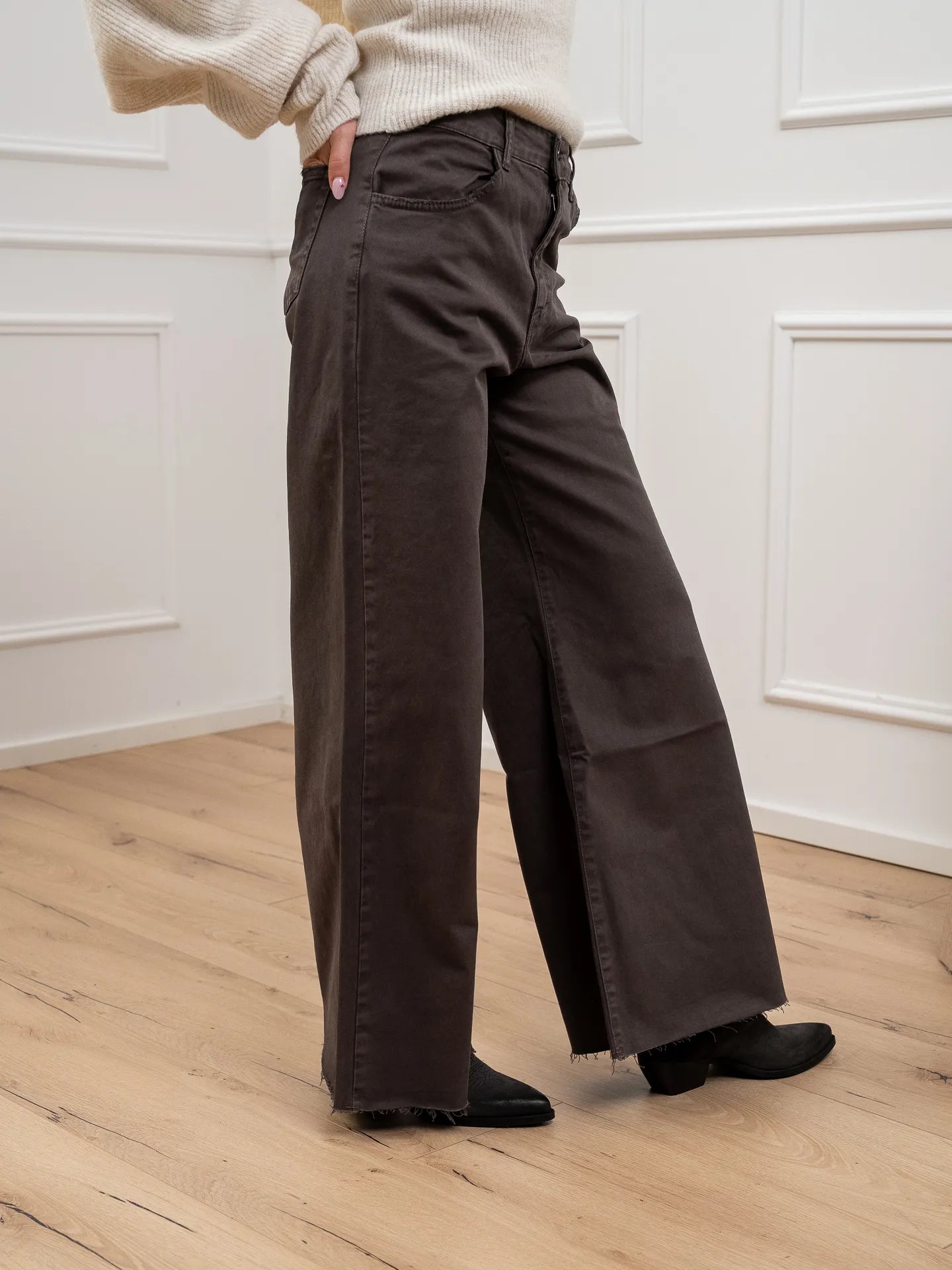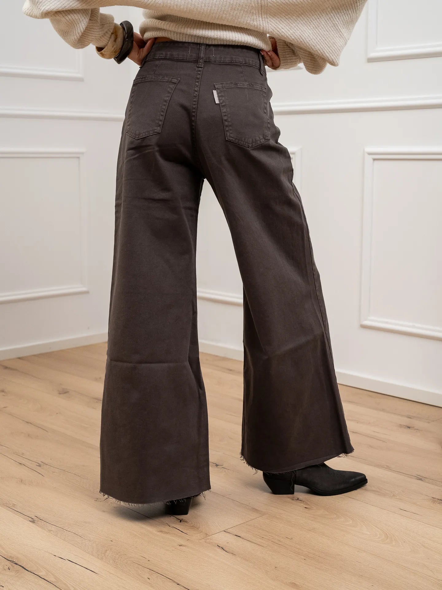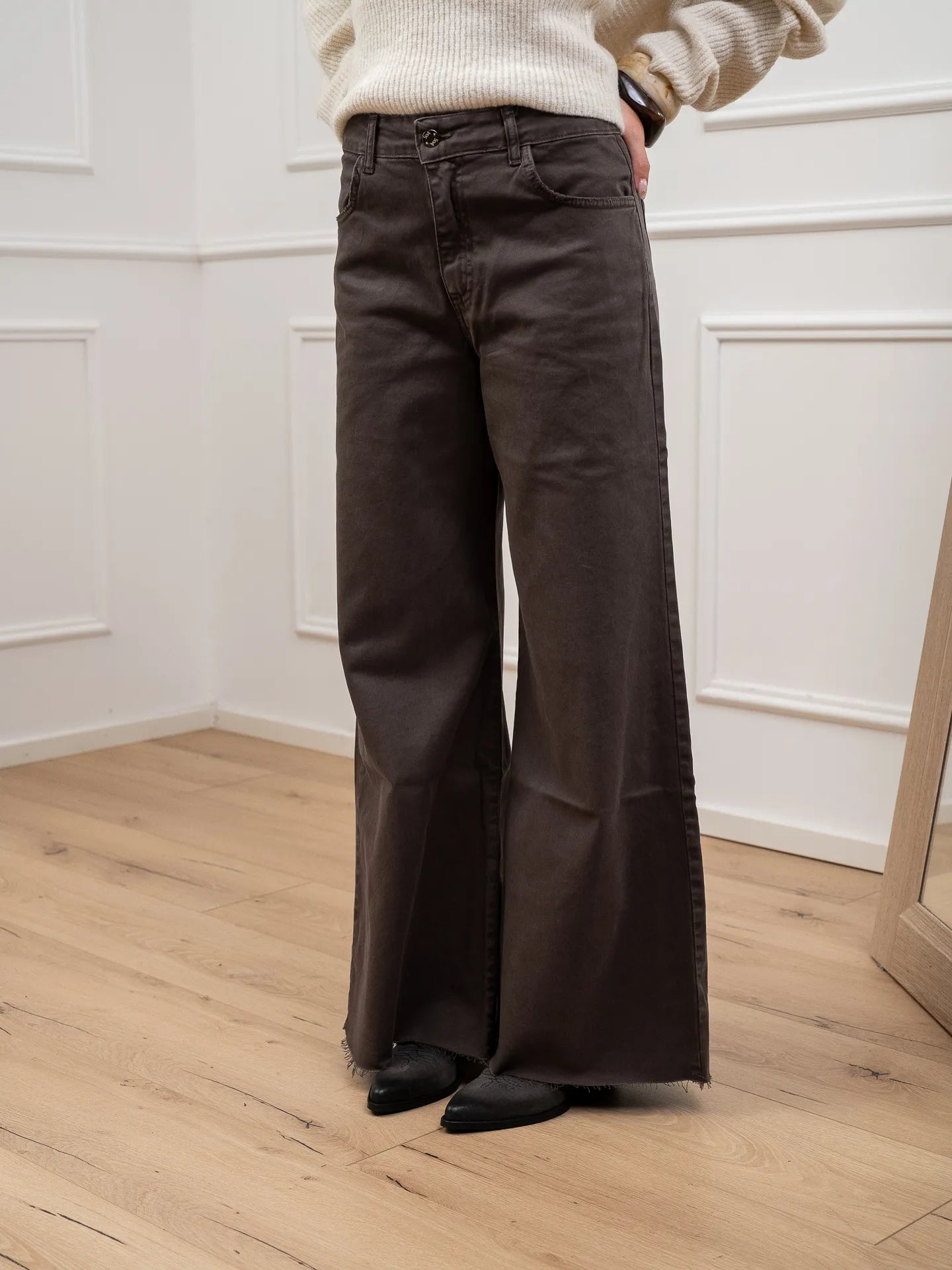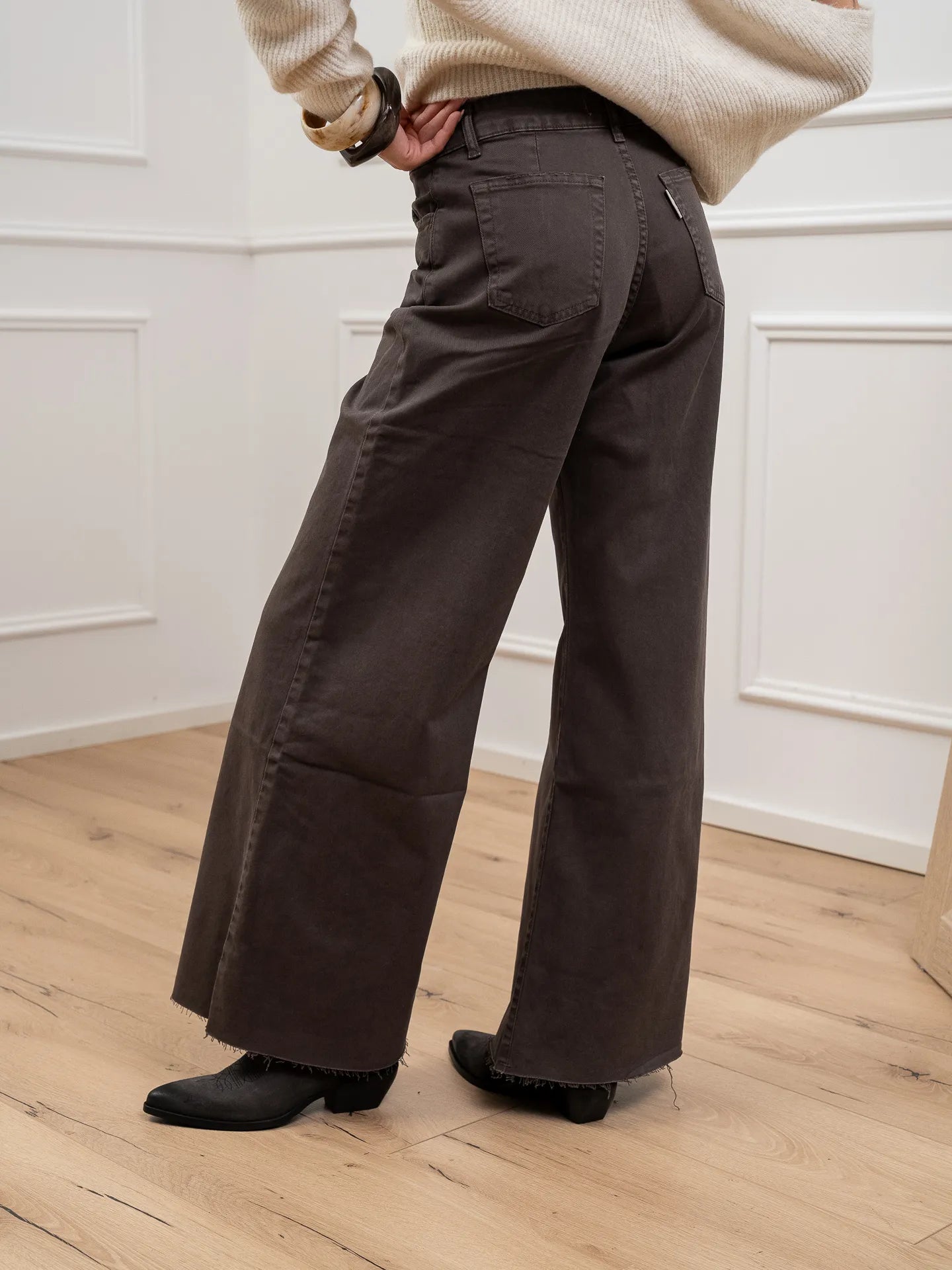 Jeans bull denim fondente So Allure. Modello wide leg fit a vita alta, taglio vivo sul fondo.