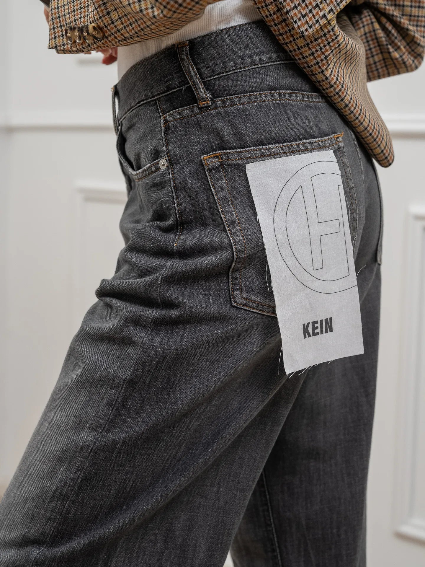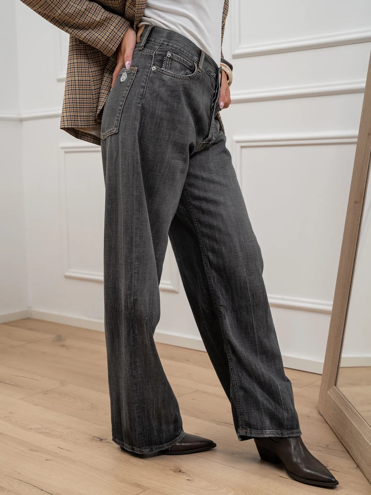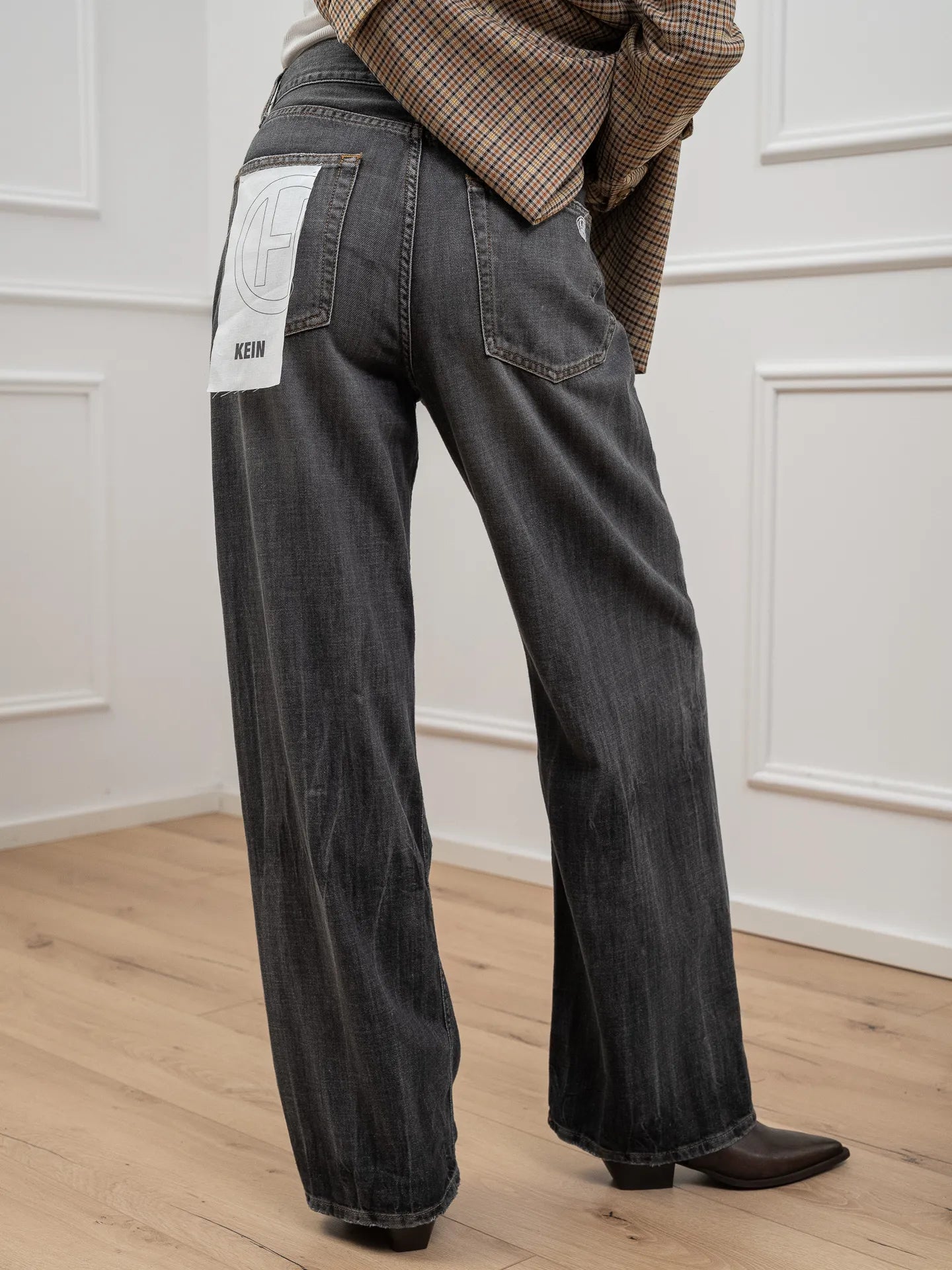 Jeans Kein denim grigio scuro effetto slavato HaveOne. Modello wide leg fit a vita alta.
