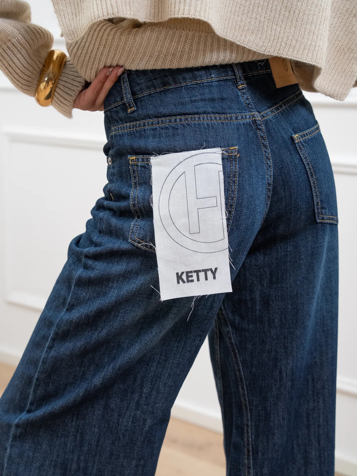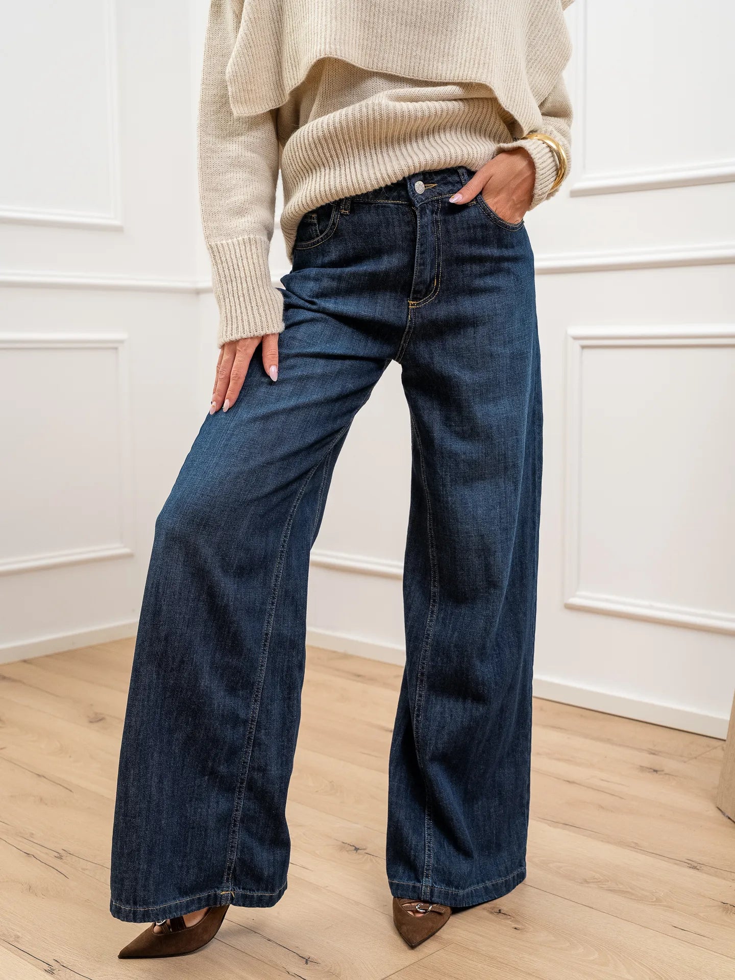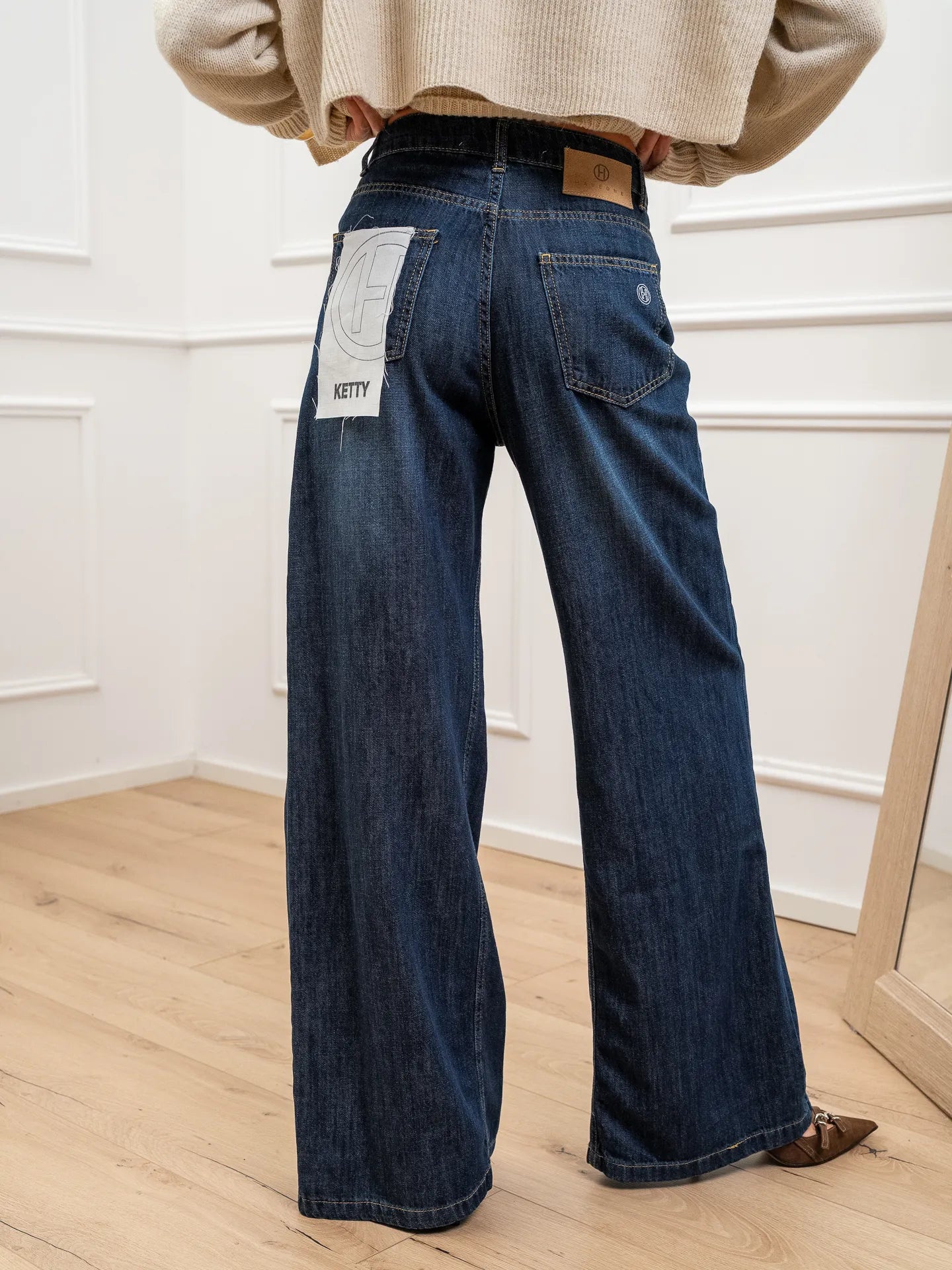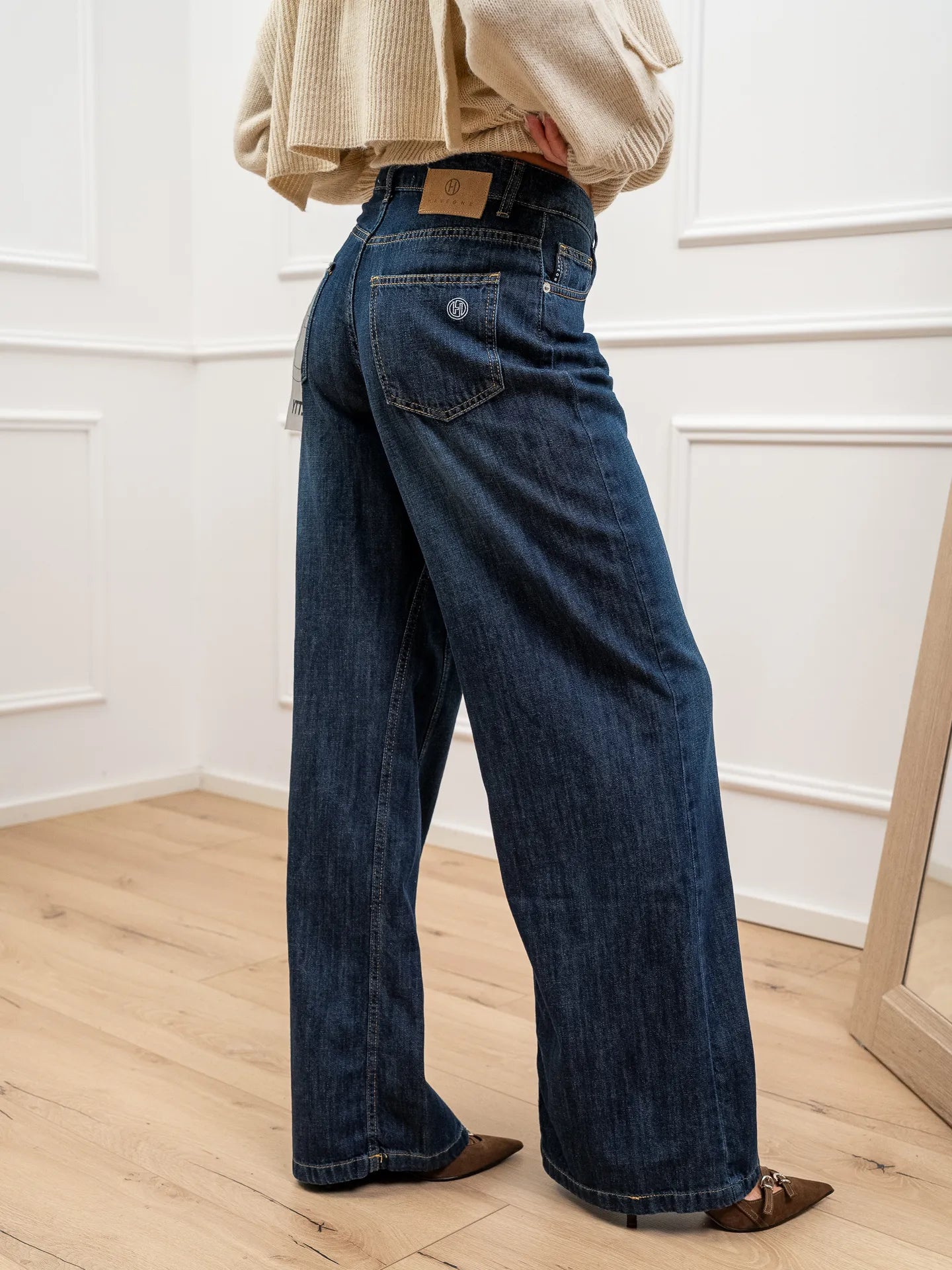 Jeans Ketty color blu scuro HaveOne. Modello wide leg fit a vita alta e gamba ampia.