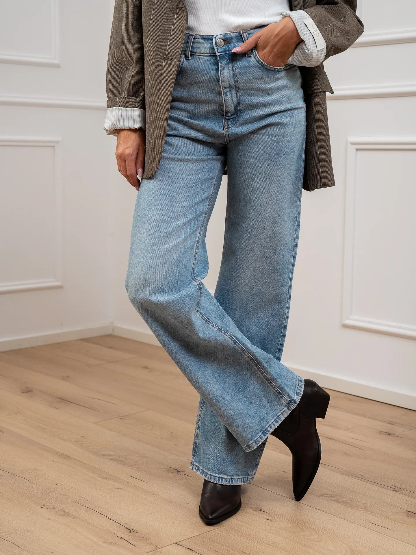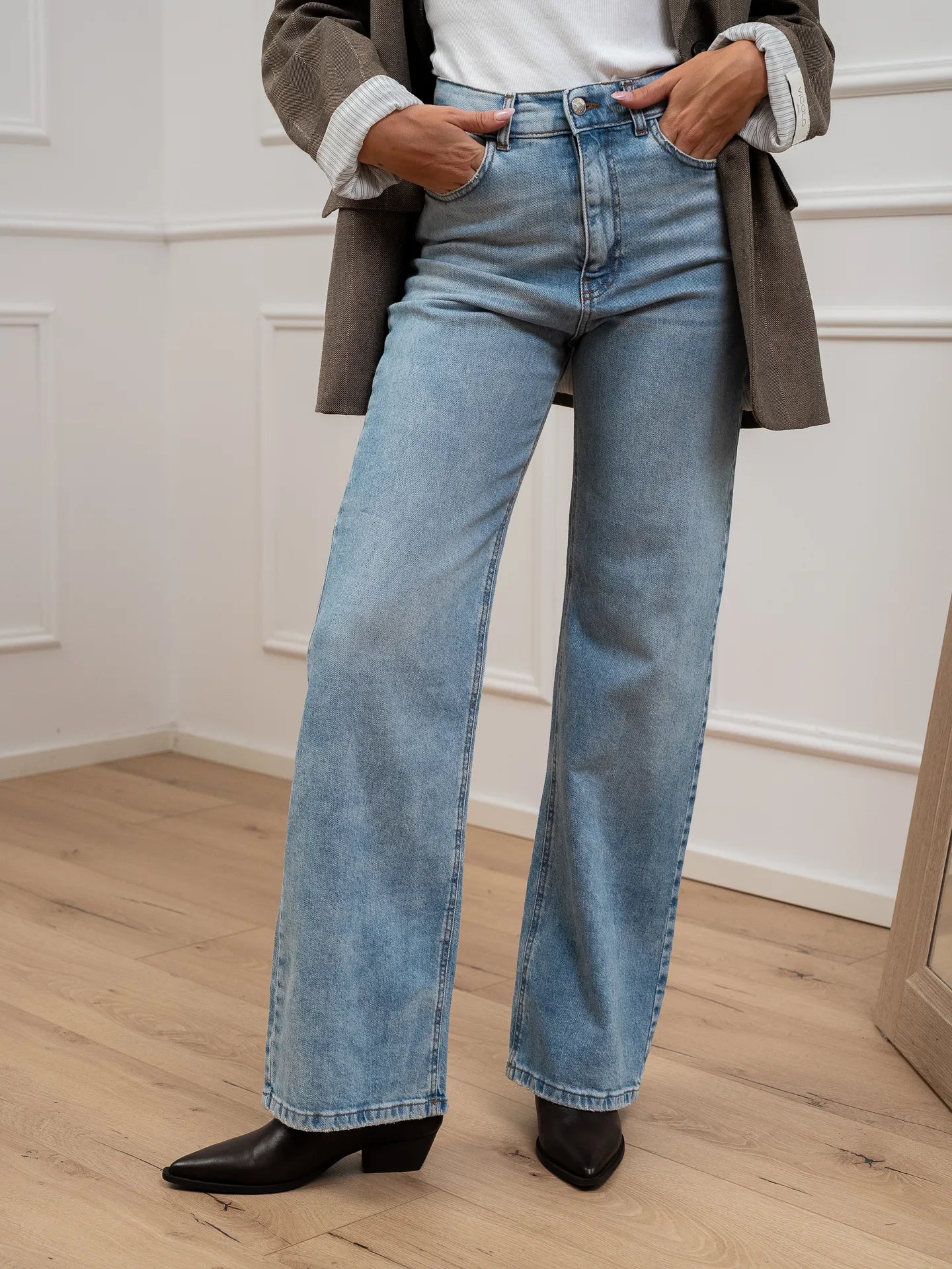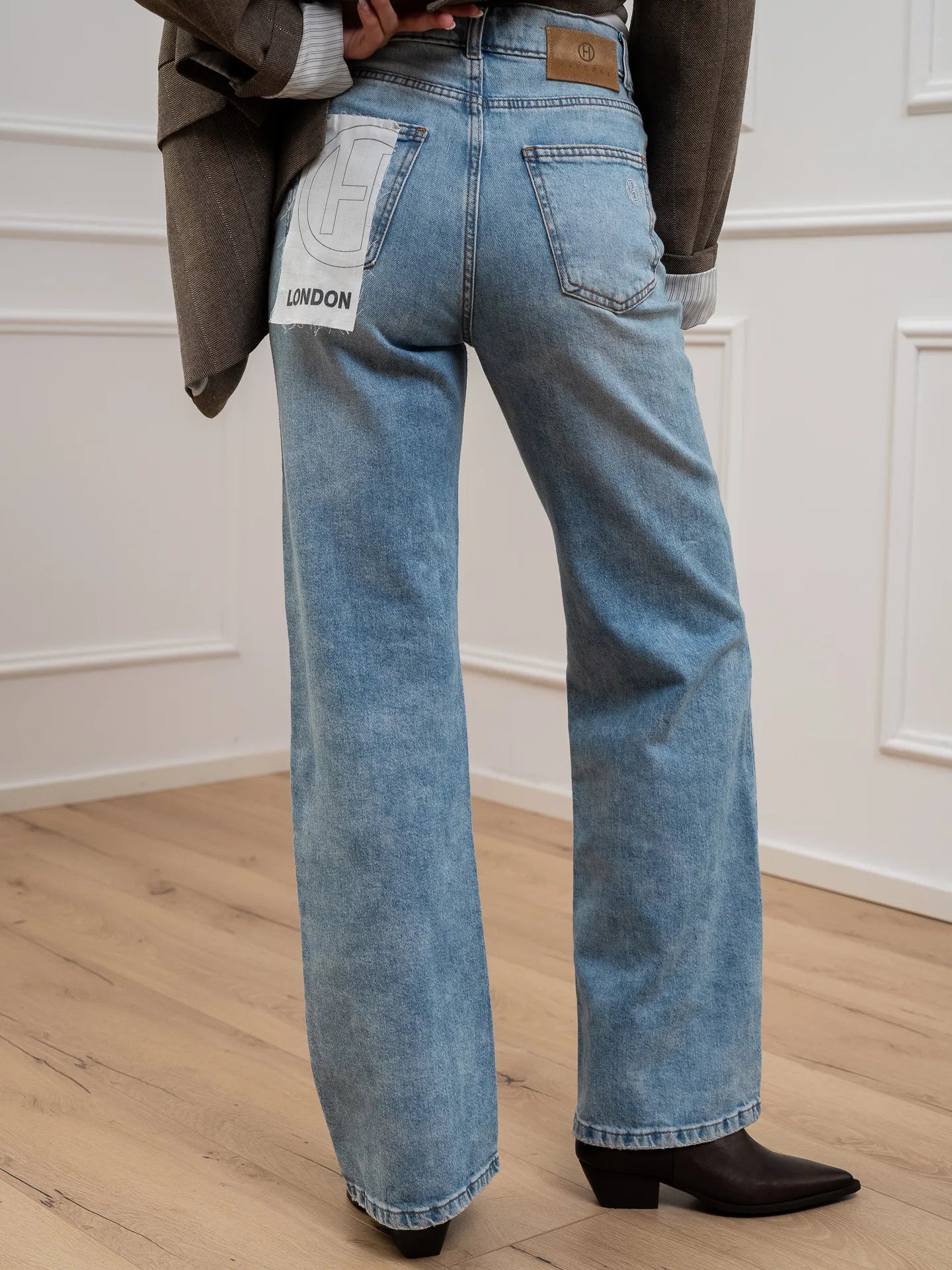 Jeans London denim lavaggio chiaro HaveOne. Modello straight fit a vita alta. Chiusura frontale zip e bottone.