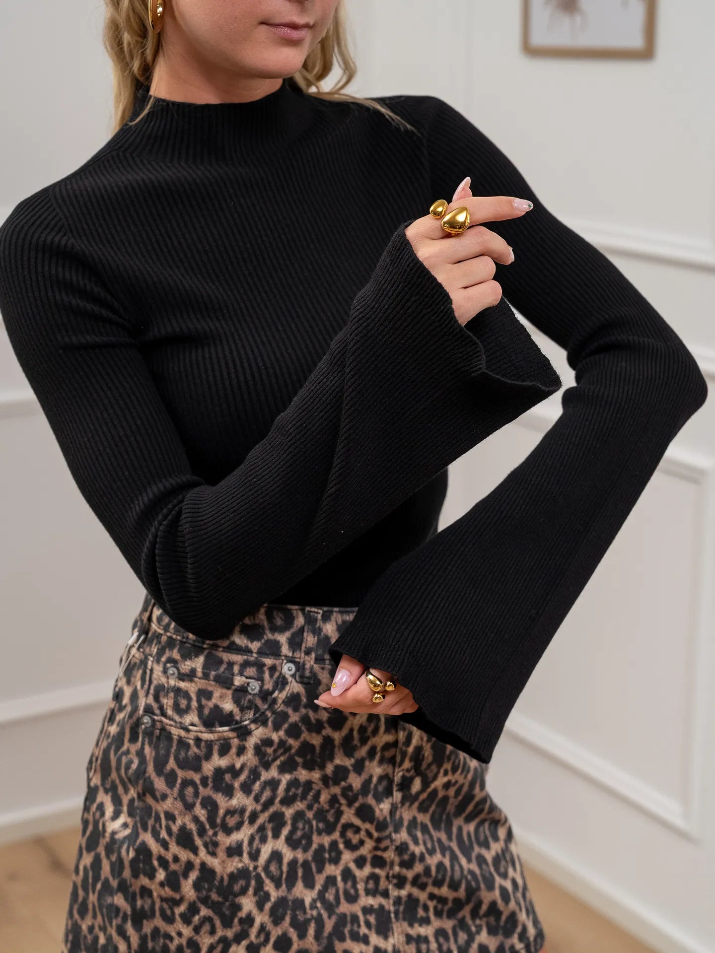 Lupetto a coste nero manica a campana - Kontatto
