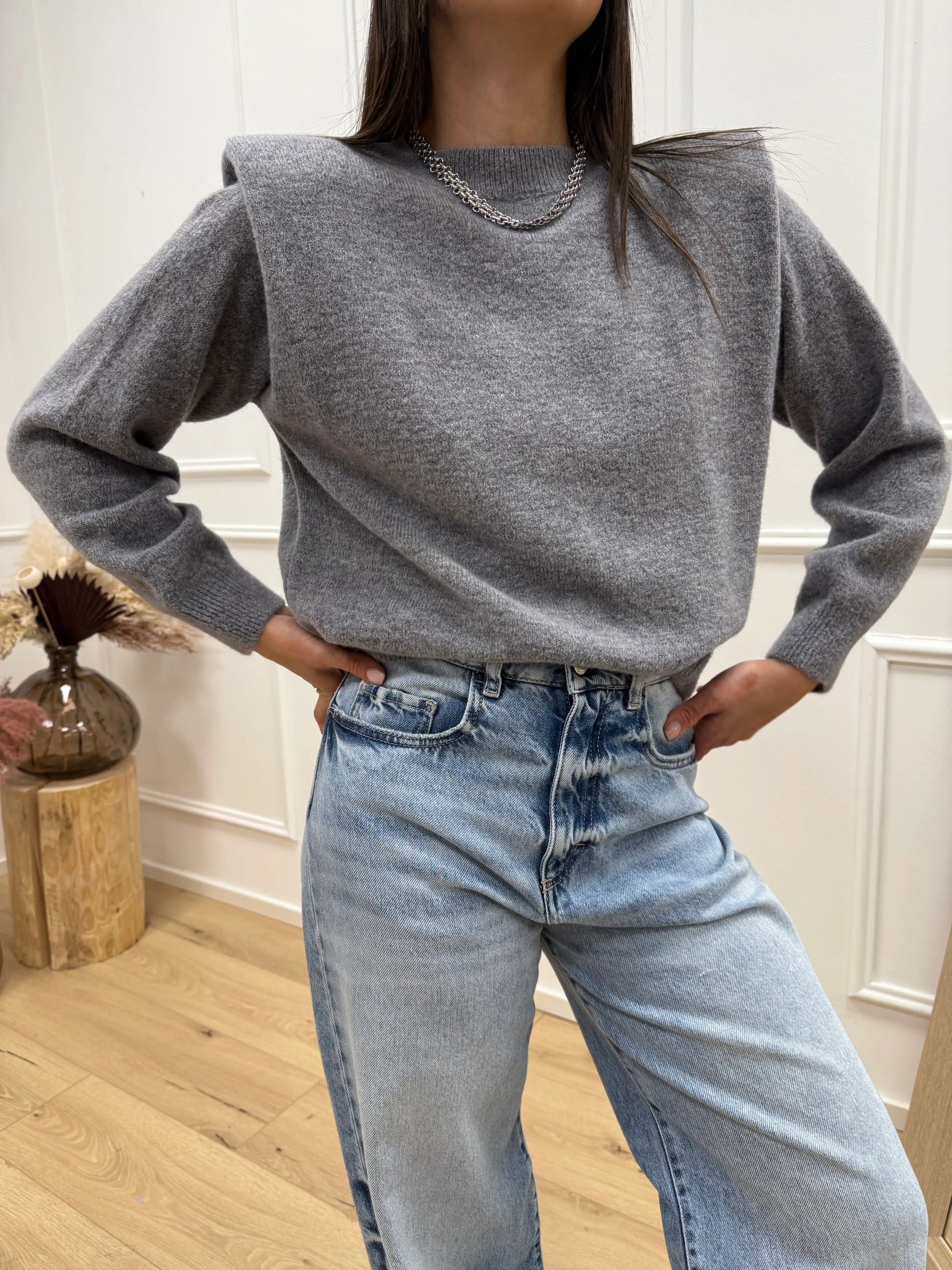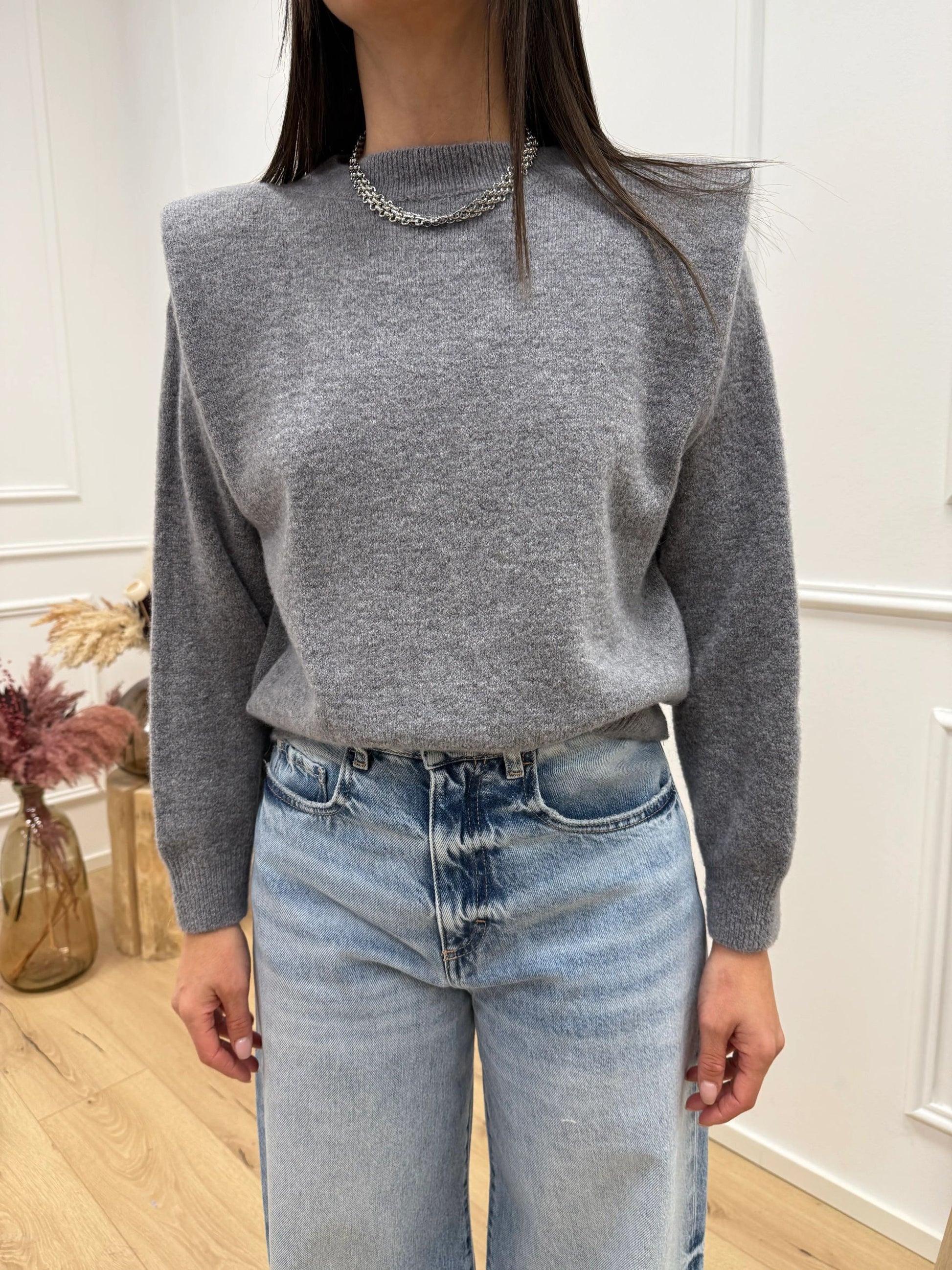 Maglia baby alpaca grigia con spalle imbottite - Dixie