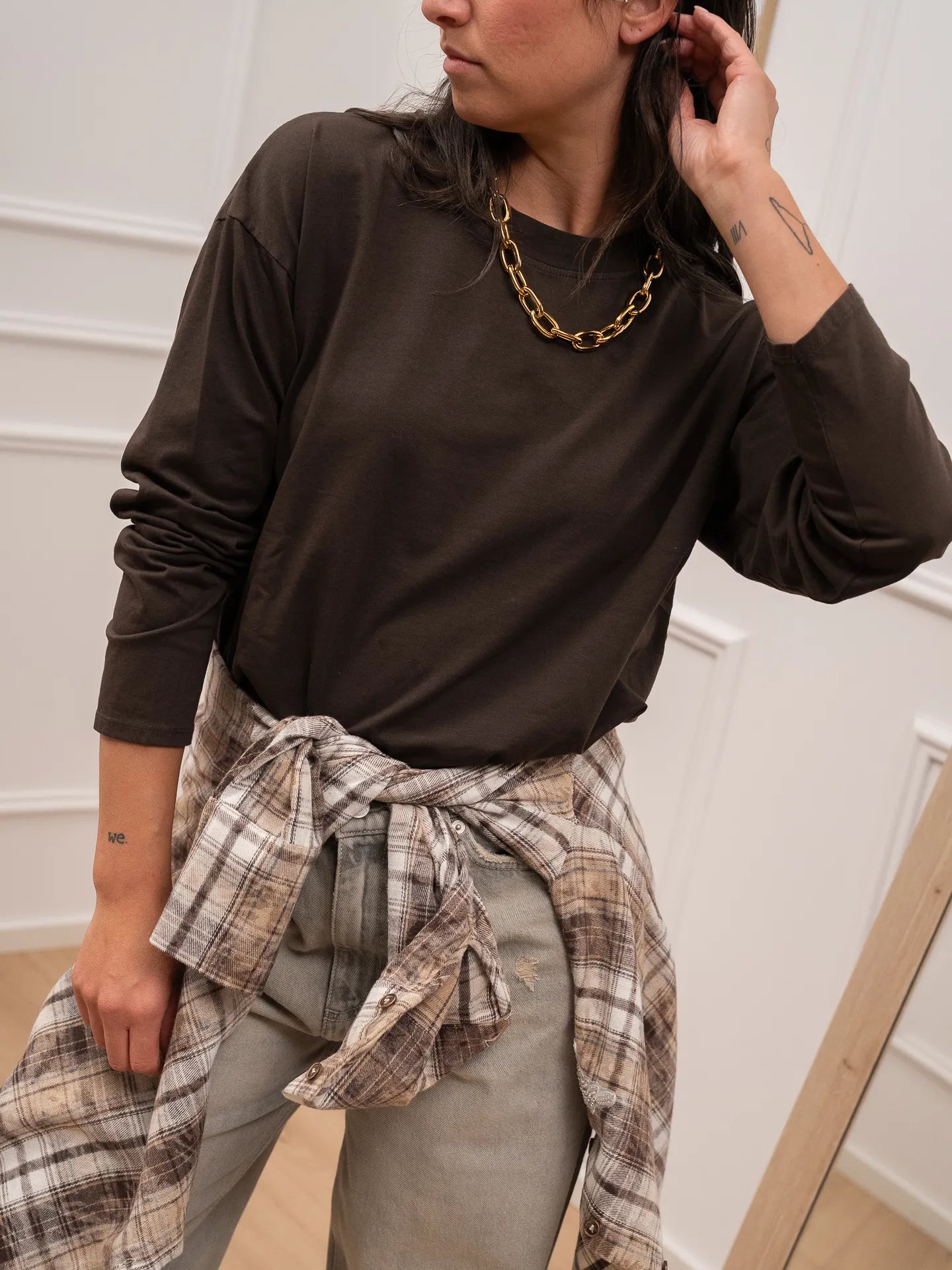 Maglia color moro HaveOne. Modello basic girocollo a manica lunga. Fit regolare.