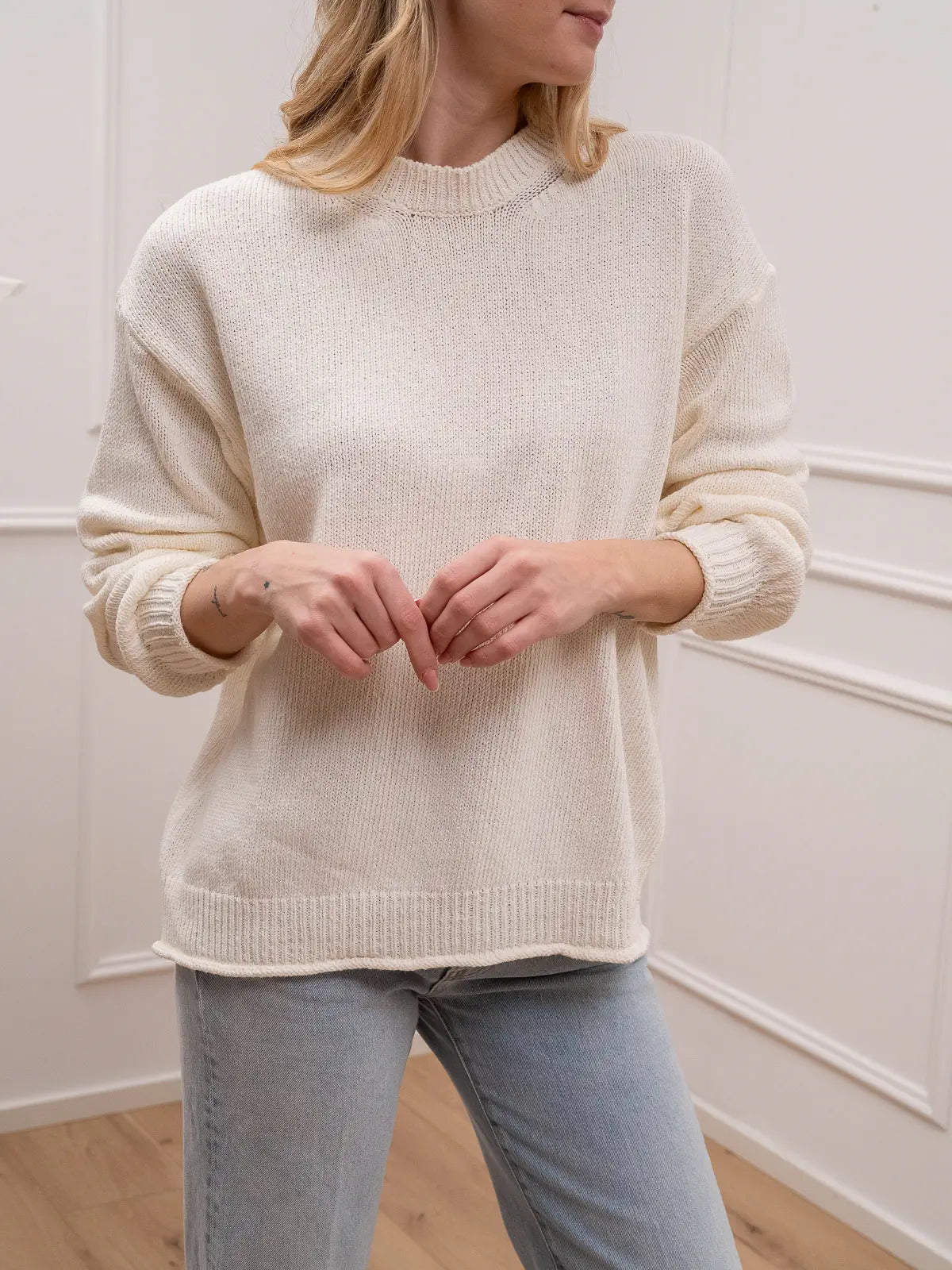 Maglia burro in cotone riciclato con ricciolo sul fondo - Vicolo