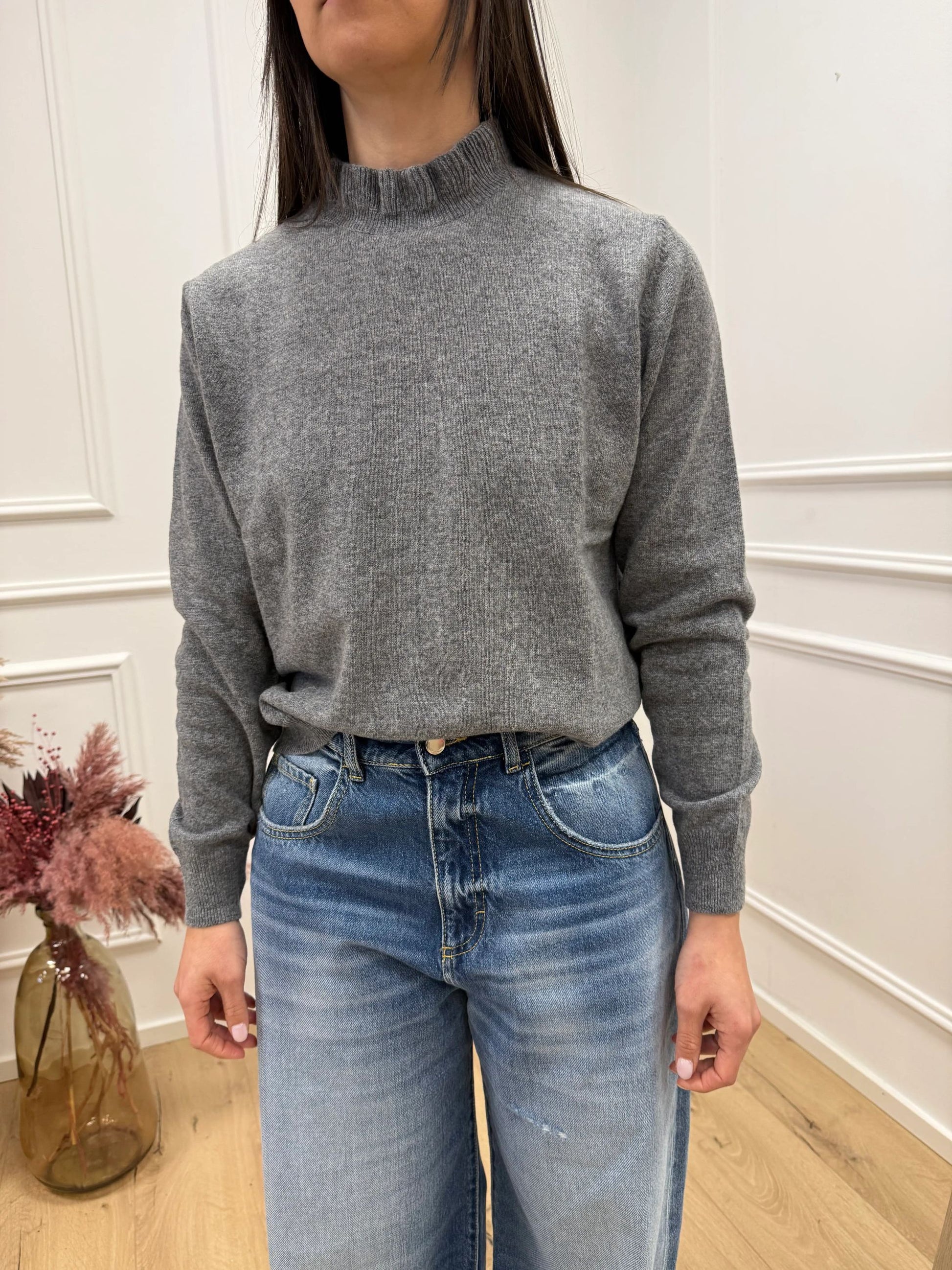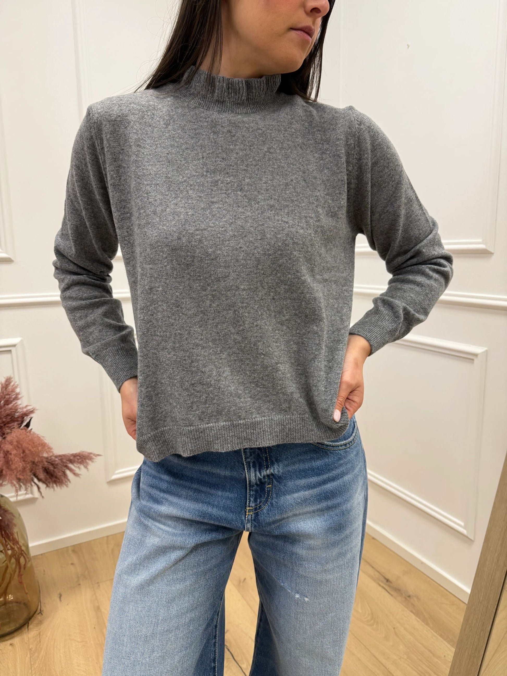 Maglia collo rouches grigia 80% lana - HaveOne