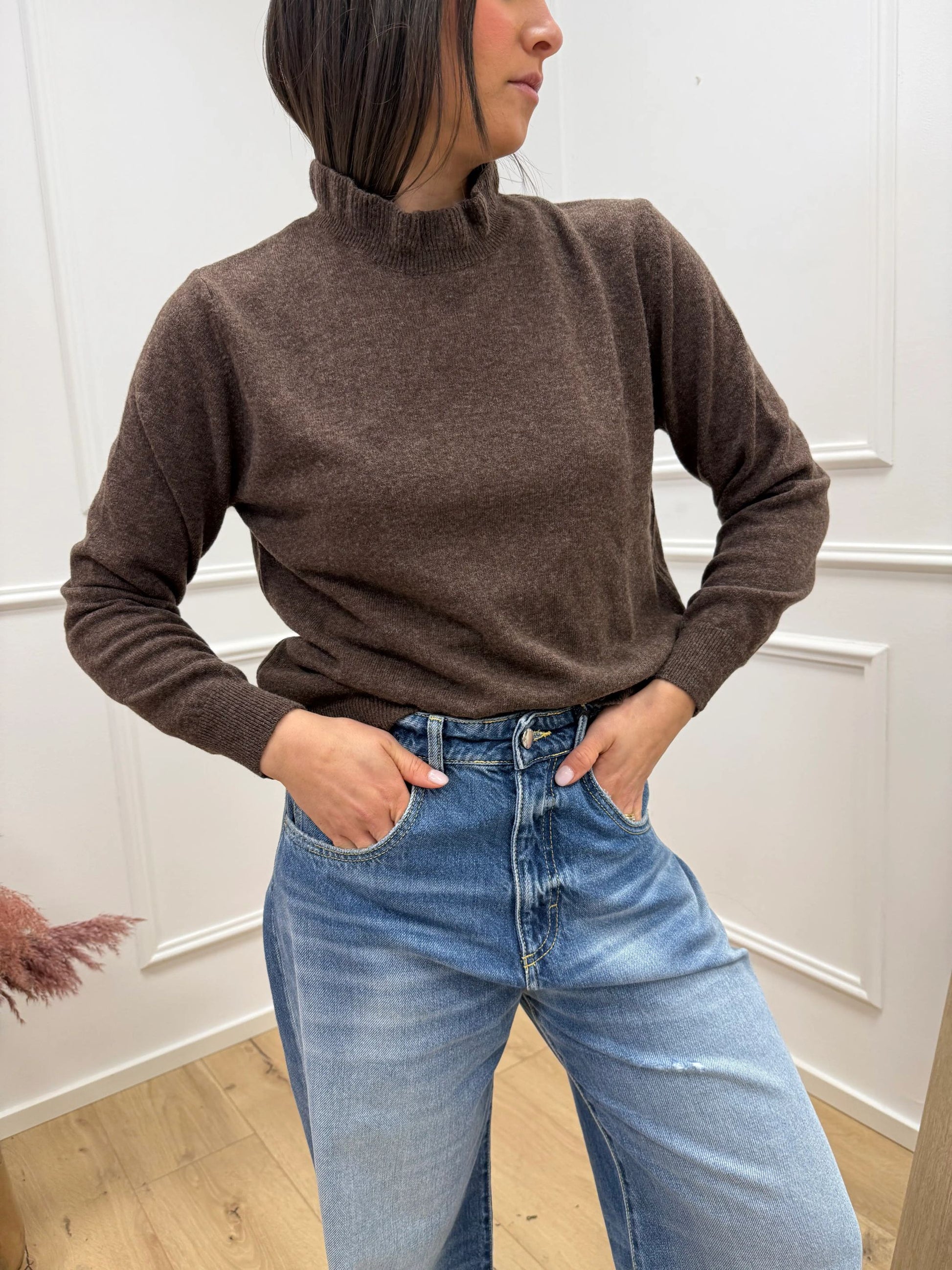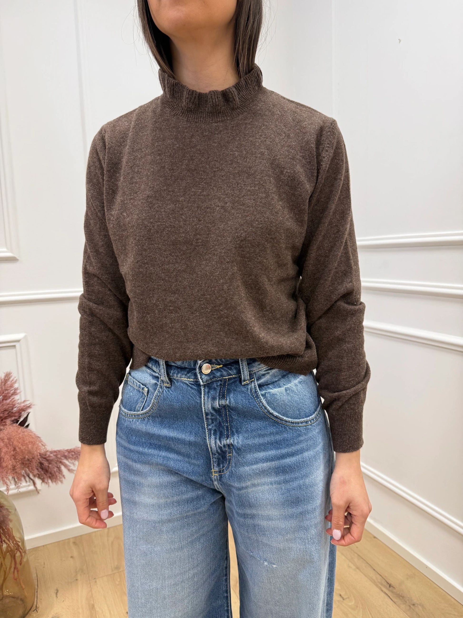 Maglia color moro HaveOne. Modello fit regolare con collo rouches.