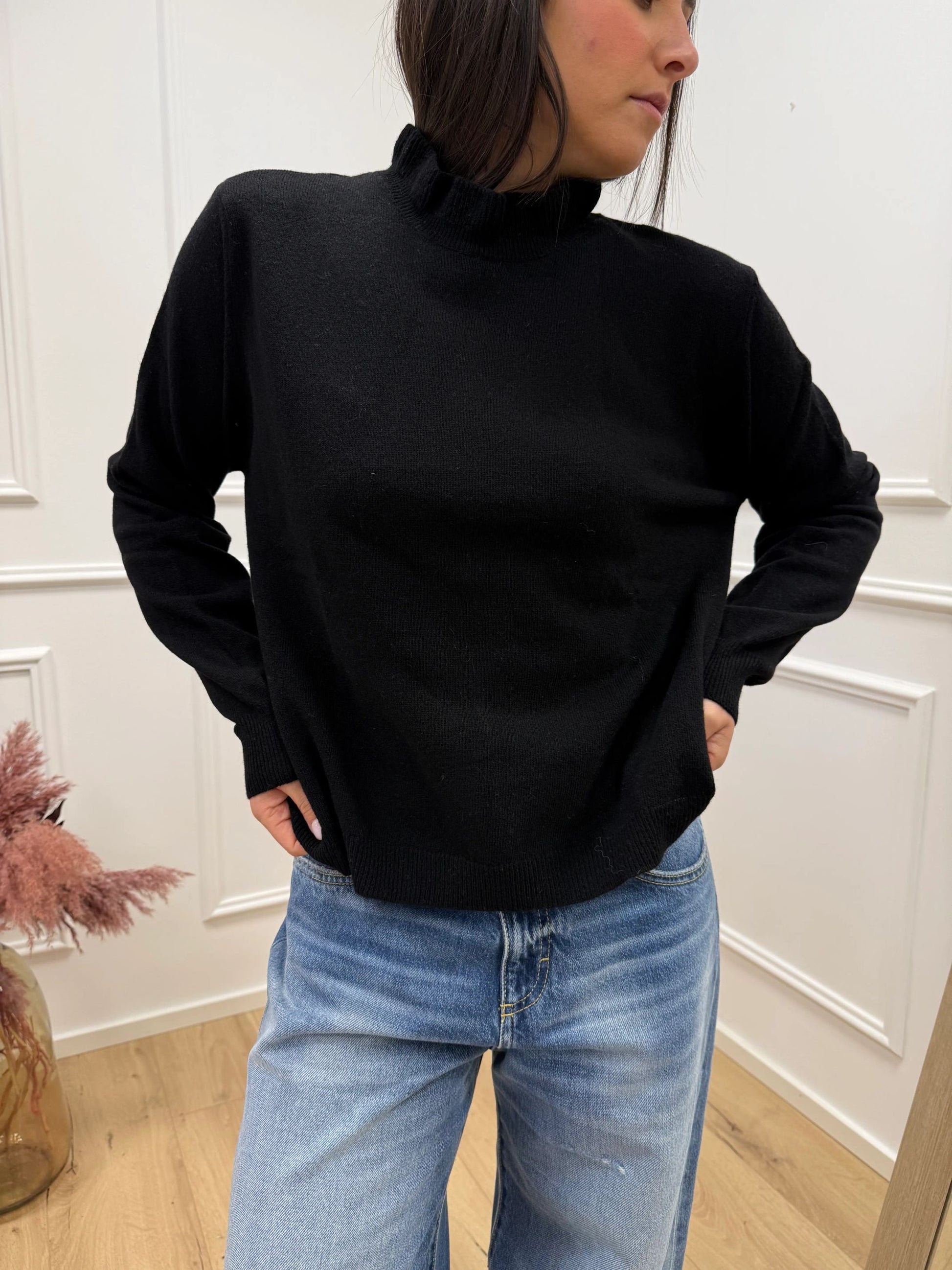 Maglia collo rouches nera 80% lana - HaveOne