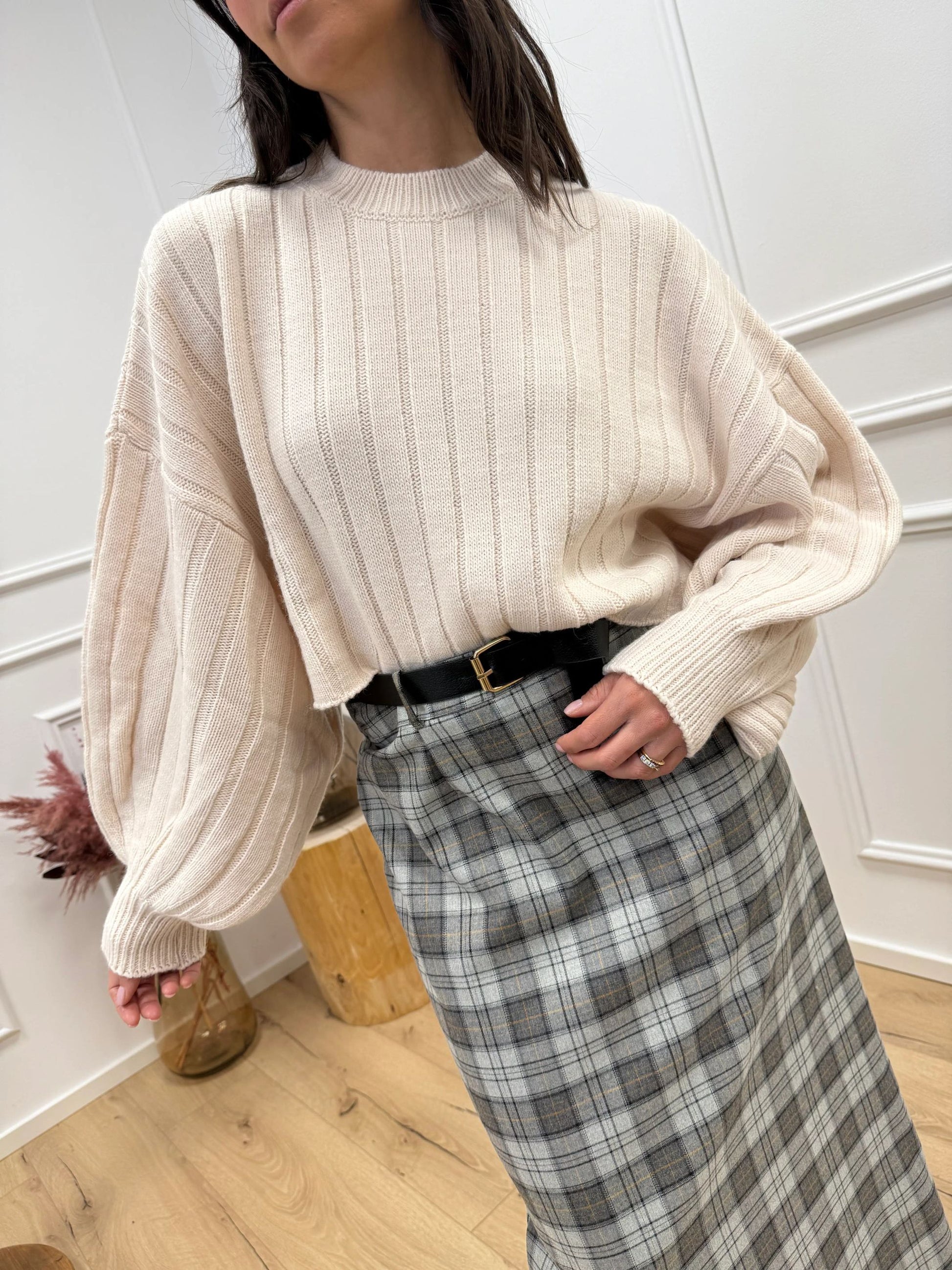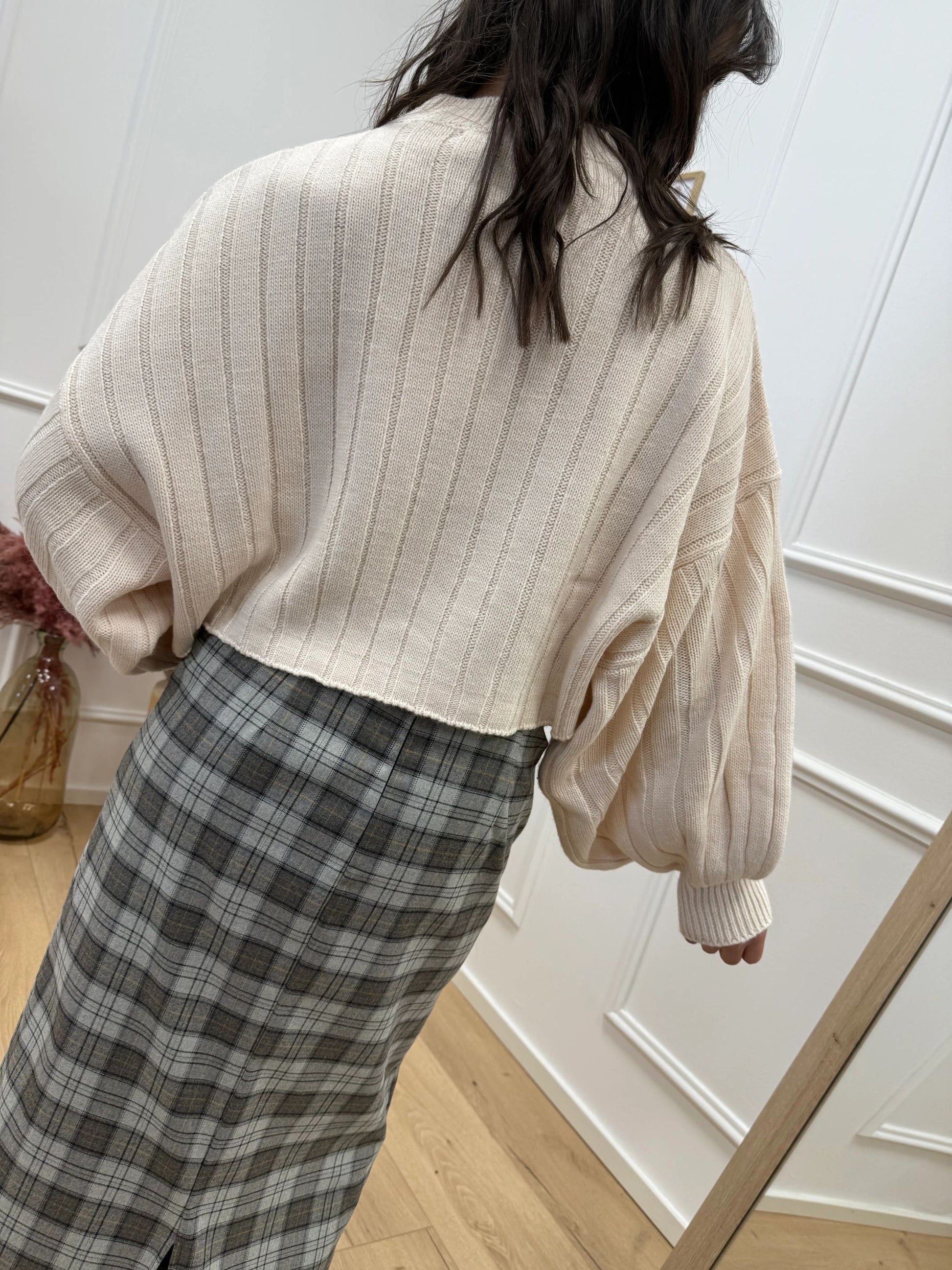 Maglia crop panna con manica balloon - HaveOne